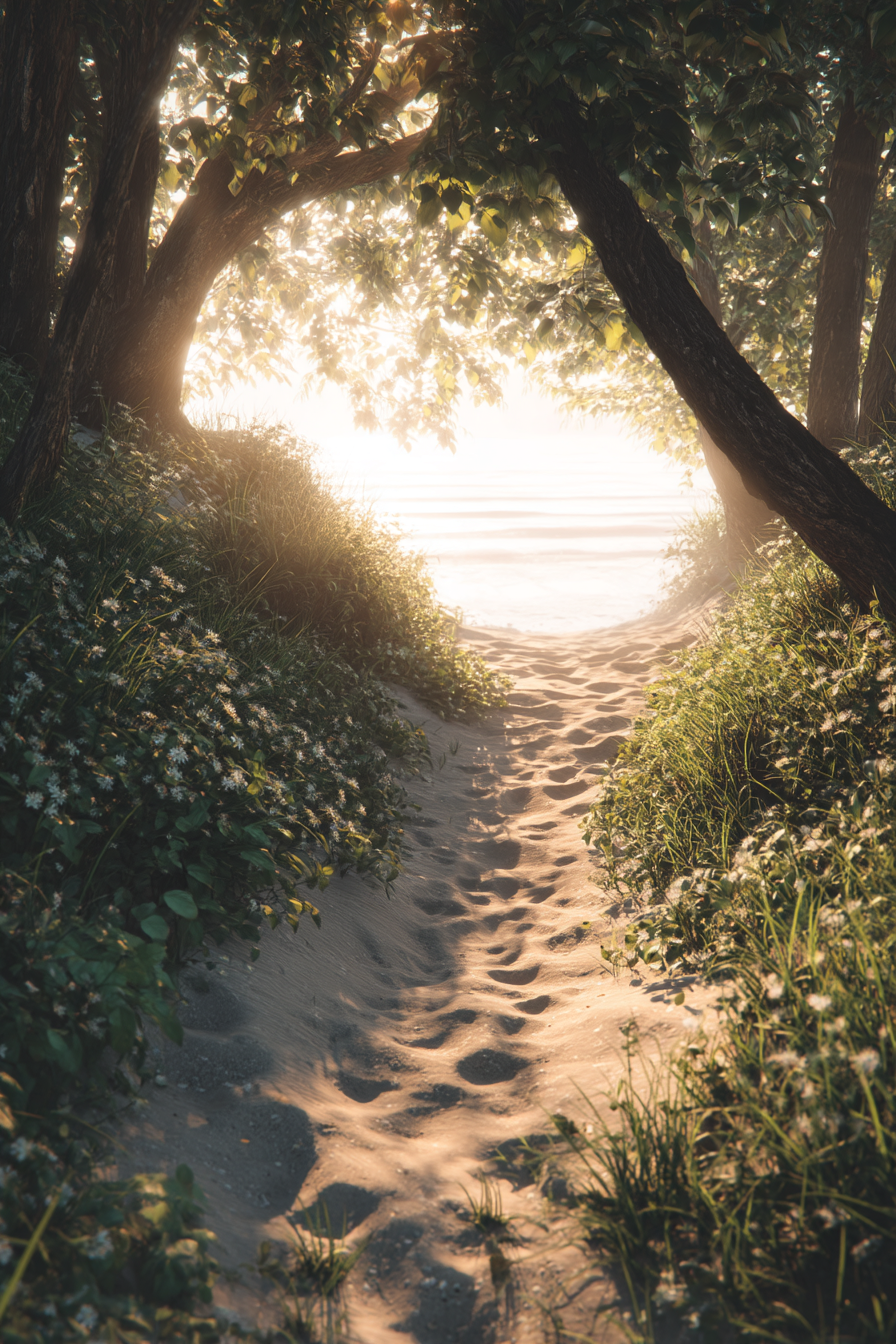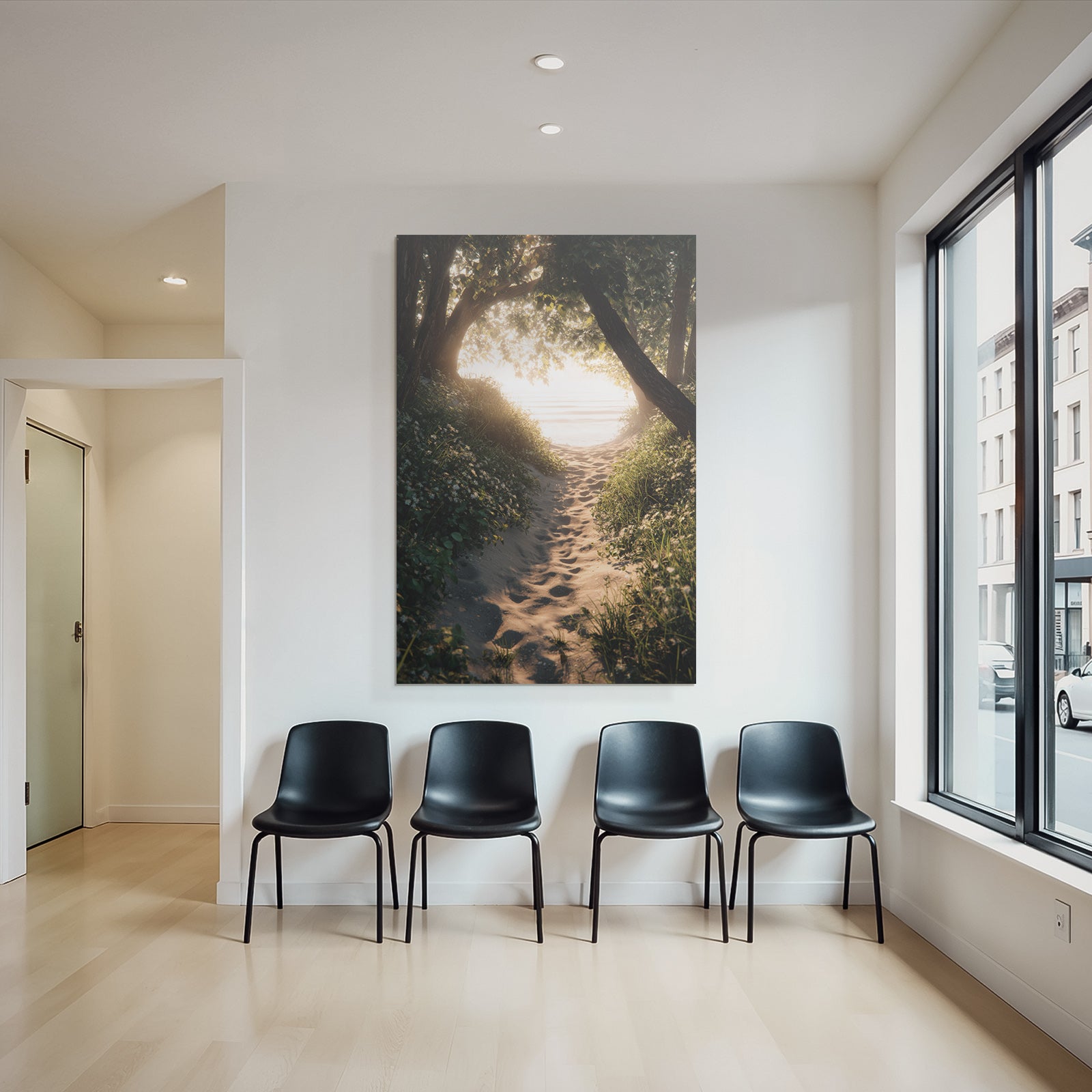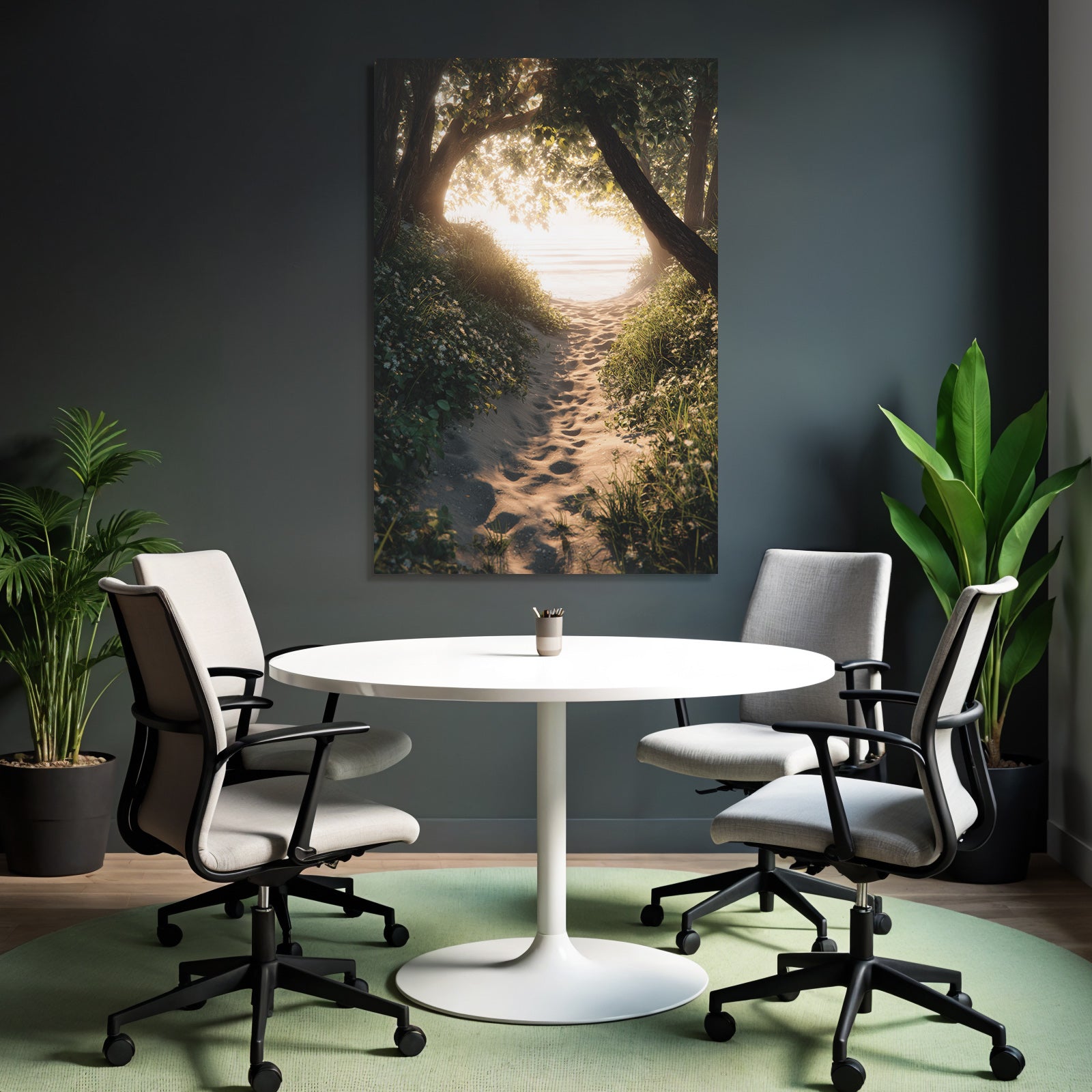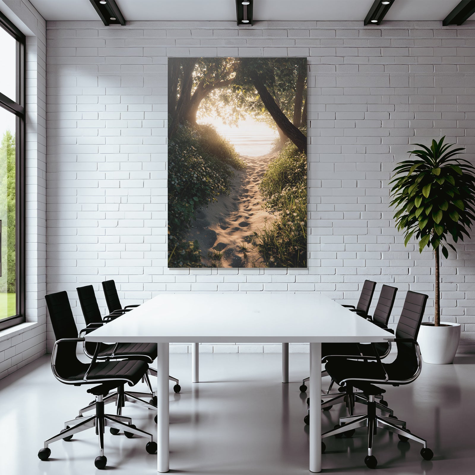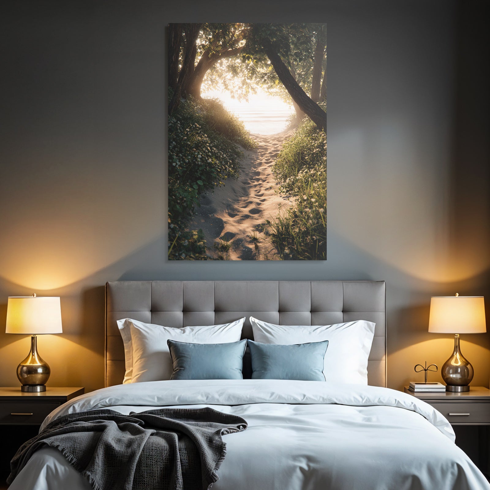 Dünen und Heide in seiner schönsten Form. Das Motiv „Ruhiger Naturweg Zum Wasser Mit Fussabdrücken“ besticht durch seine klare Komposition und wird im FameFrame™ zu einem Kunstobjekt von bleibendem Wert.