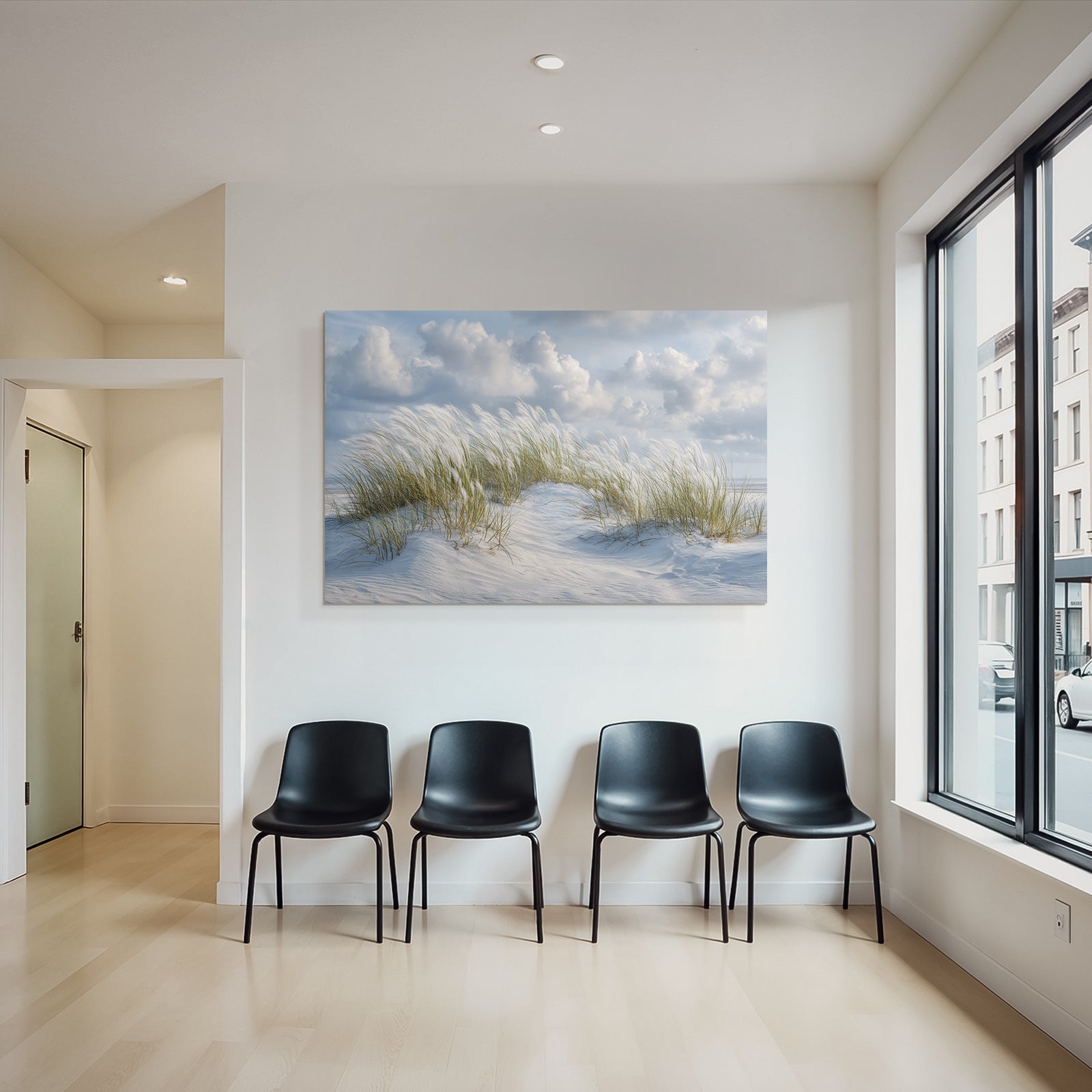 „Sandstrand Mit Gras Und Wolken“ – ein Motiv, das begeistert. Inspiriert vom Stil Dünen und Heide, setzt dieses Werk im edlen FameFrame™ einen unverwechselbaren Akzent in Ihren Räumen.