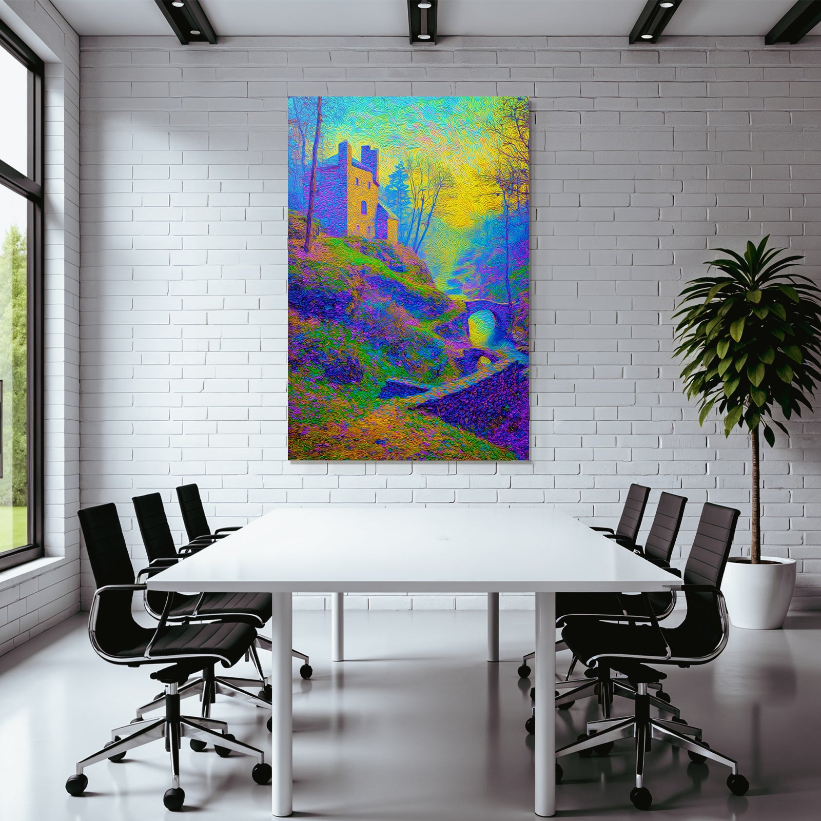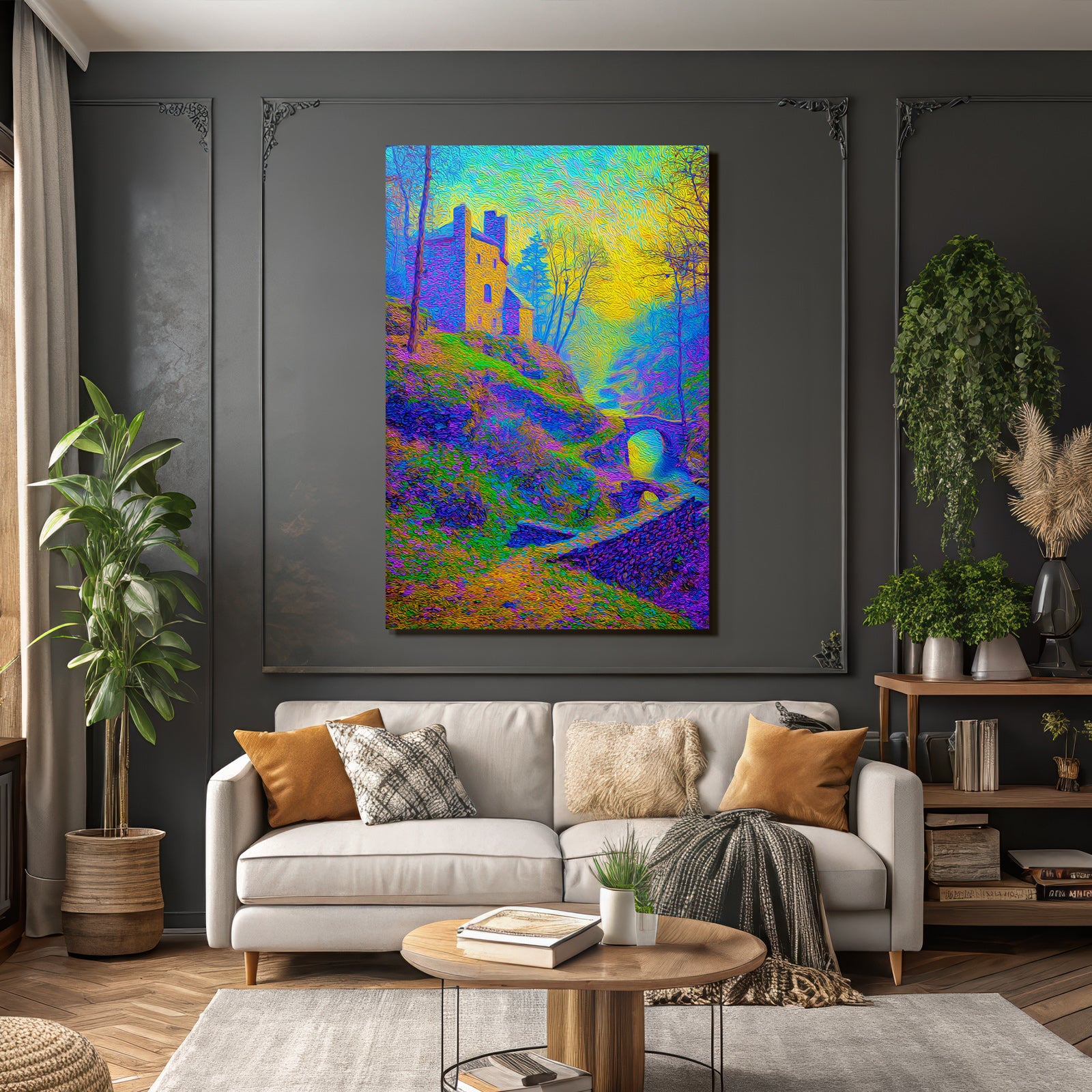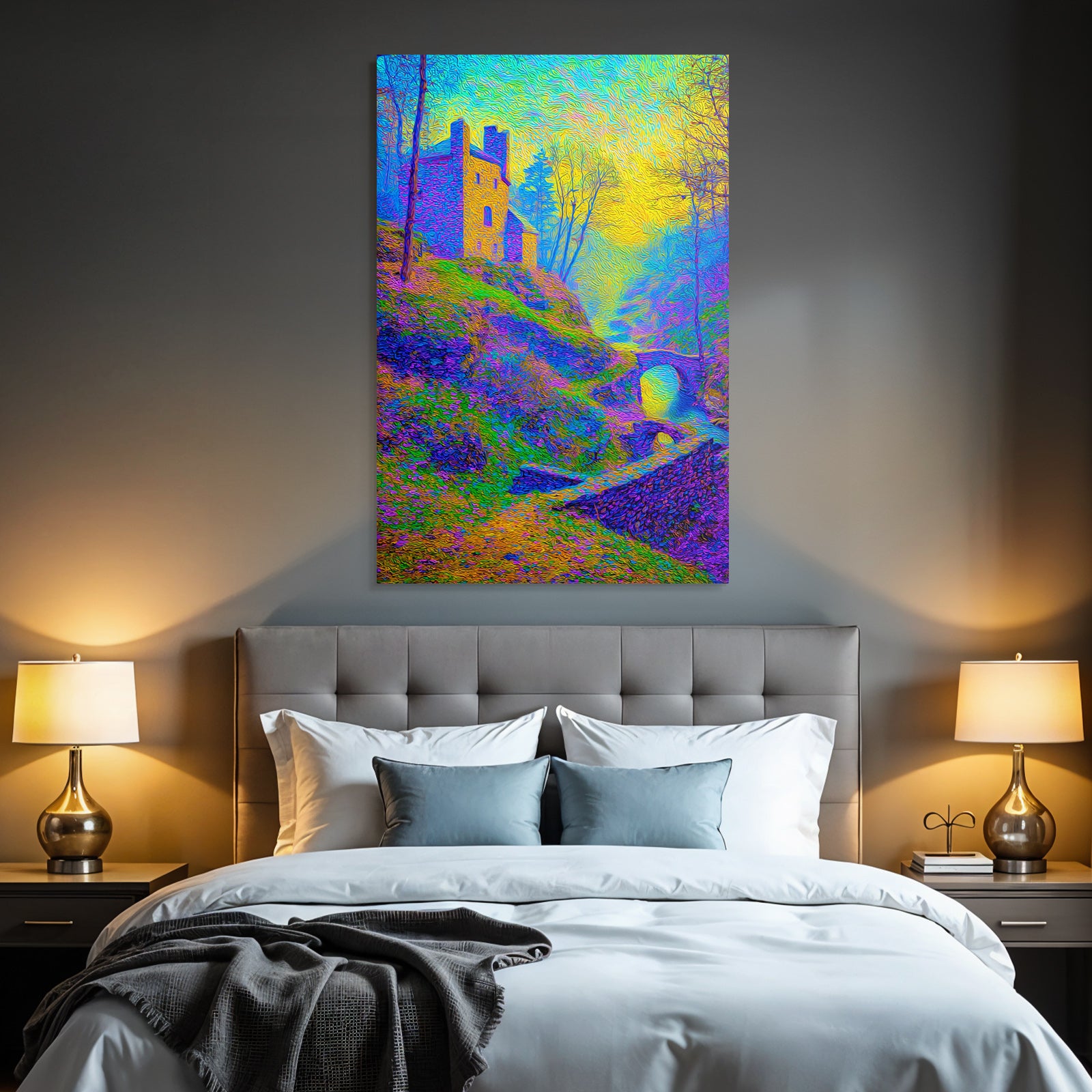 Mit dem Werk „Schlosslandschaft Mit Brücke Und Bach“ im Stil Expressionismus gestaltest Du Dein Wartezimmer oder Deine Hotel-Lobby eindrucksvoll und modern – auf Stoff im FameFrame™.