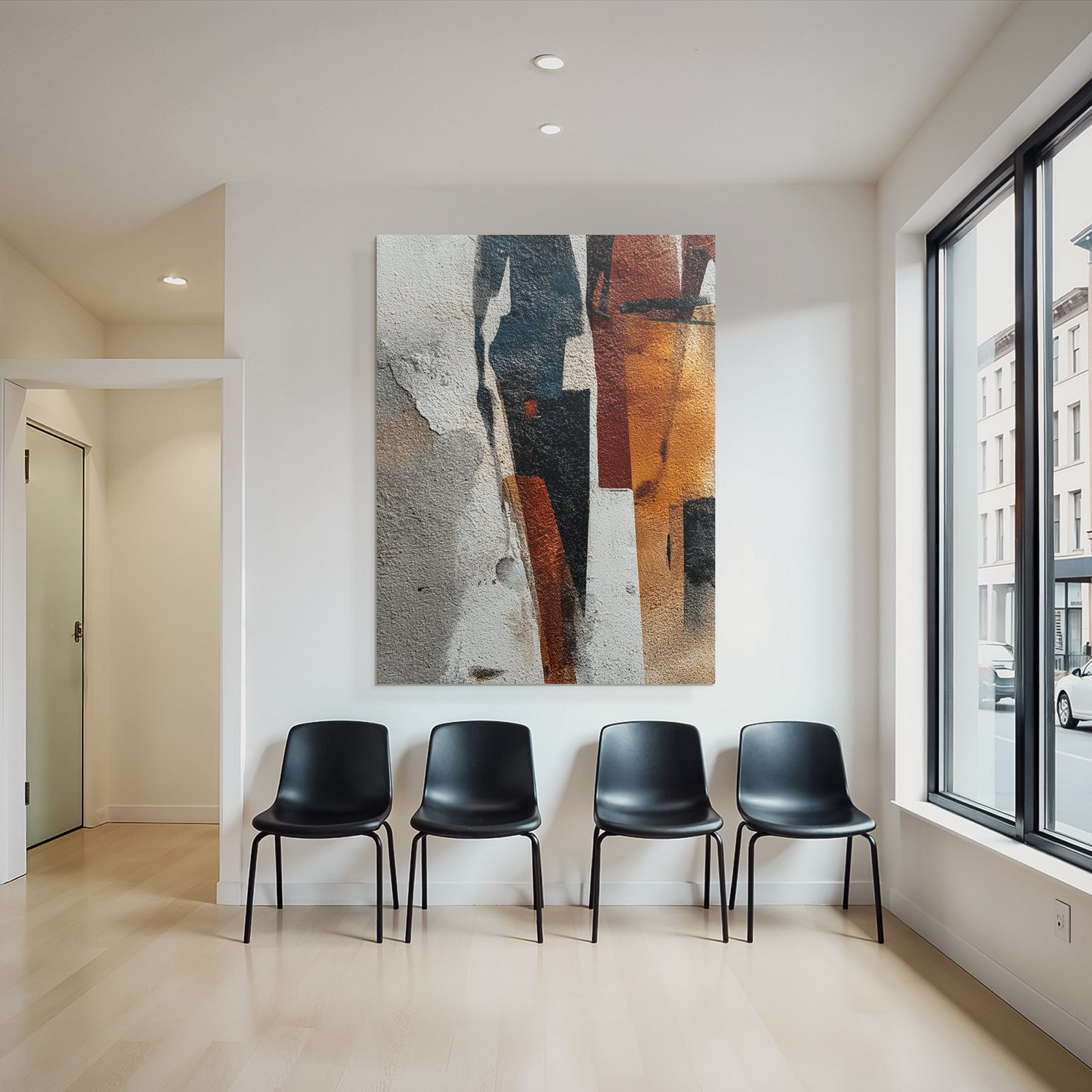Set stylish accents with industrial- inspired art. The work "Figures Abstract Orange Black" unfolds its full effect in the elegant FameFrame .