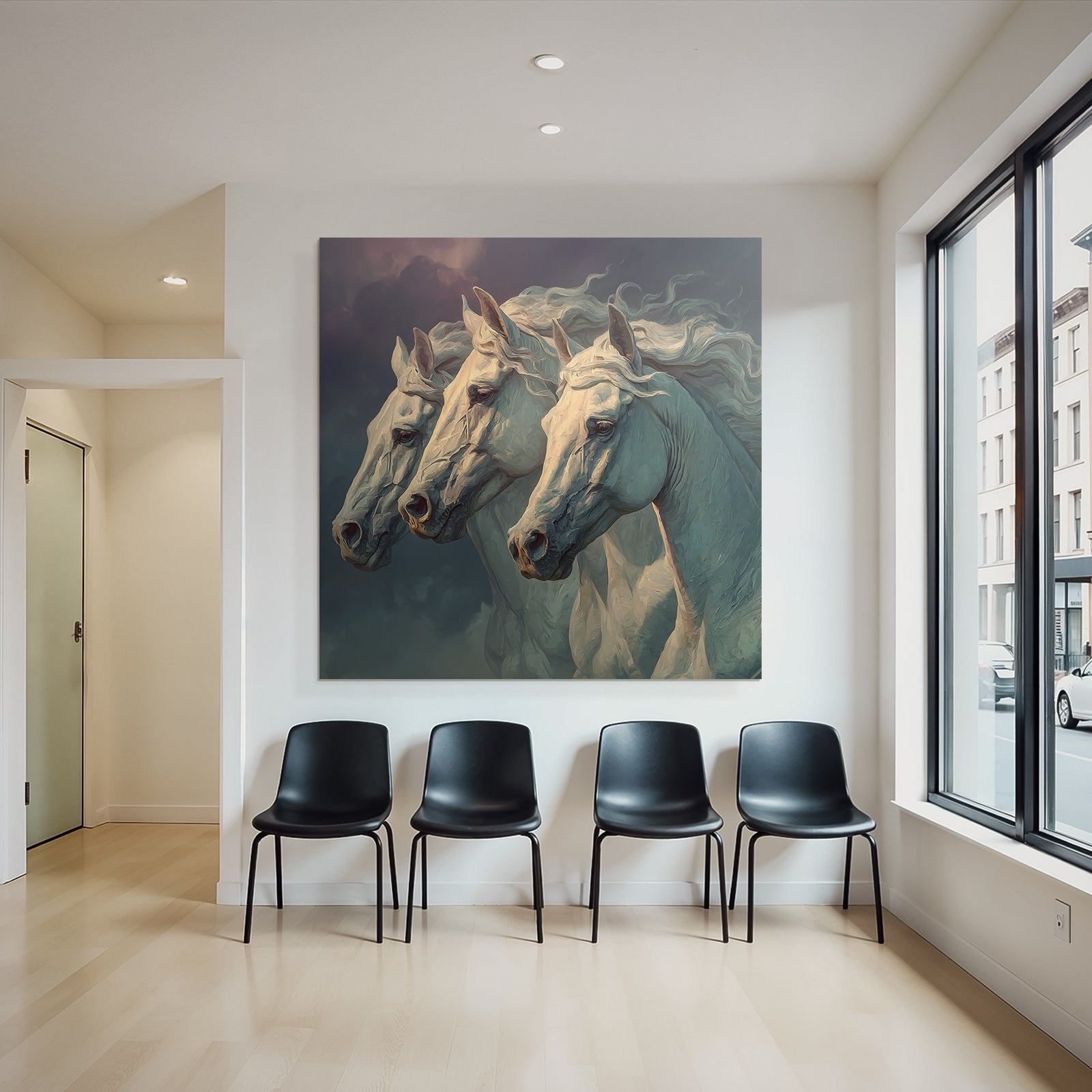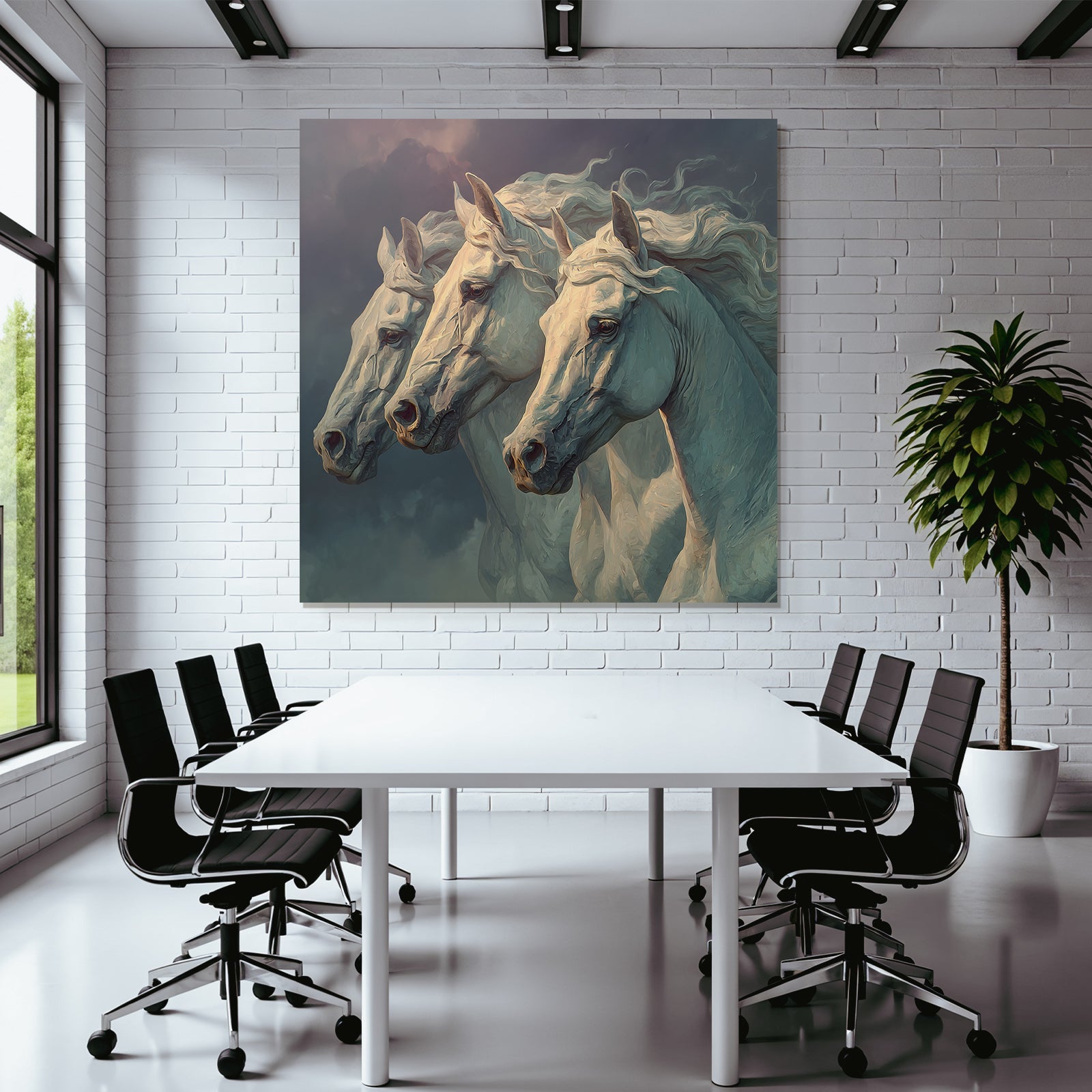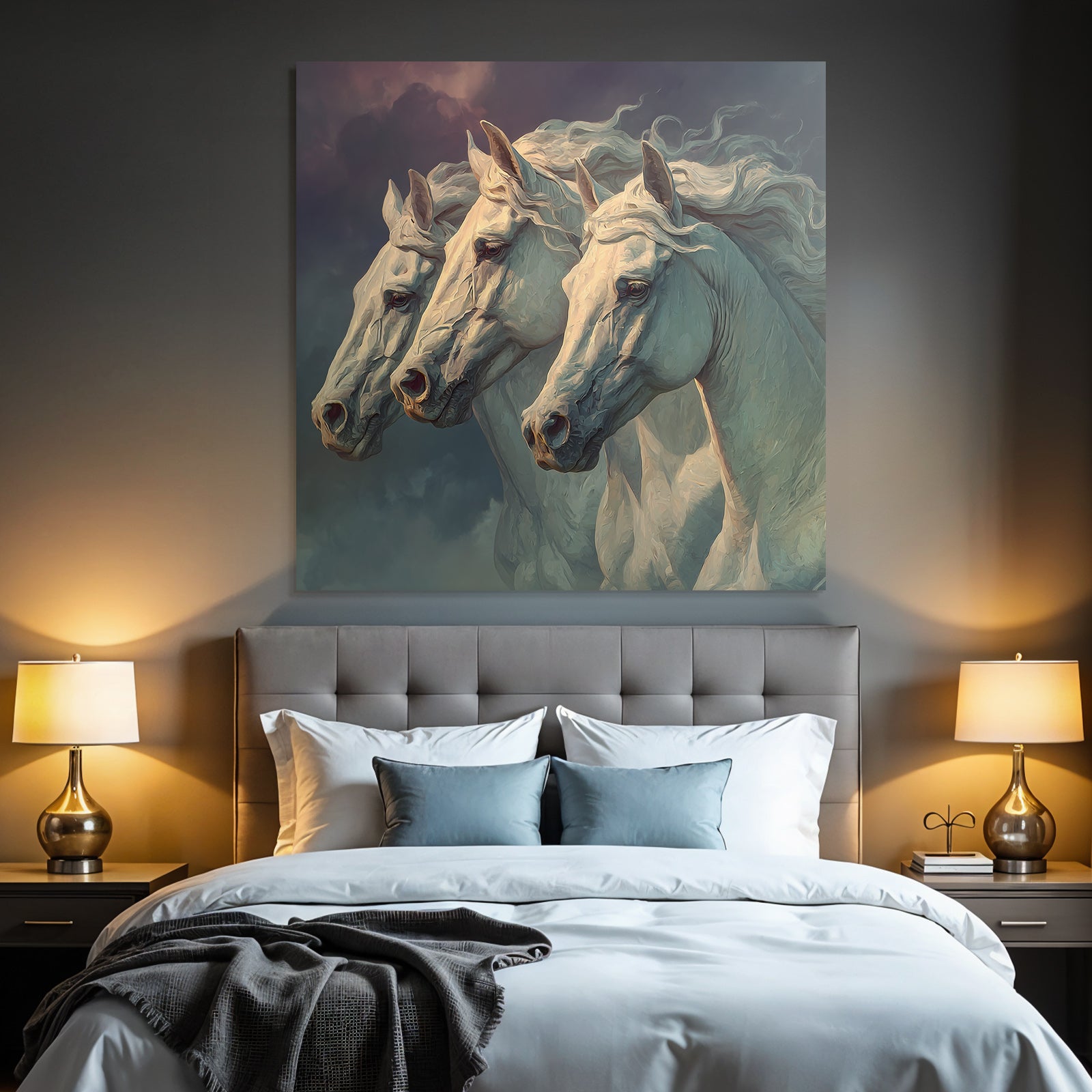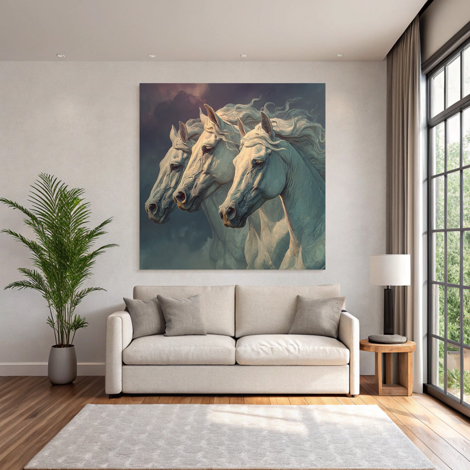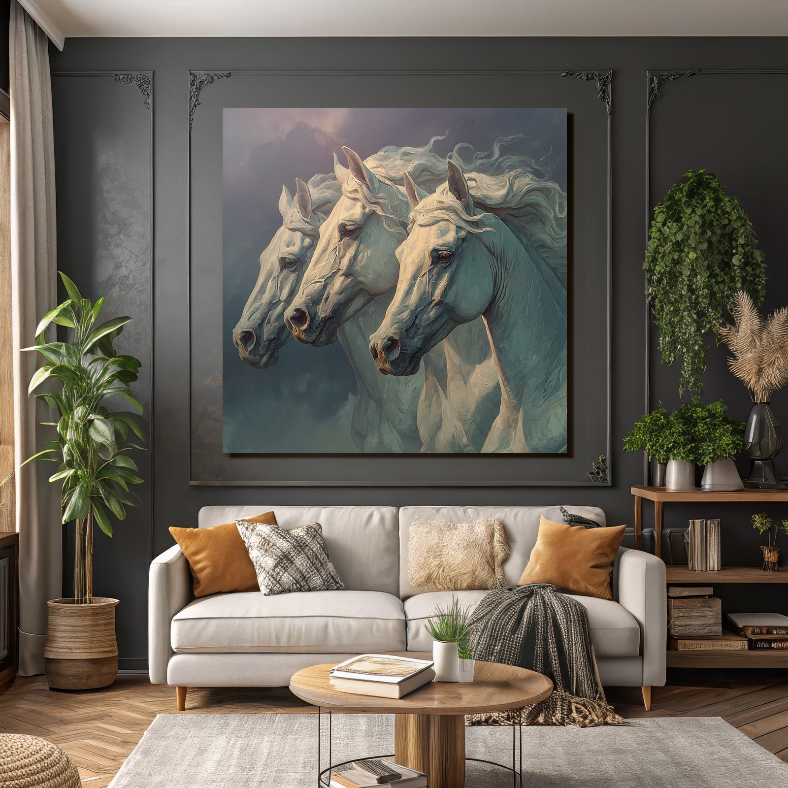 The motif “Three White Horses Stormy Sky Majestic” is a highlight of the Classic collection and will be brilliantly showcased on your FameFrame .