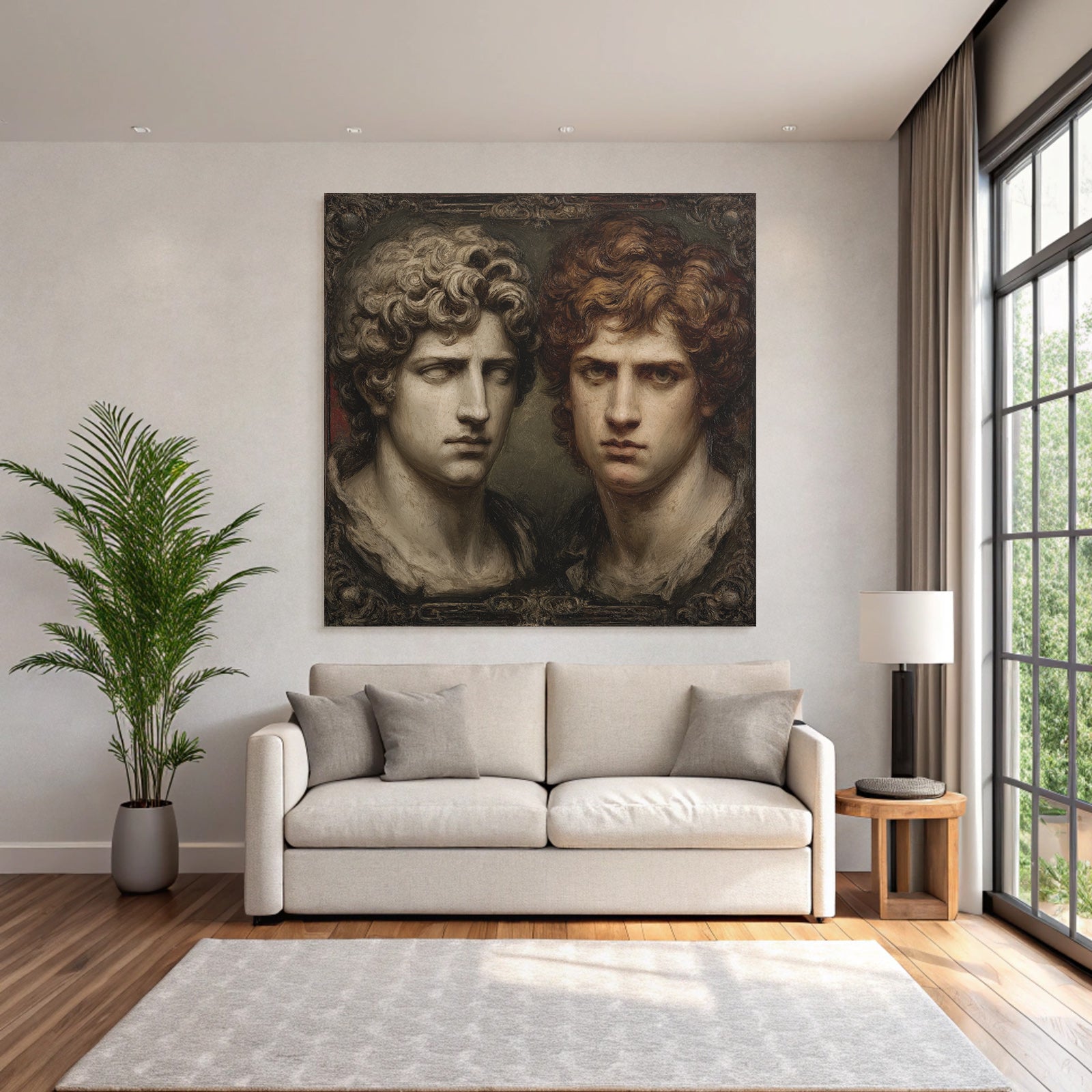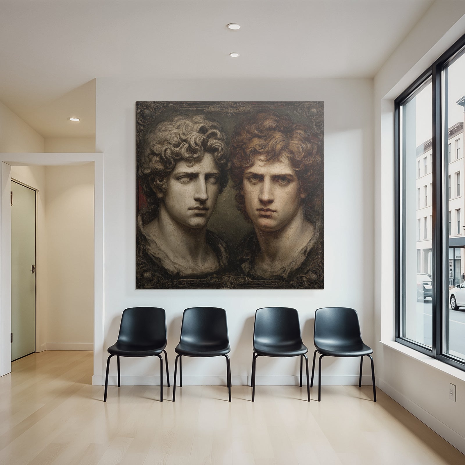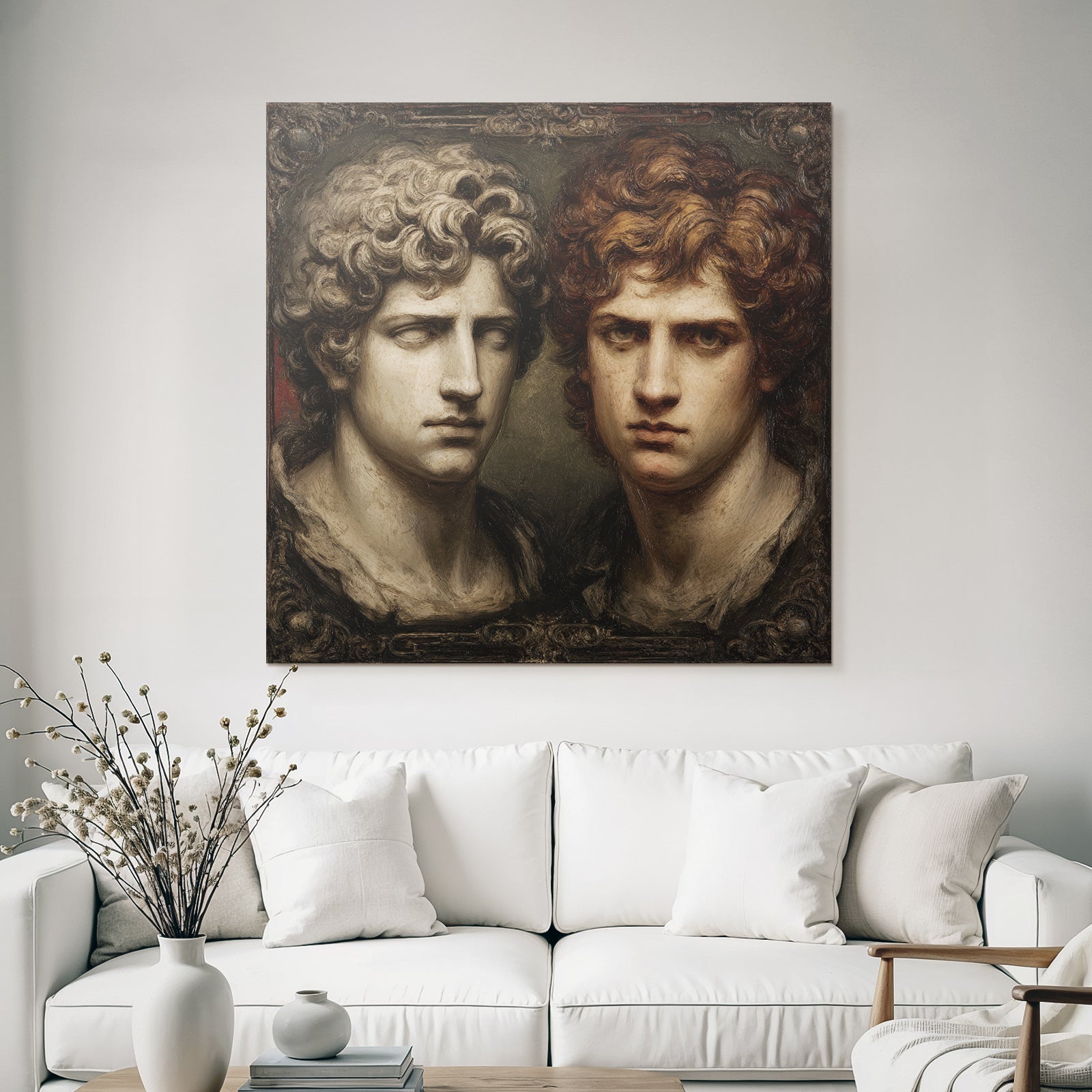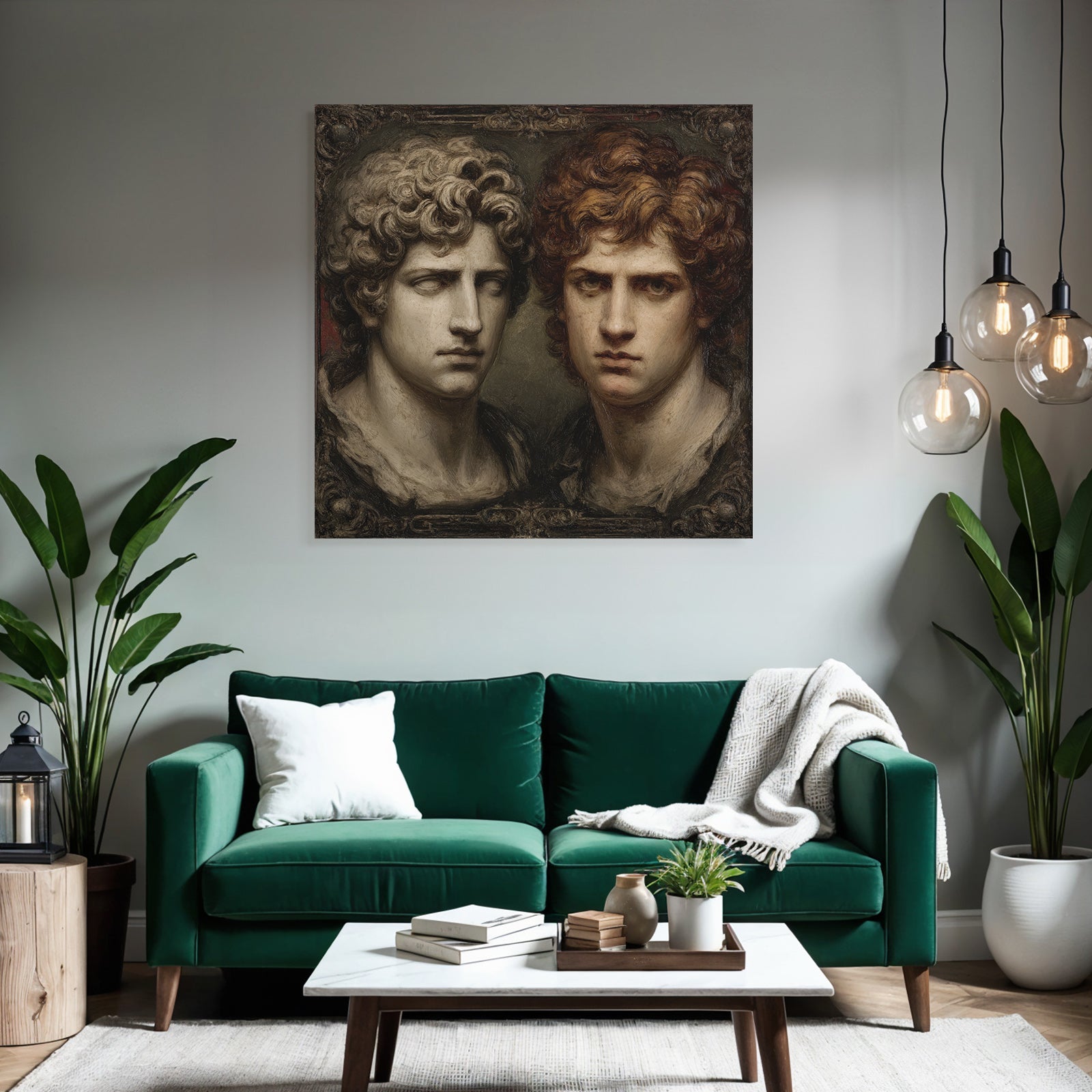 A unique artwork from the FameFrame product line entitled “Male Figures With Different Hairstyles” in Classic style.