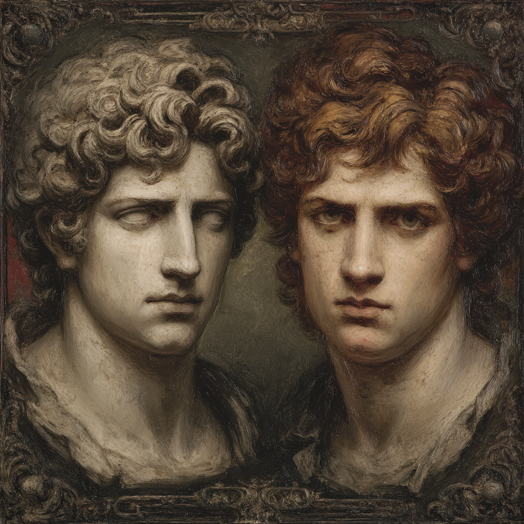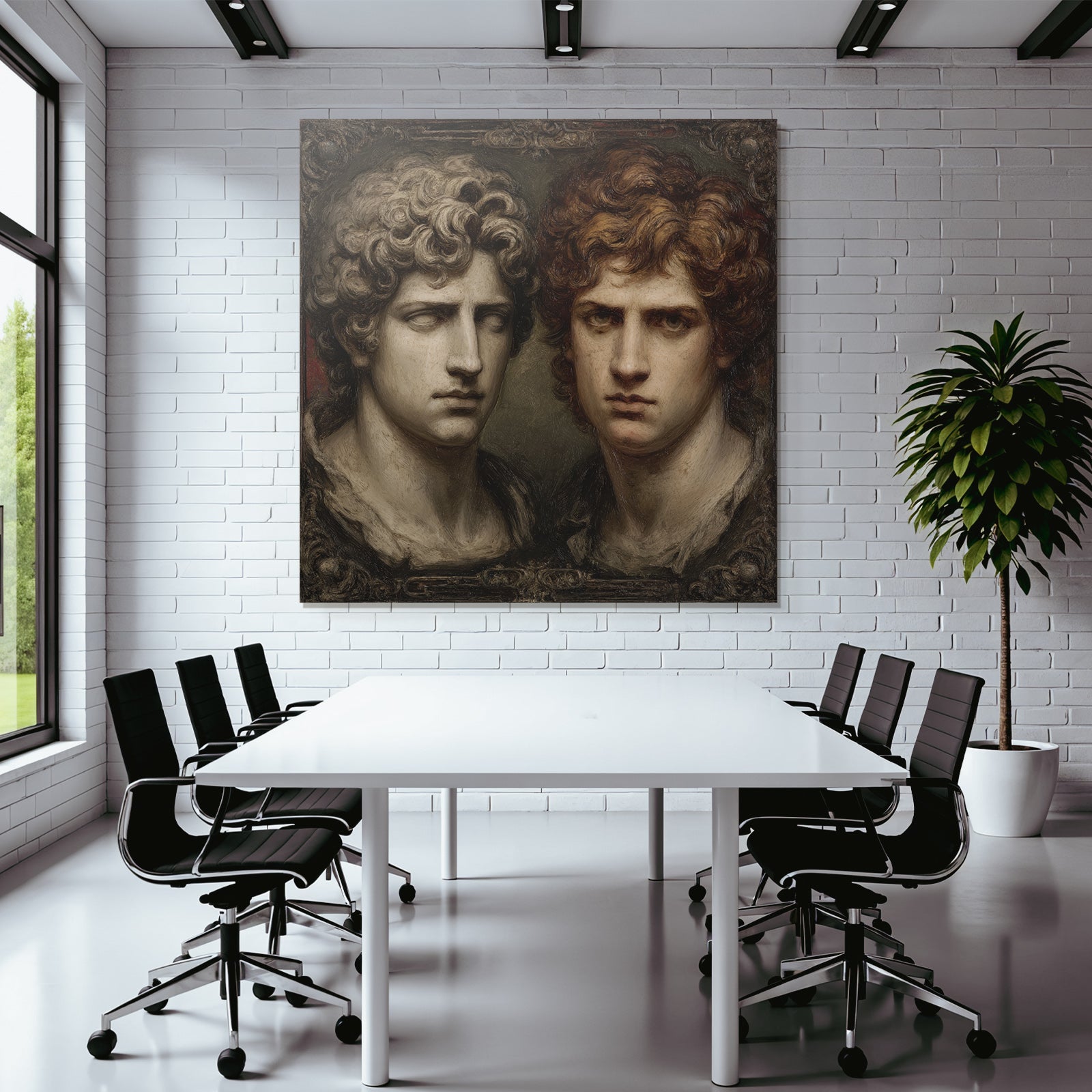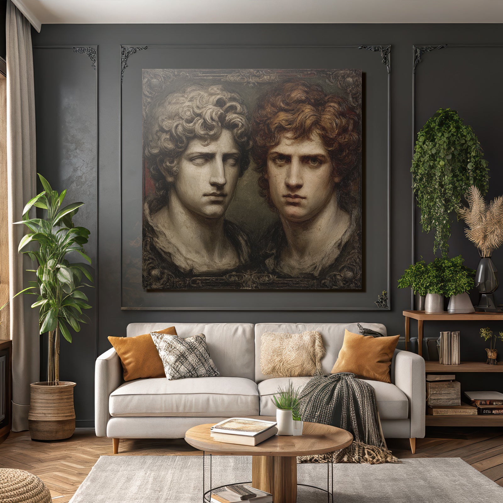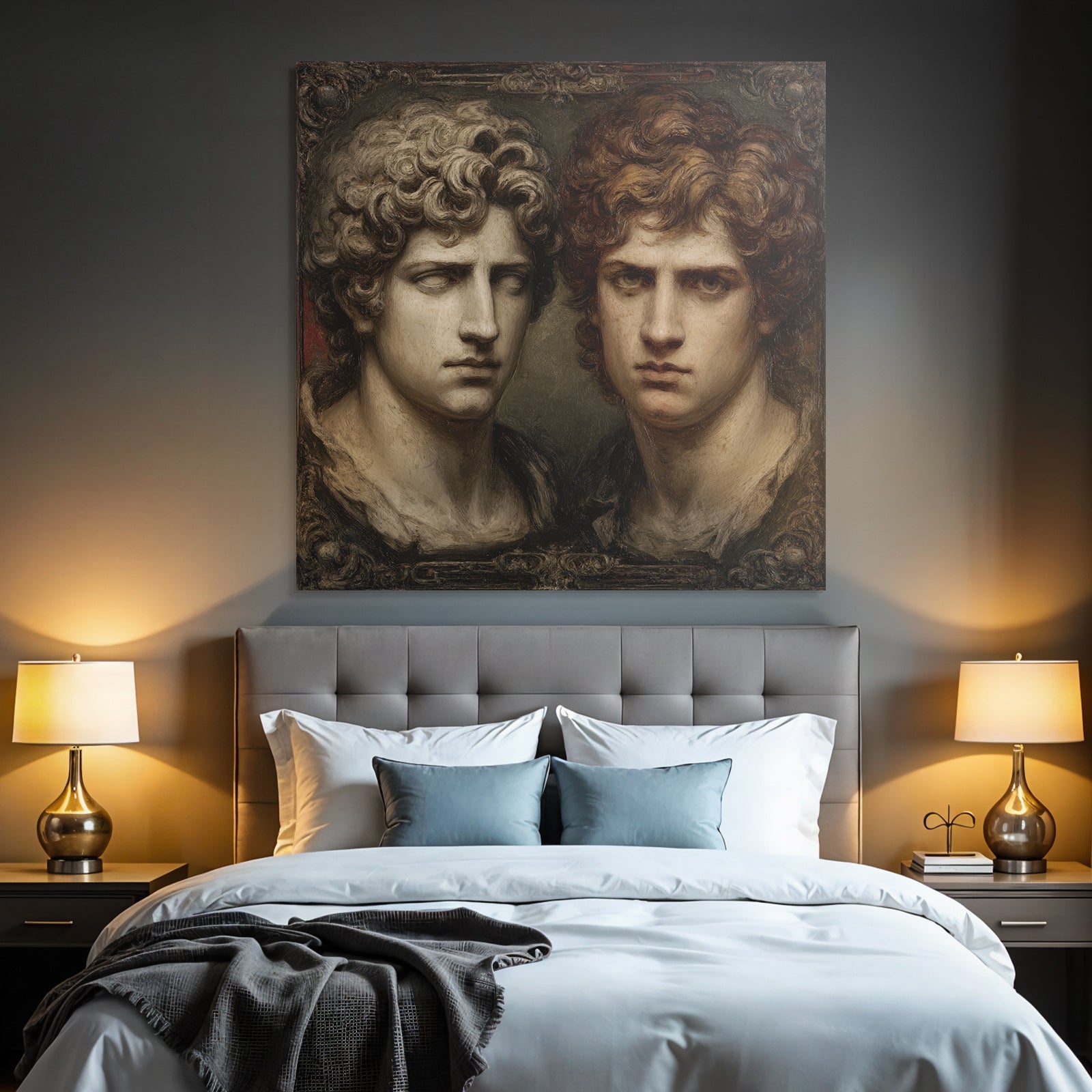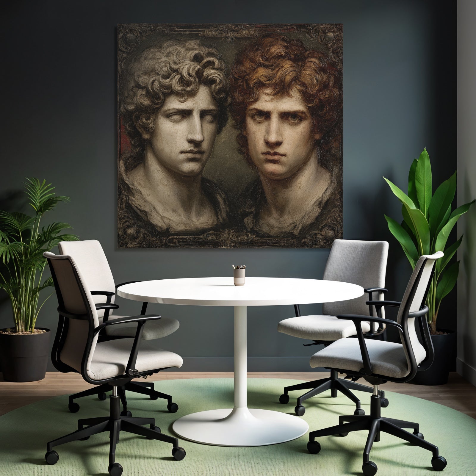 A unique artwork from the FameFrame product line entitled “Male Figures With Different Hairstyles” in Classic style.
