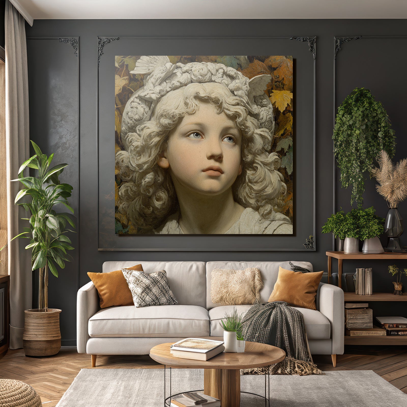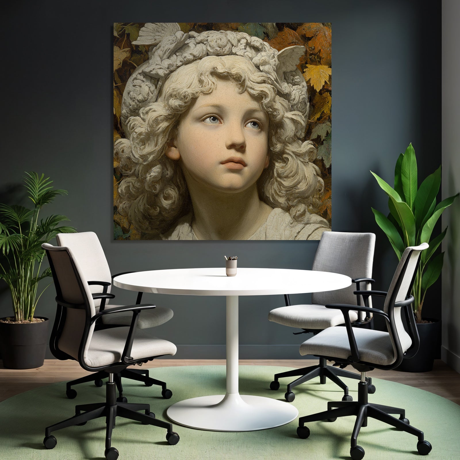 With the work “Childlike Figures With Autumn Leaves Artwork” in the classic style, you can design your waiting room or hotel lobby impressively and modernly – on fabric in the FameFrame .