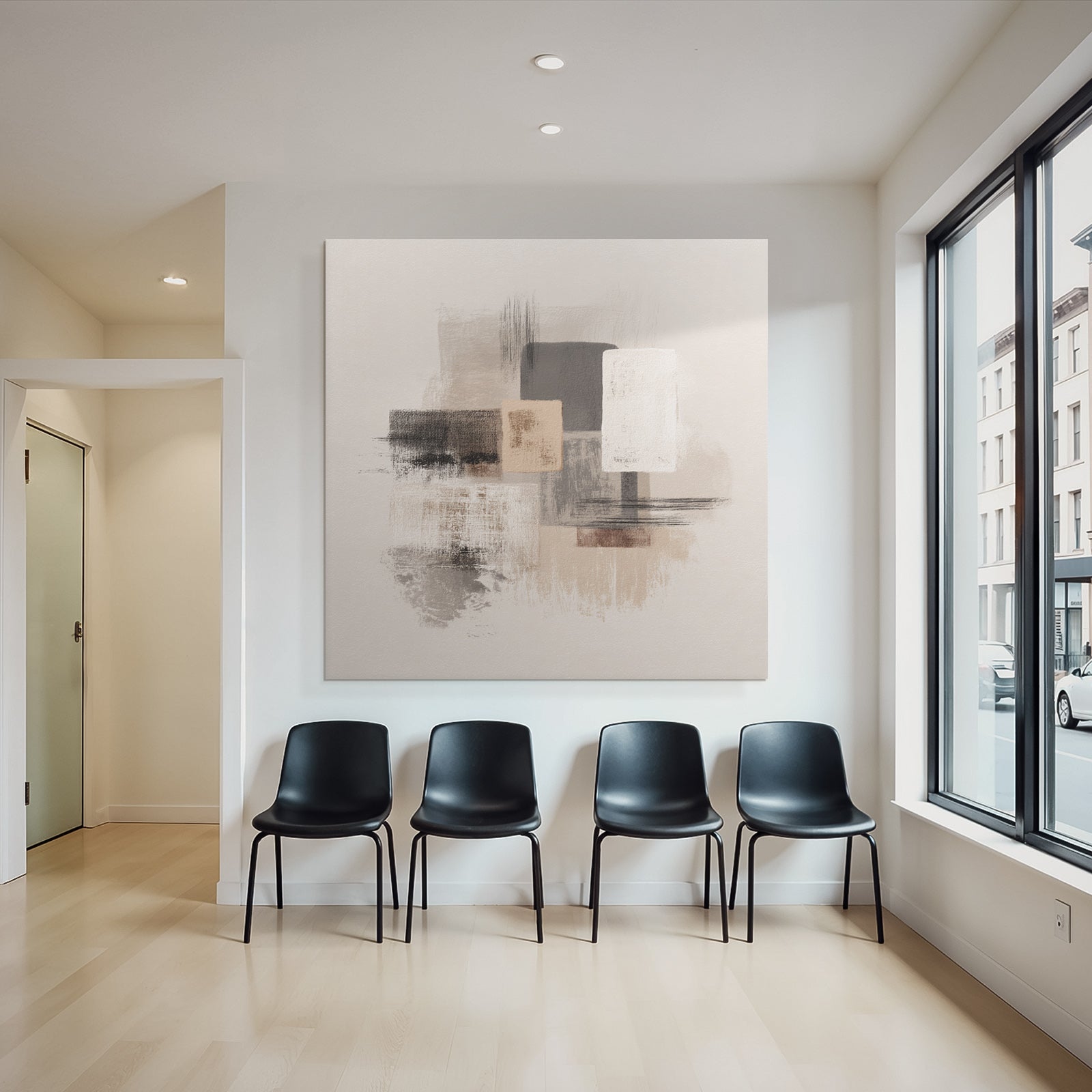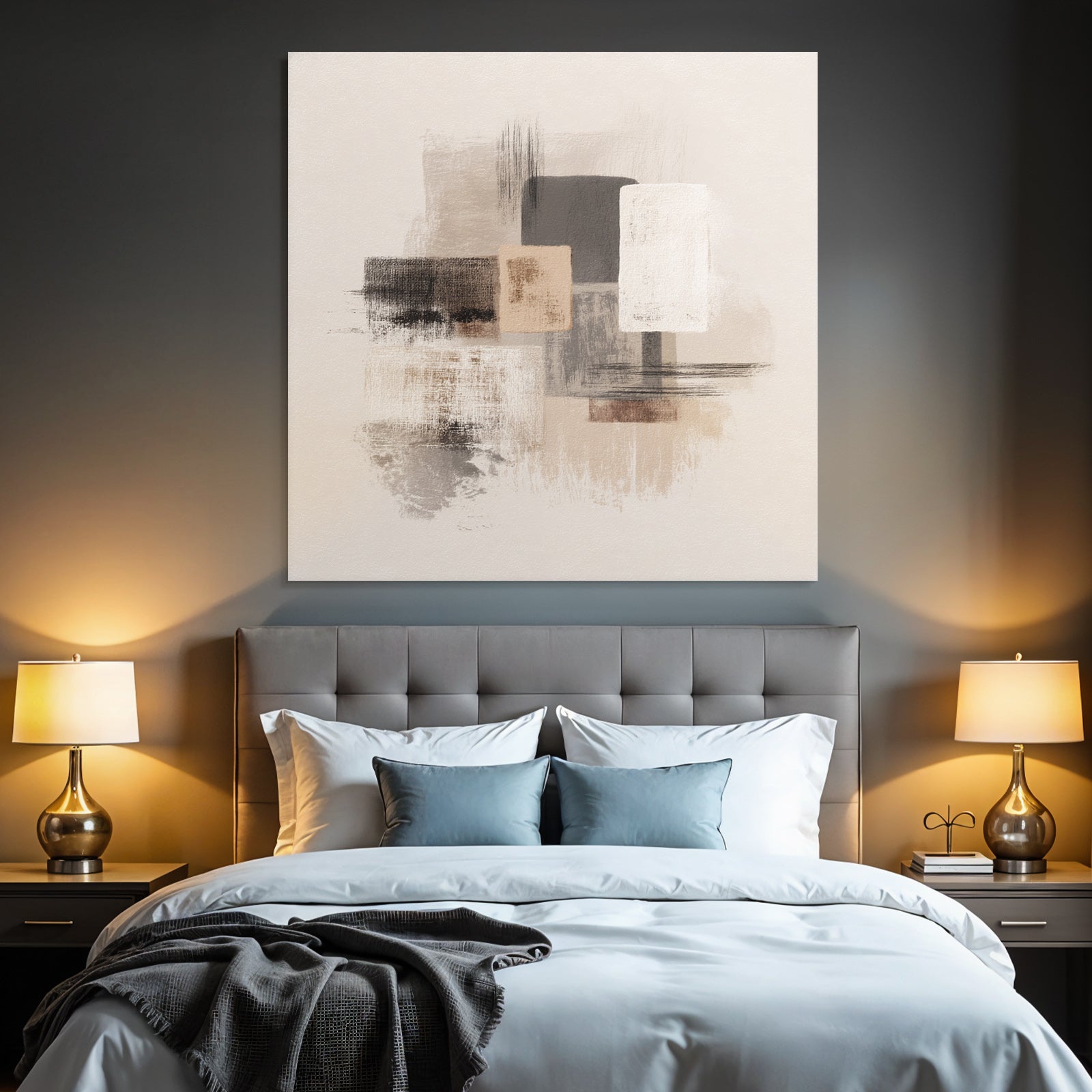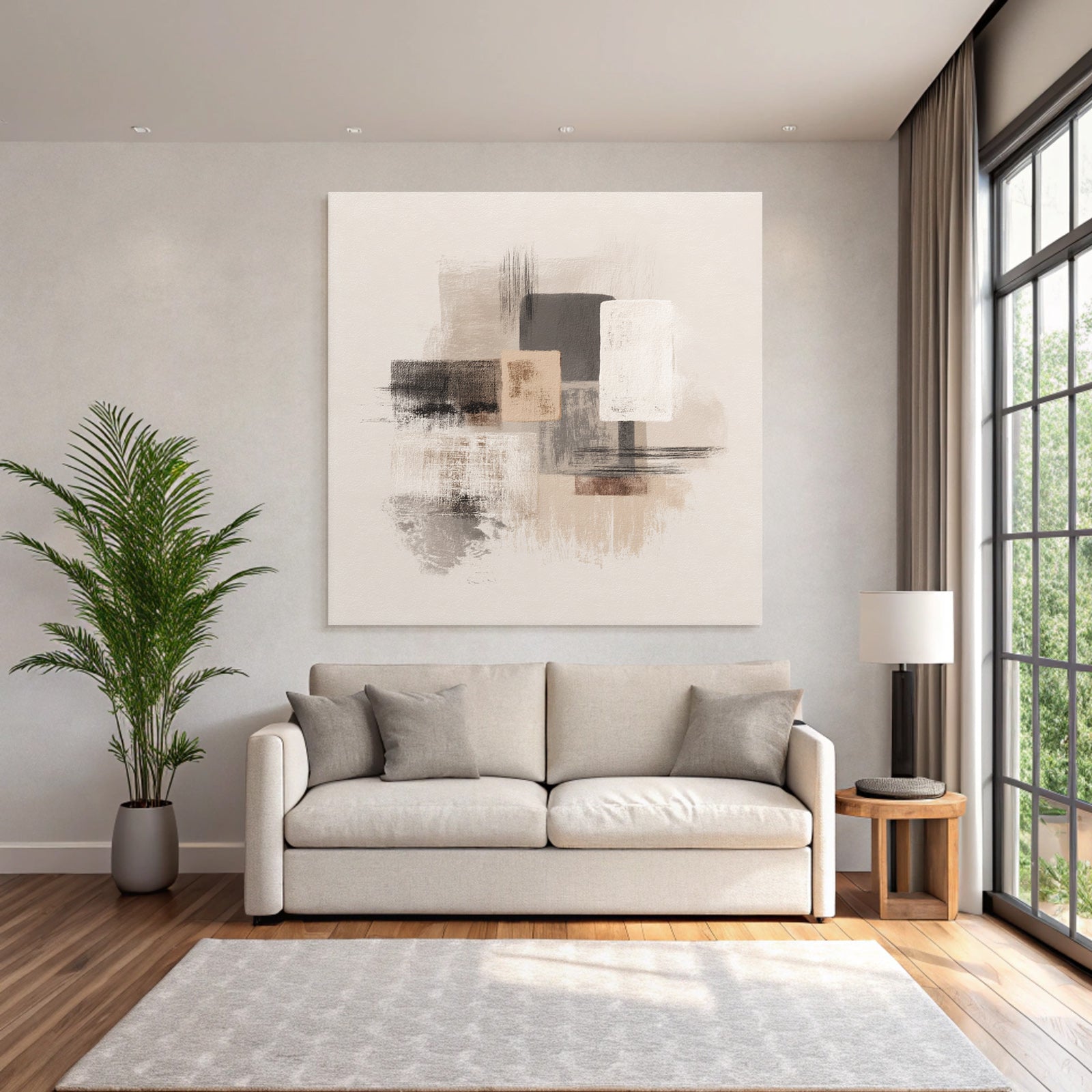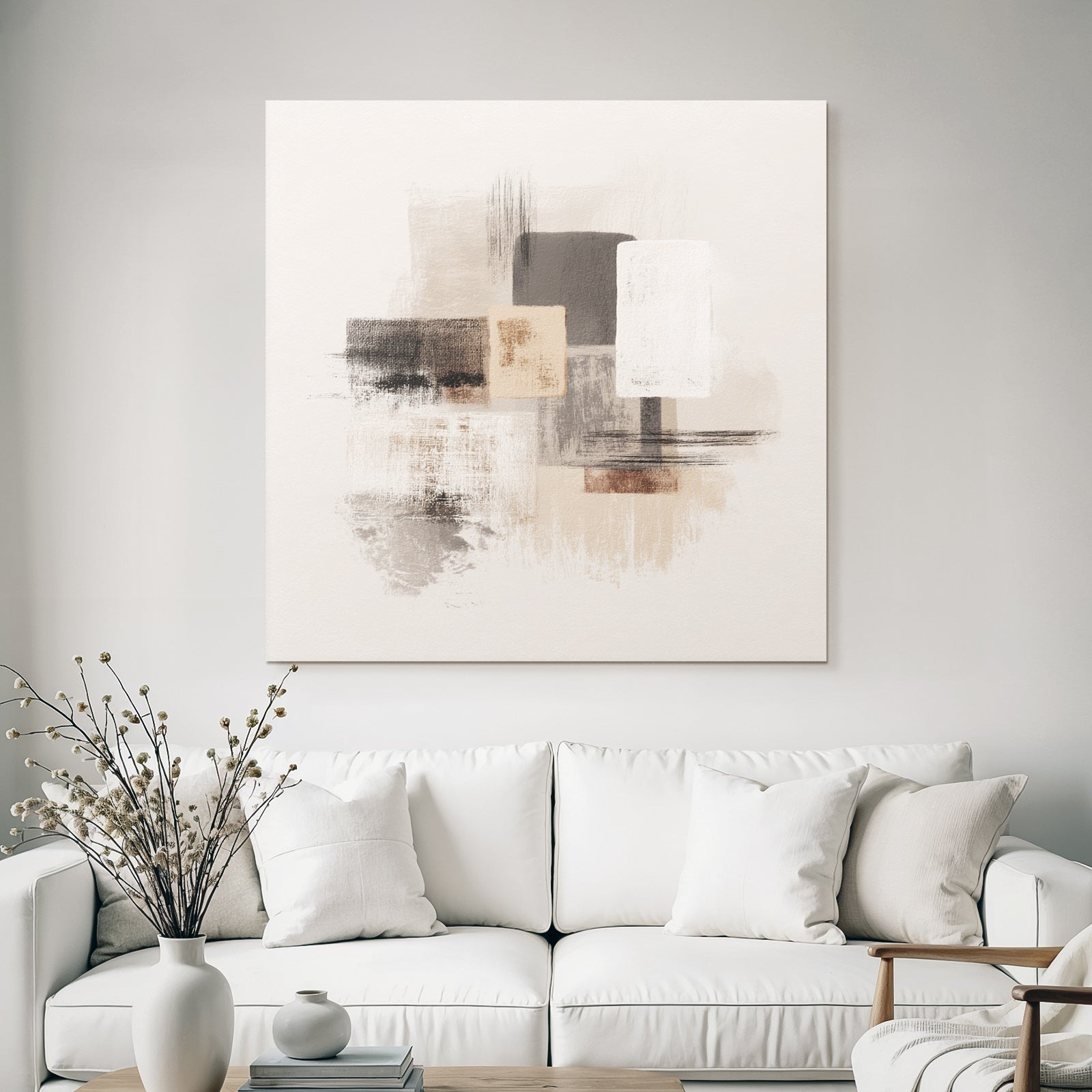 Experience art in the Japandi style in a new way: “Abstract Painting Geometric Shapes Neutral Tones” becomes an eye-catcher in any room thanks to the elegant FameFrame .