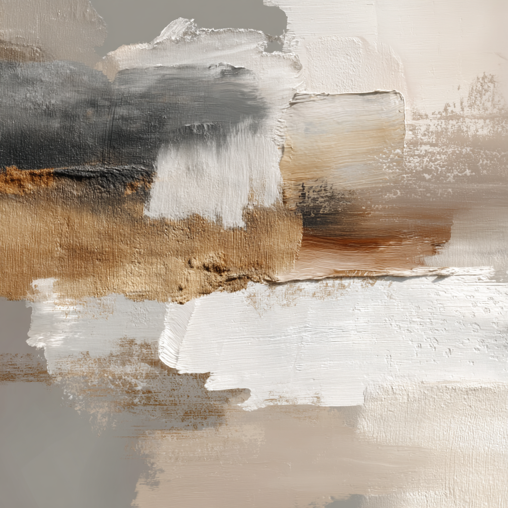 “Abstract Painting in Grey Tones Textured Brushstrokes” combines the best of Japandi with modern textile printing – elegantly presented in a high-quality FameFrame .