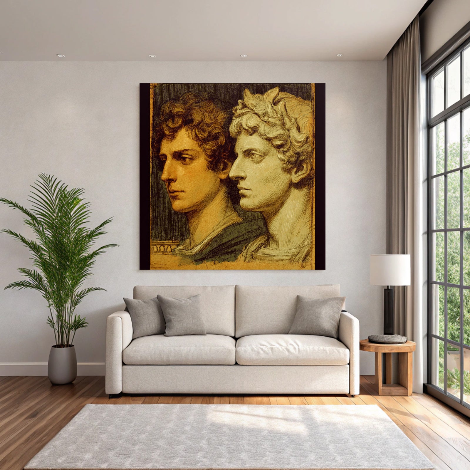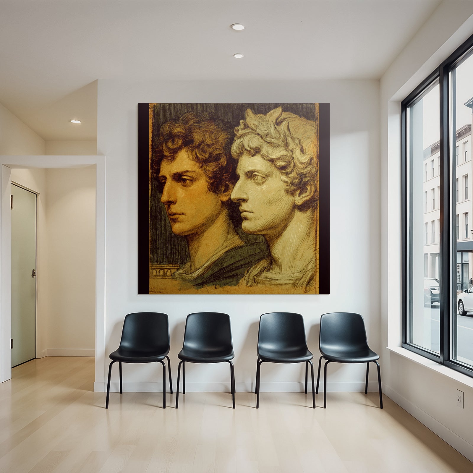 Set accents in the dining room , living room or practice room with the artwork “Male Profile Pictures Boy and E Statue” in the classic style – stretched in the elegant FameFrame .