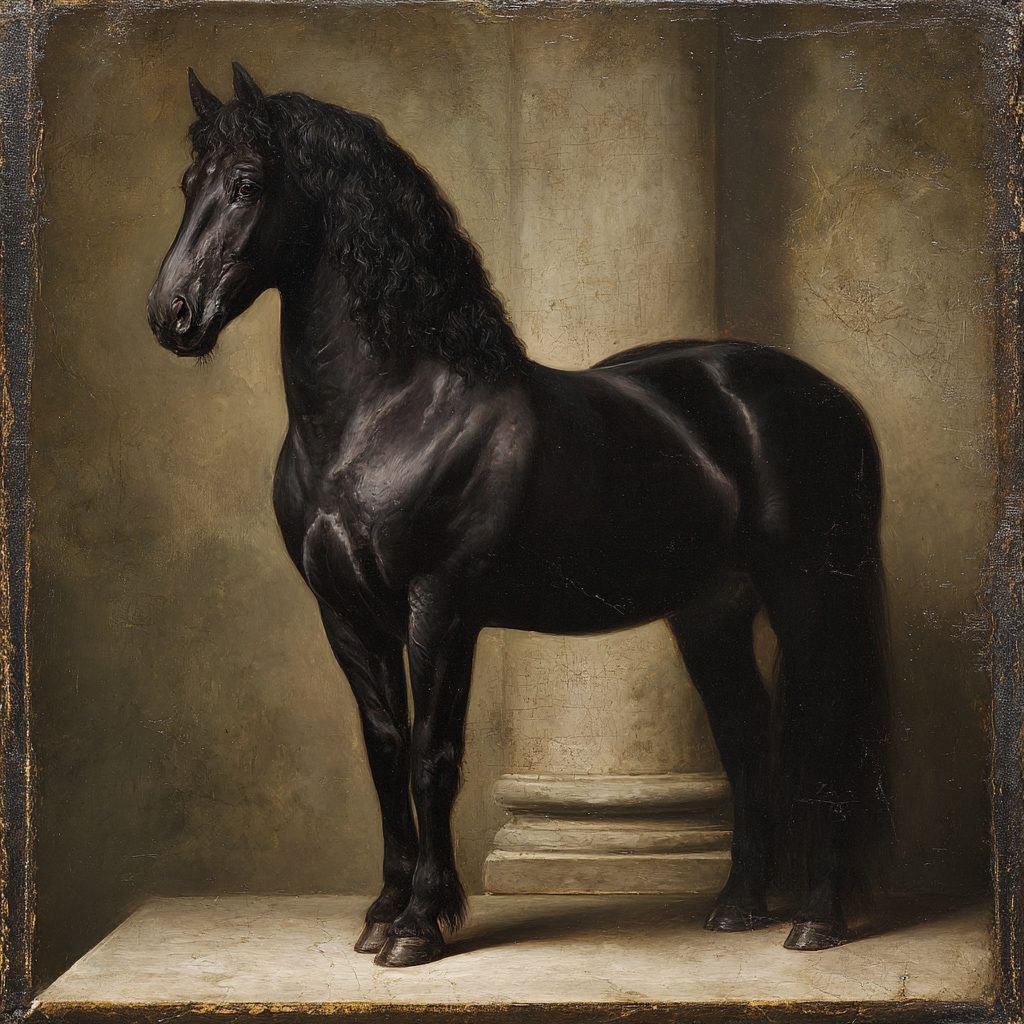 Black Horse Next to Column Artful Representation
