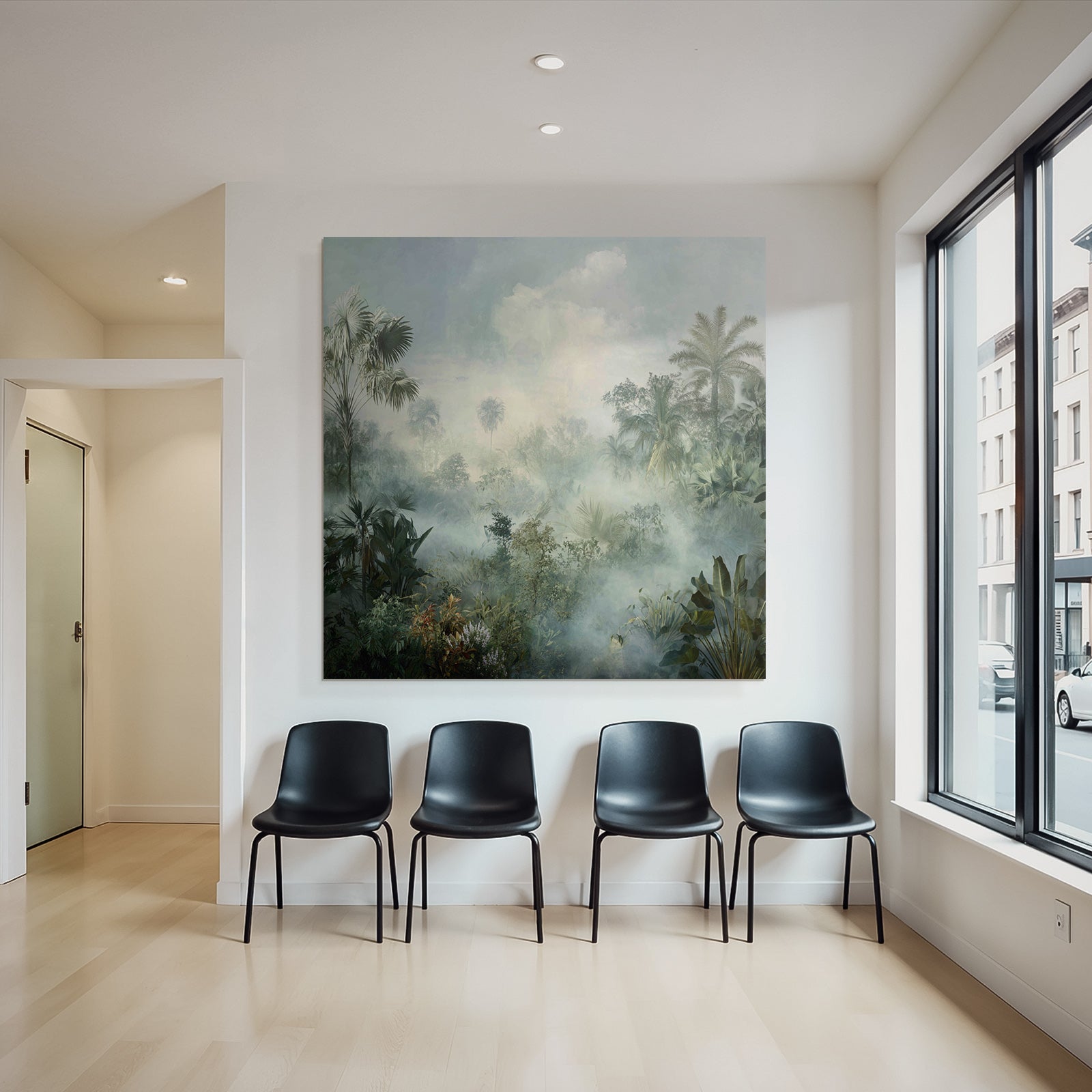 A unique artwork from FameFrame titled “Tropics And Jungle Peaceful Misty Landscape Tropical Forest” in Tropics and Jungle style.