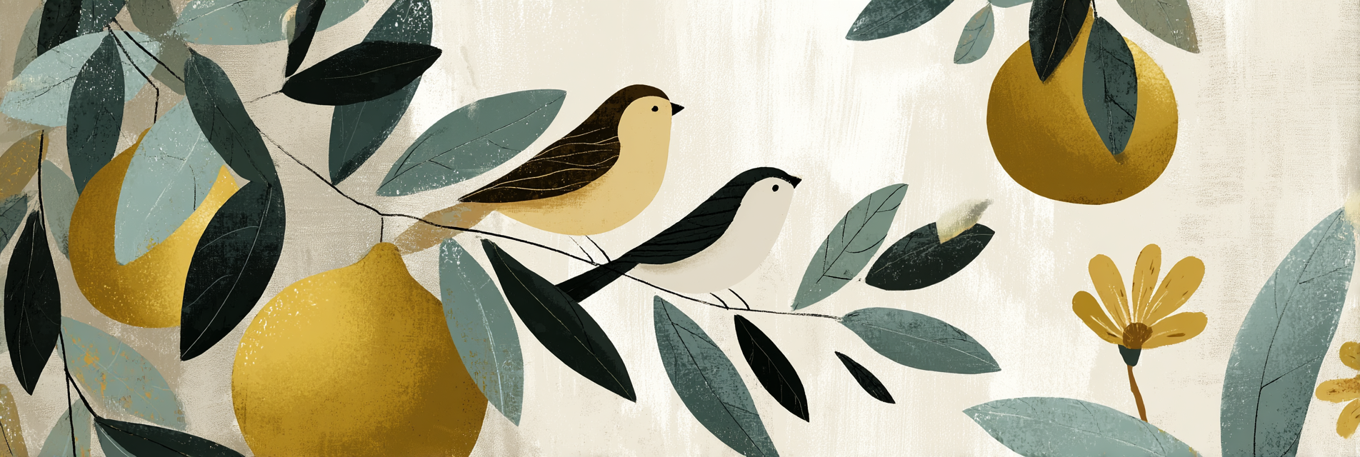 Modern, stylish, individual: "Two Birds Aesthetic Branch" in Scandinavian style impresses with its clear shapes and strong colors in the high-quality FameFrame .