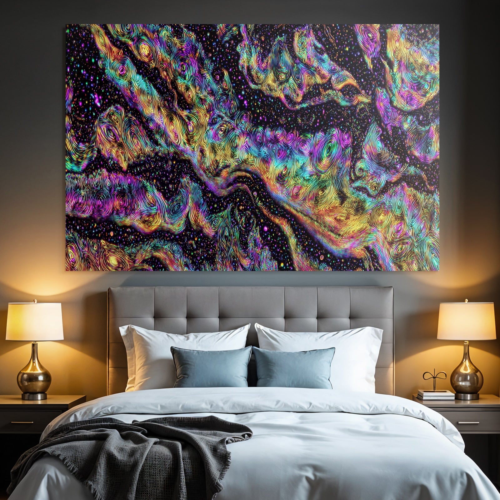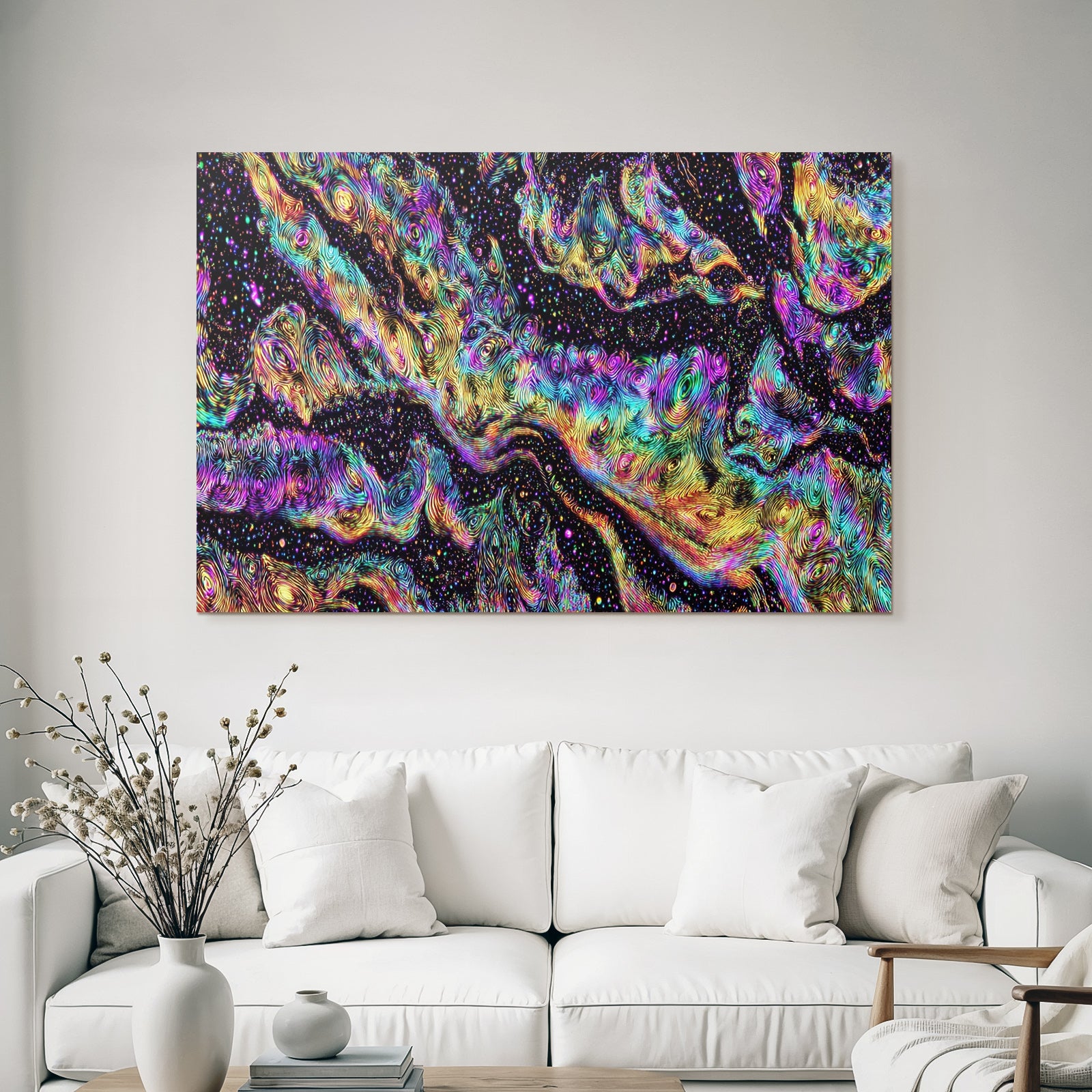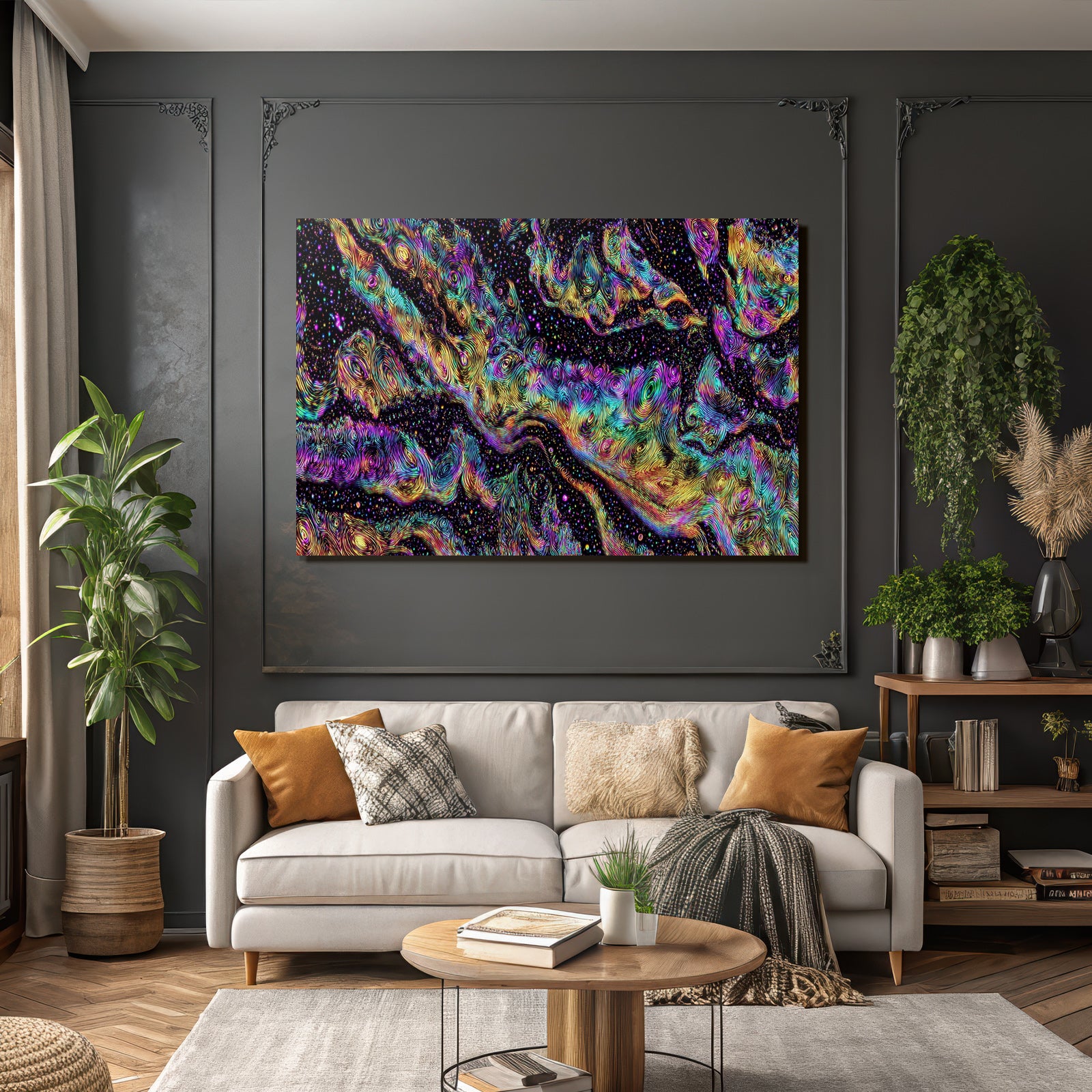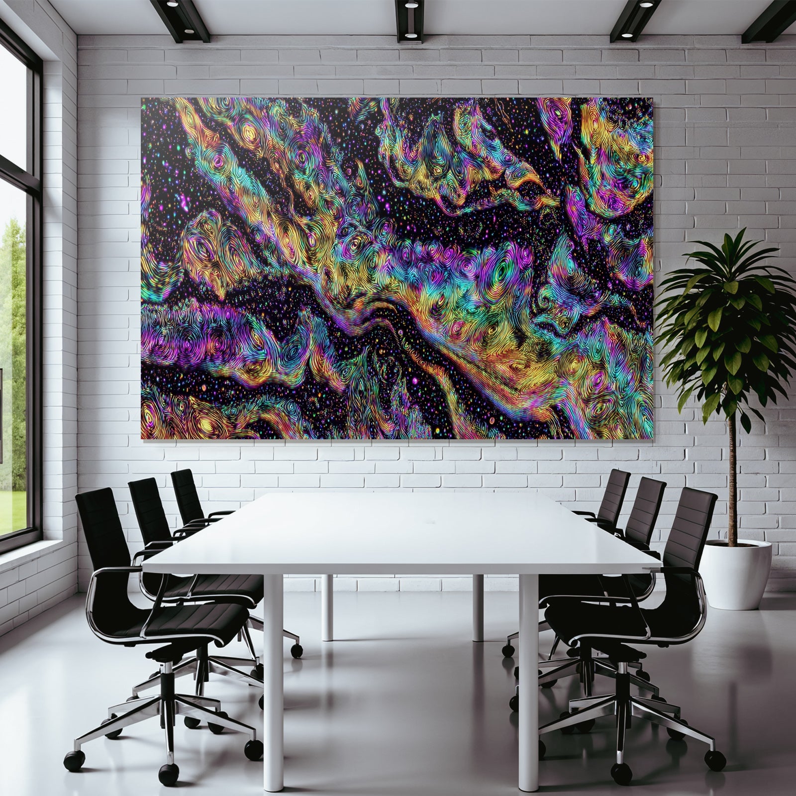 Verleihe Lobby, Wartezimmer oder Studio eine besondere Atmosphäre mit „Abstrakter Weltraum Mit Leuchtenden Nebeln“ im Stil Psychedelische Kunst – eindrucksvoll im FameFrame™ präsentiert.