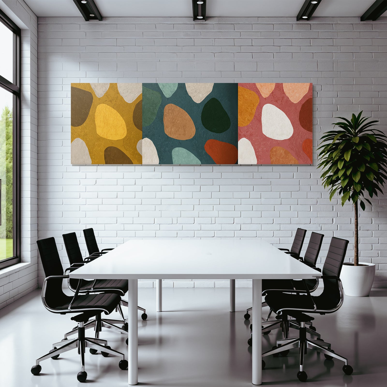 Verleihe Lobby, Wartezimmer oder Studio eine besondere Atmosphäre mit „„Abstraktes Design Lang Drei““ im Stil Mid Century Modern – eindrucksvoll im FameFrame präsentiert.