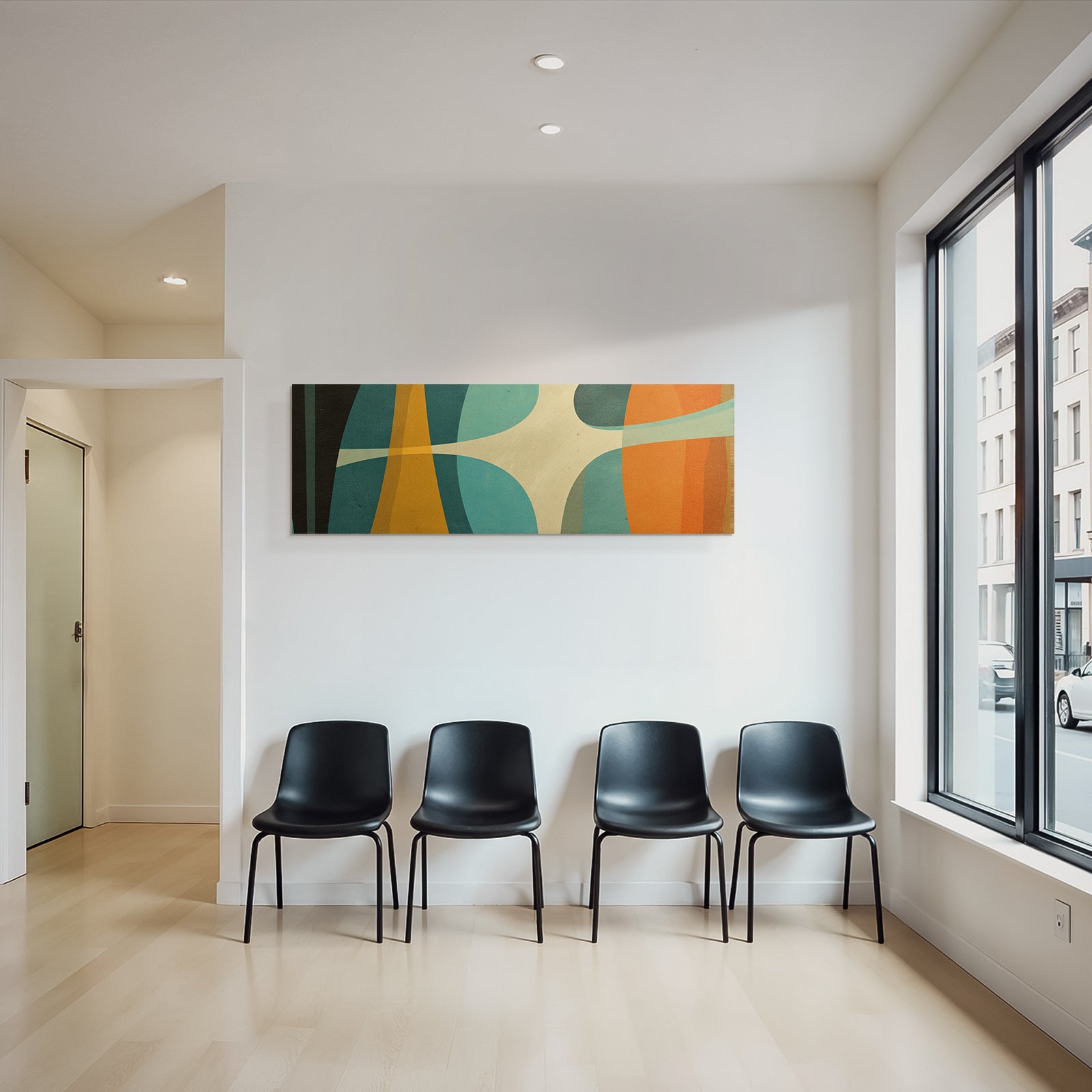 Verschönere Dein Zuhause mit diesem Werk im Stil Mid Century Modern. Der Titel „„Abstraktes Design Retro Aesthetik““ kommt im hochwertigen FameFrame perfekt zur Geltung.