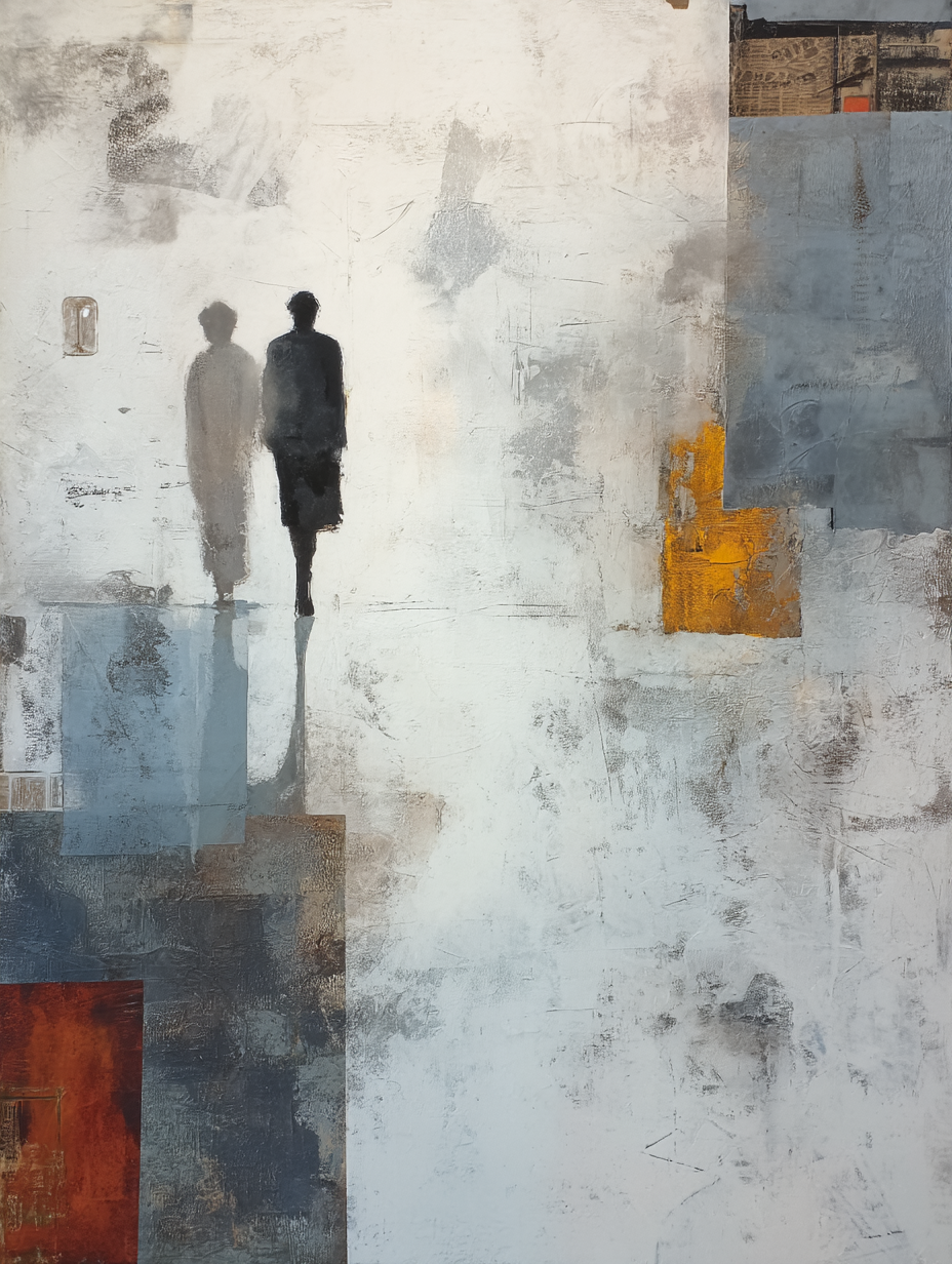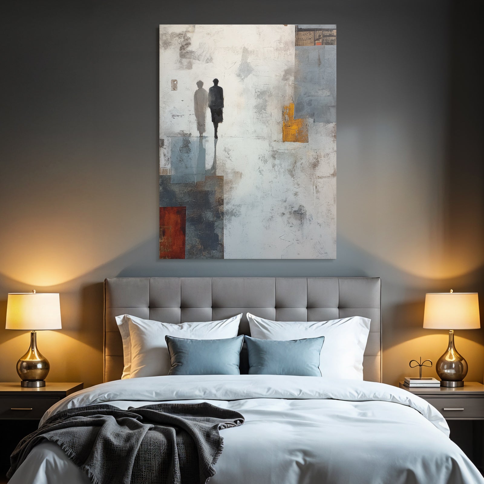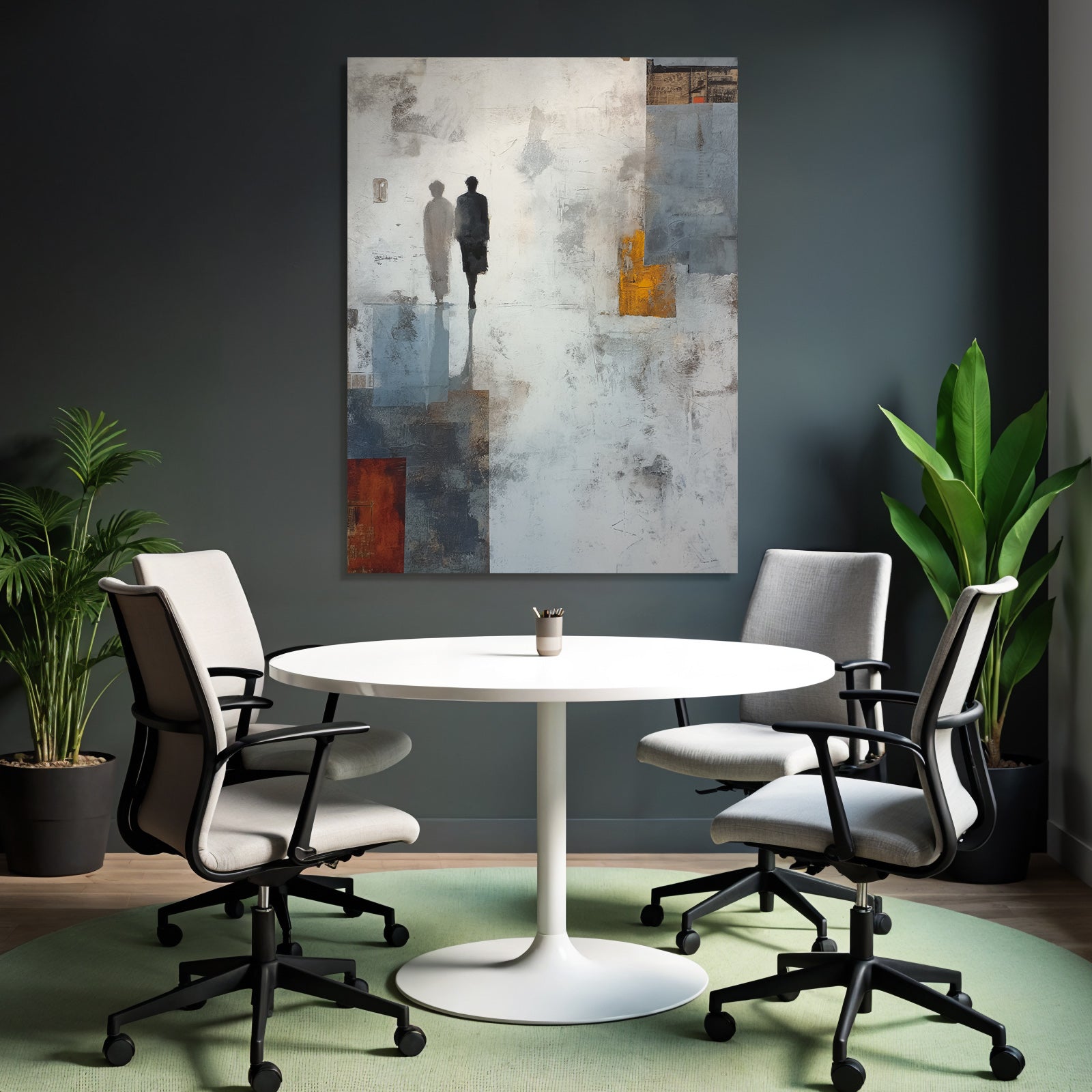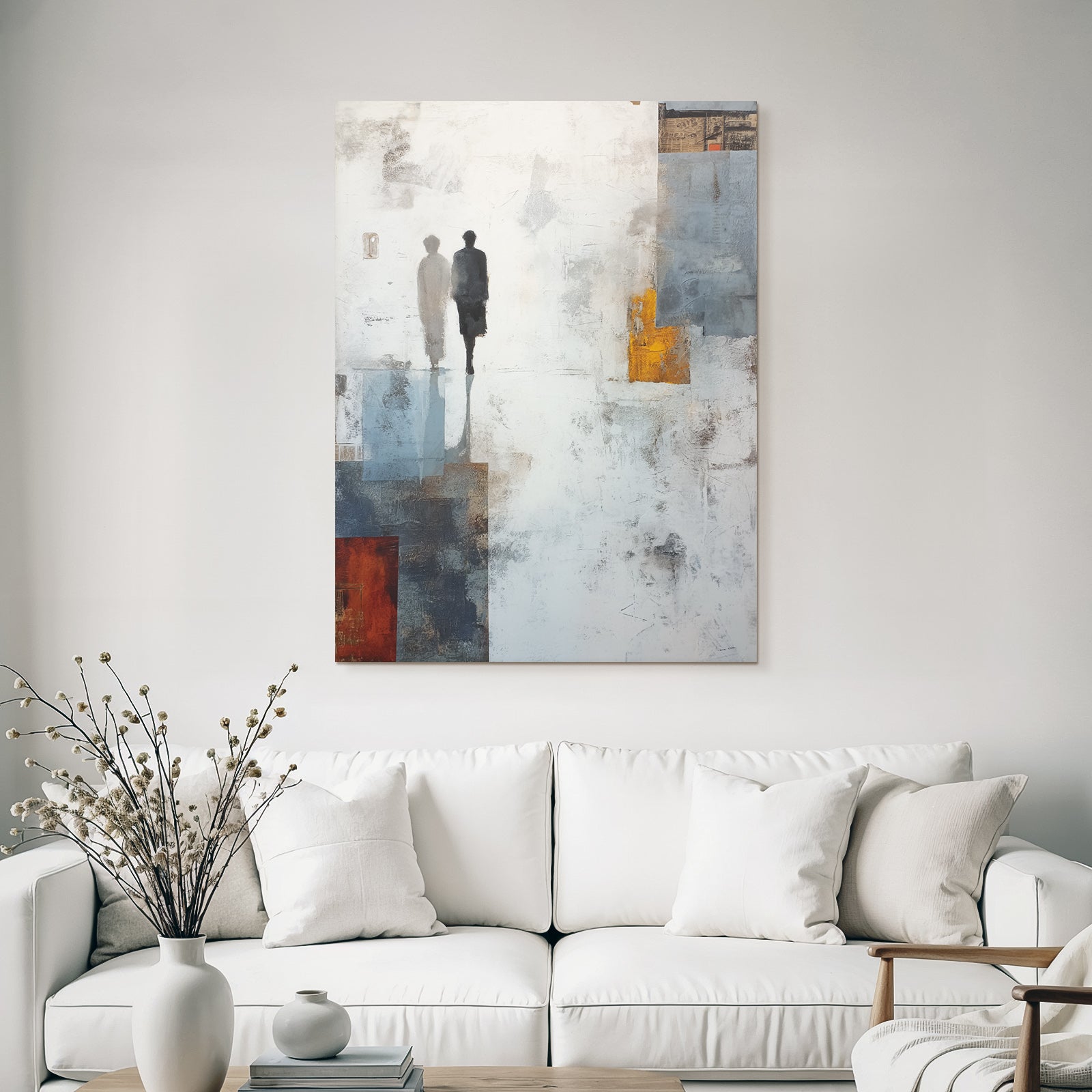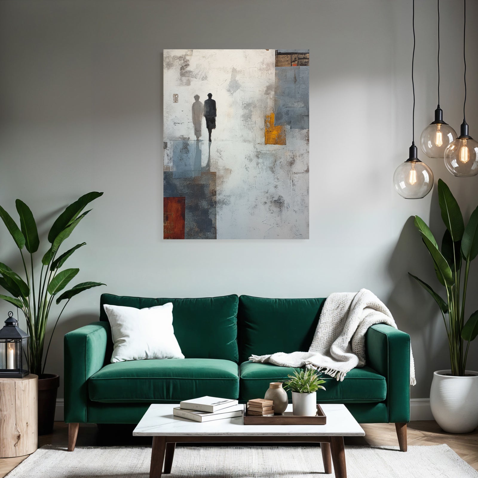 Mit dem Werk „„ Abstraktes Gemalde Figuren““ im Stil Industrial gestaltest Du Dein Wartezimmer oder Deine Hotel-Lobby eindrucksvoll und modern – auf Stoff im FameFrame.