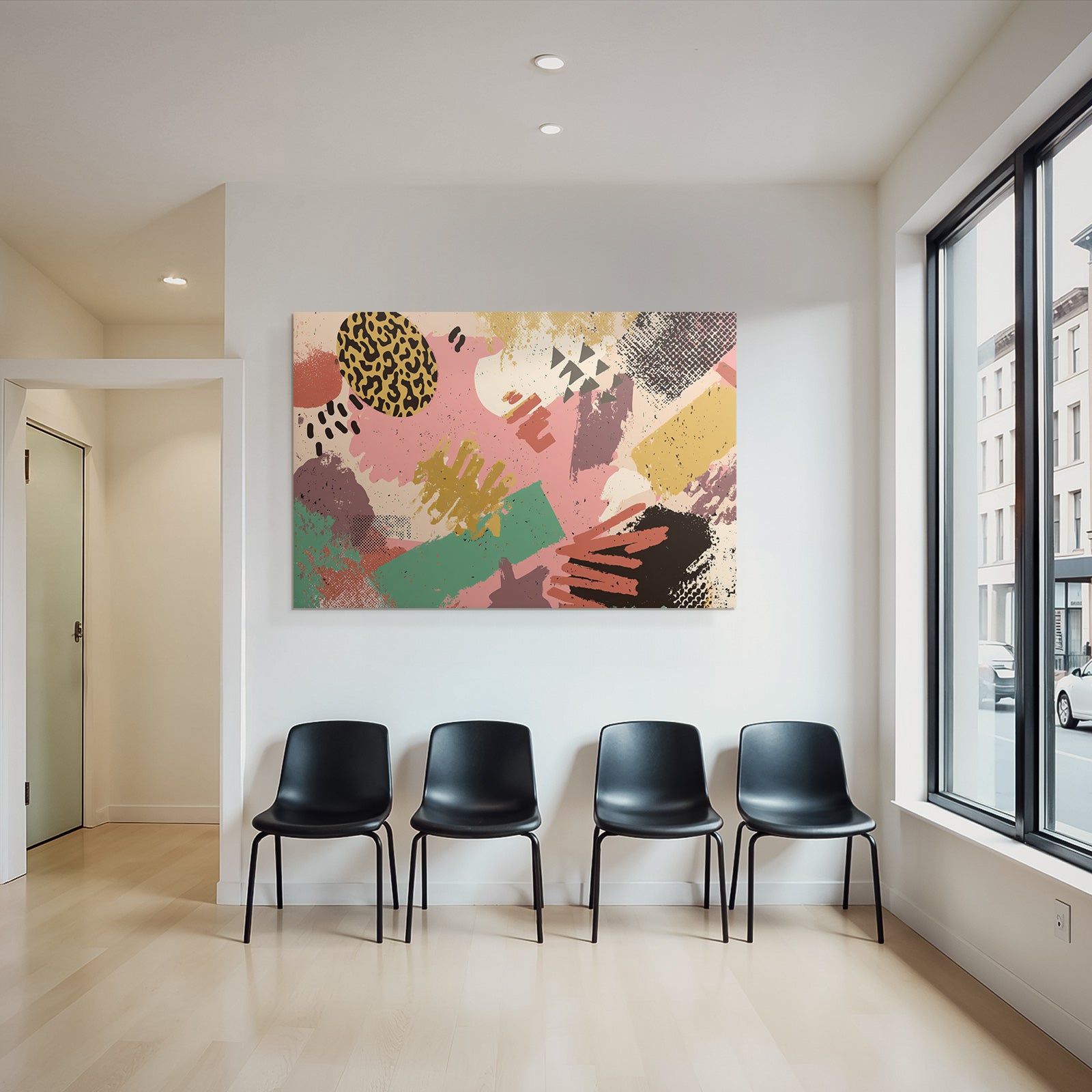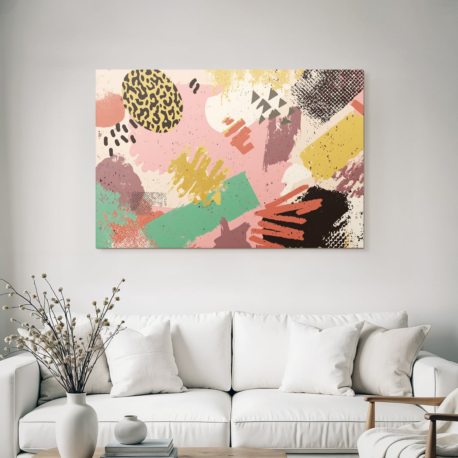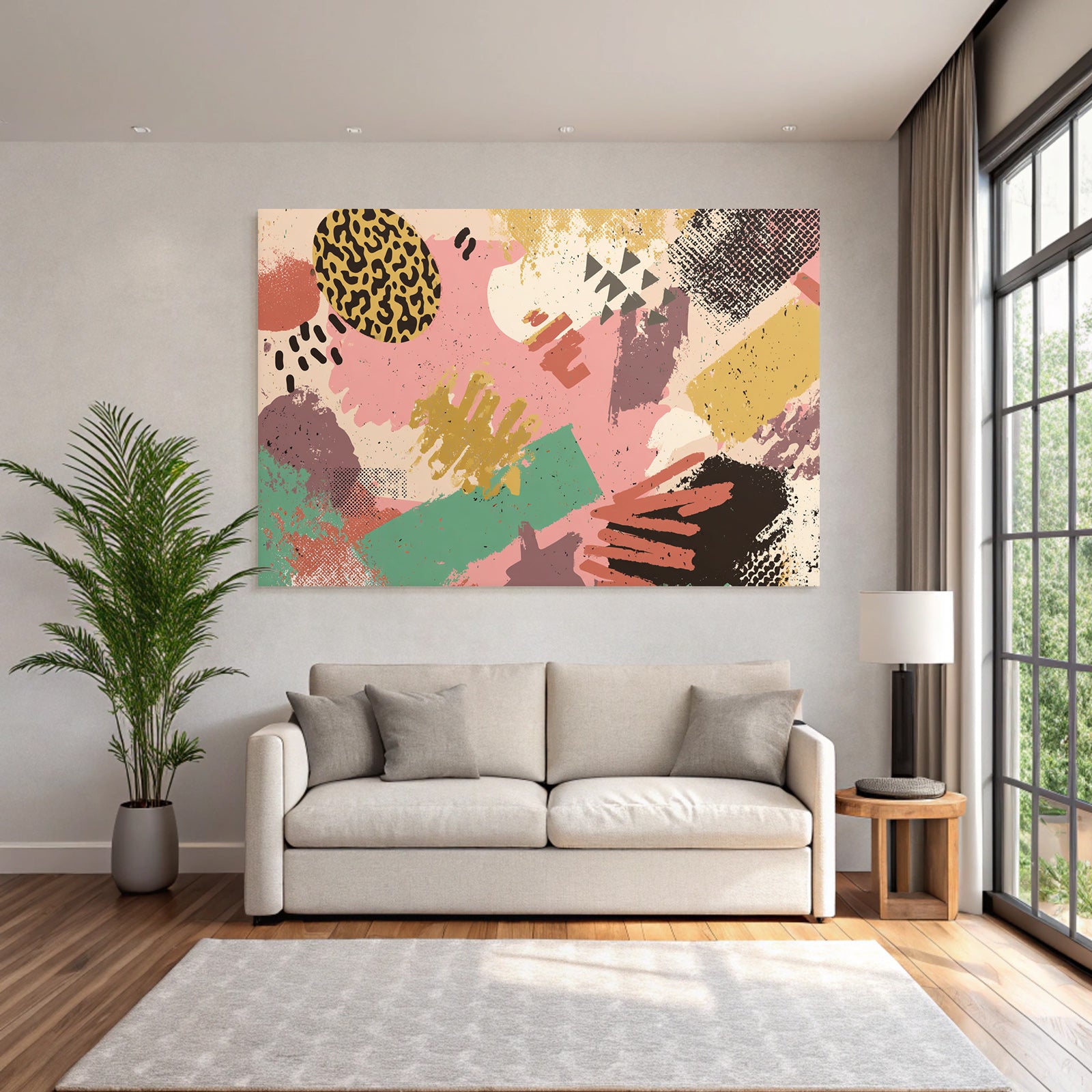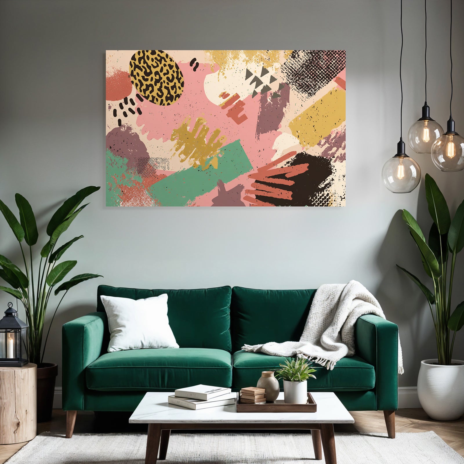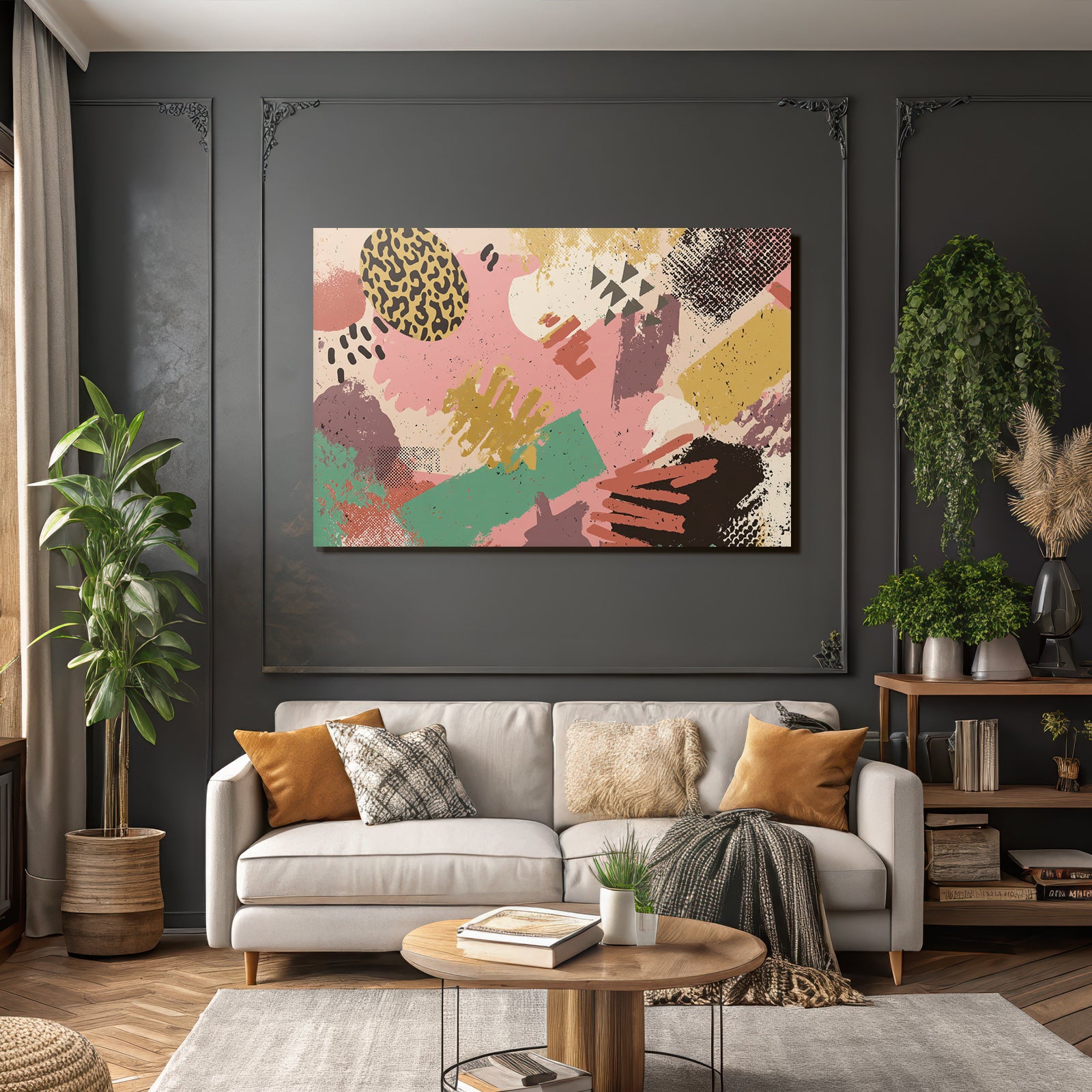 Ob im Wohnzimmer oder Essbereich – das Werk „„Abstraktesdesignfarbigeformenmuster““ im Stil Mid Century Modern wird im FameFrame zum stilvollen Blickfang.