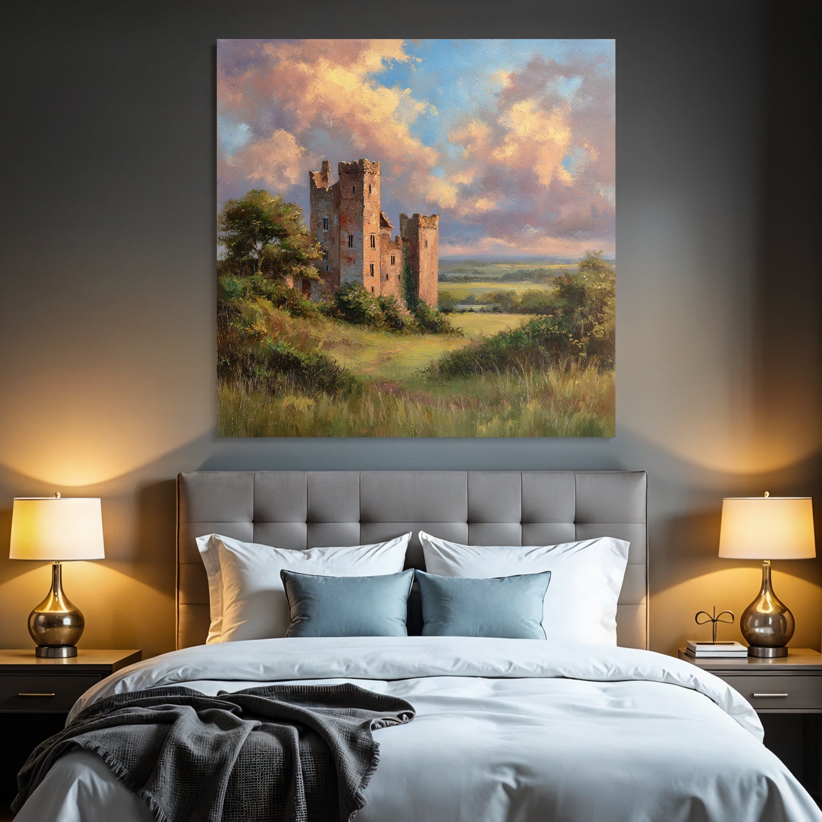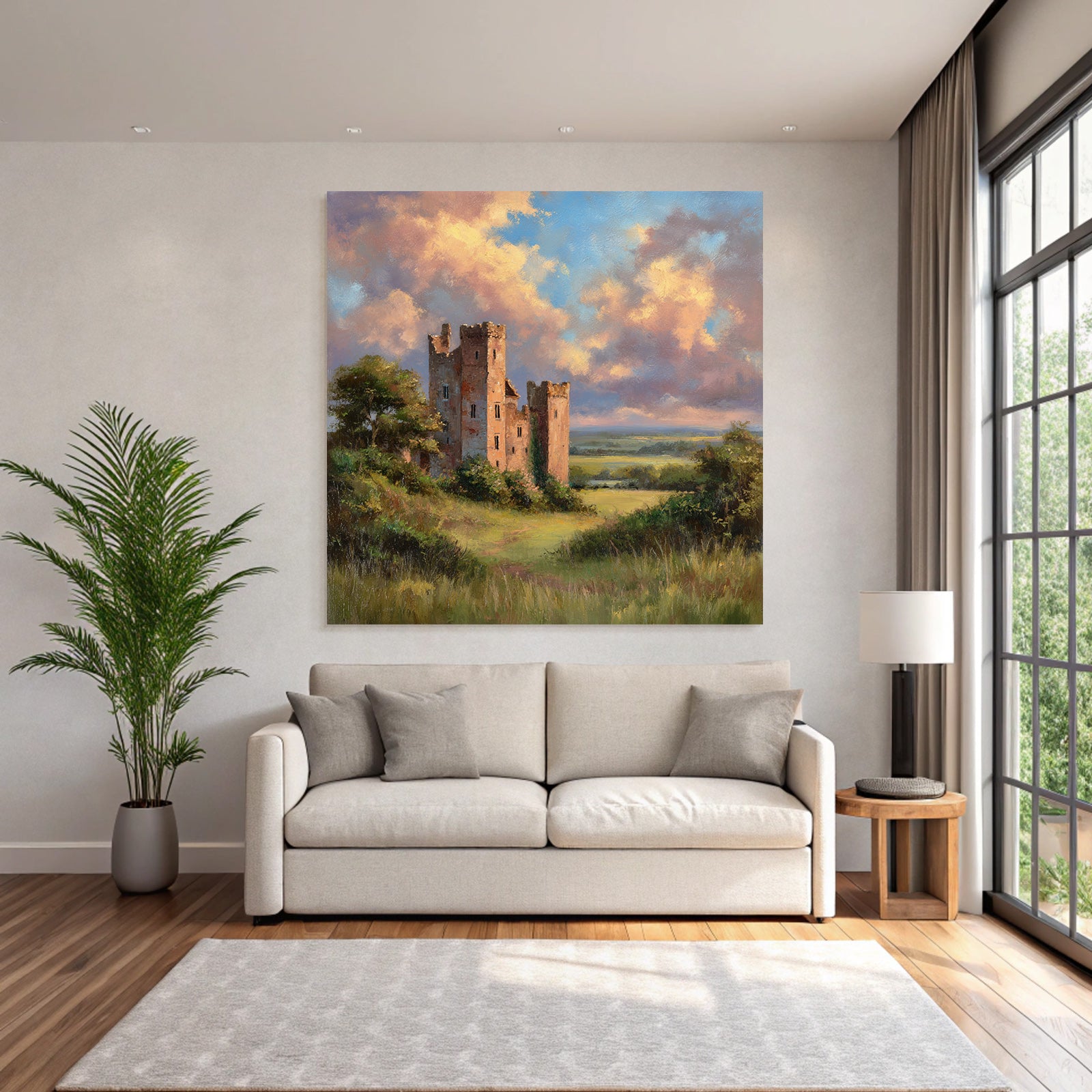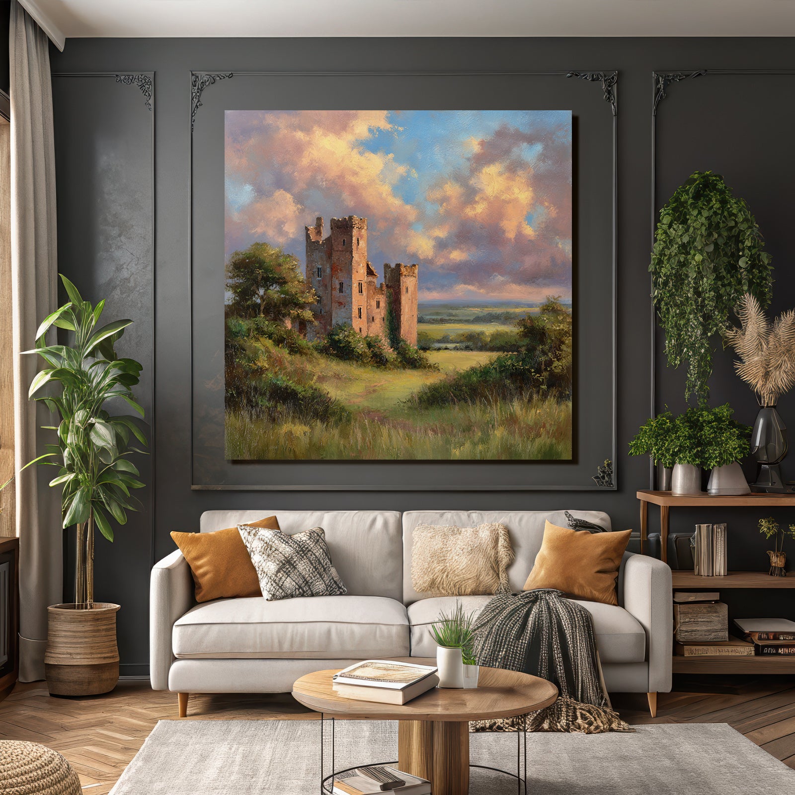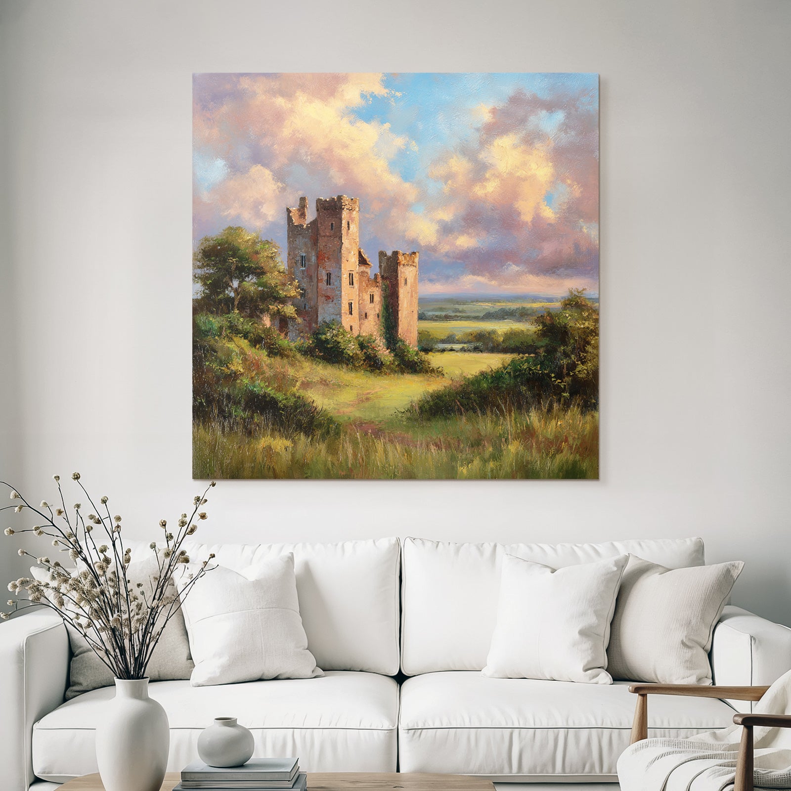 Tauchen Sie ein in die Welt von Himmel und Wolken. Das Motiv „Alte Burgruine In Grüner Landschaft“ ist ein herausragendes Beispiel dieses Stils, das im FameFrame eine besondere Tiefe erhält.