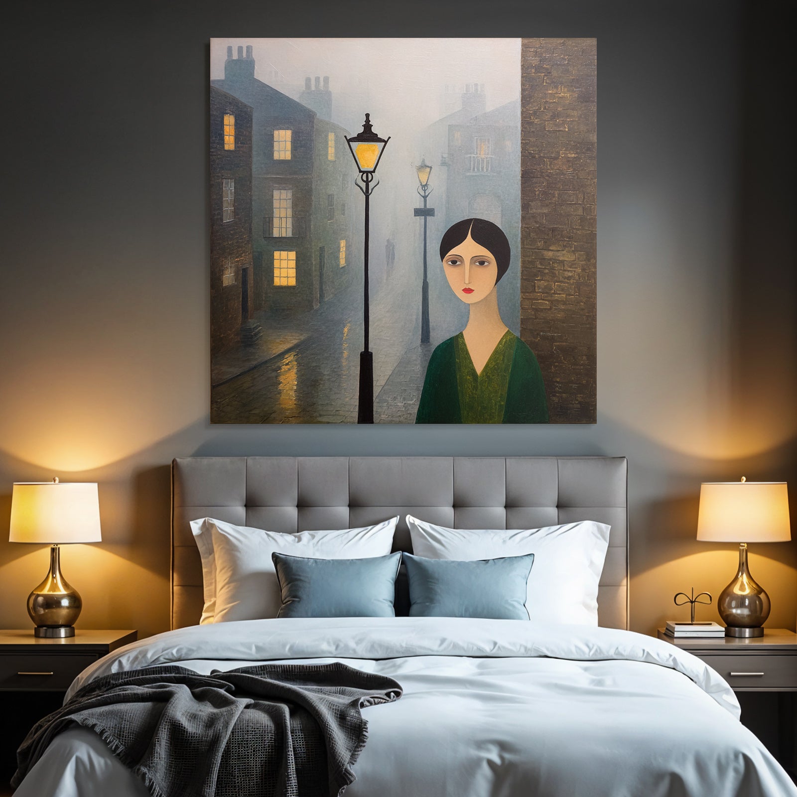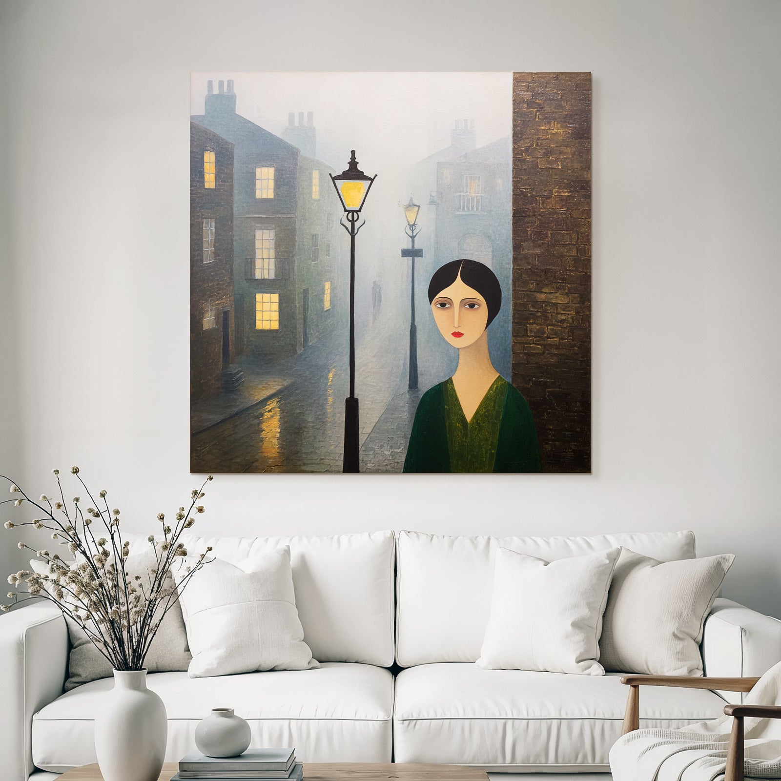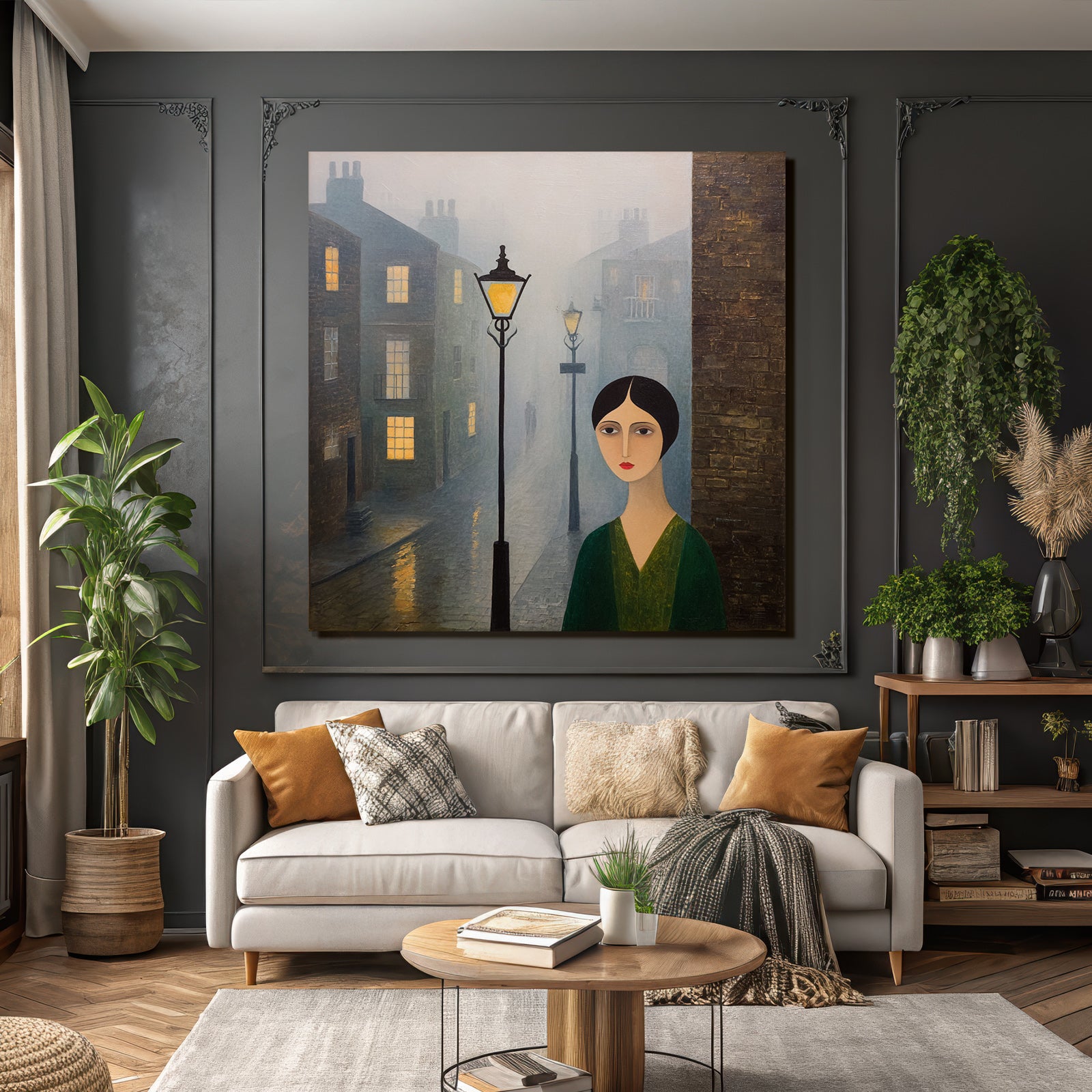 Wenn Sie den Art Deco-Look schätzen, werden Sie „ArtDeco Einsame Figur In Nebliger Strasse“ lieben. Im exklusiven FameFrame™ wird dieses Motiv zum zentralen Element Ihrer Raumgestaltung.