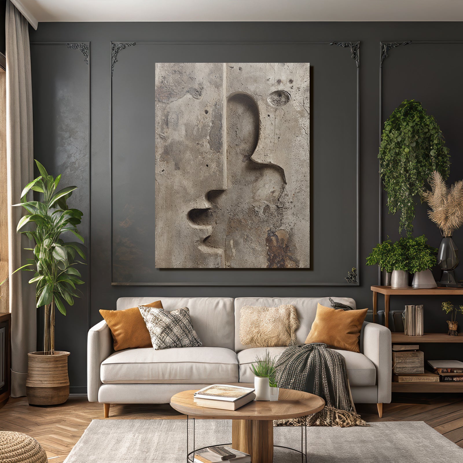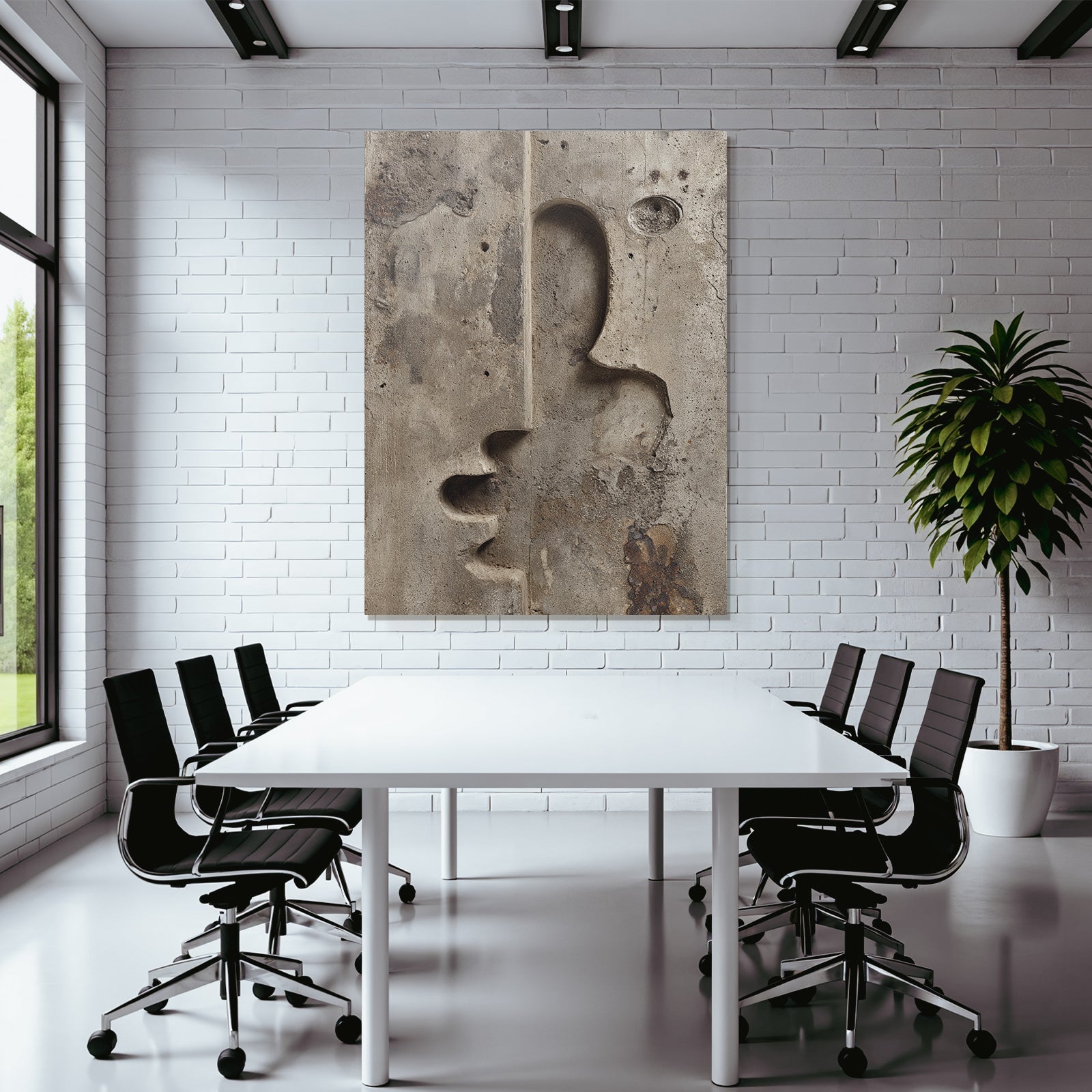 Ideal für Innenräume mit Stil: „„ Betonoberflaeche Gesicht Profil Kunstwirkung““ im Stil Industrial zieht im FameFrame die Blicke auf sich – egal ob Zuhause oder im Geschäft.