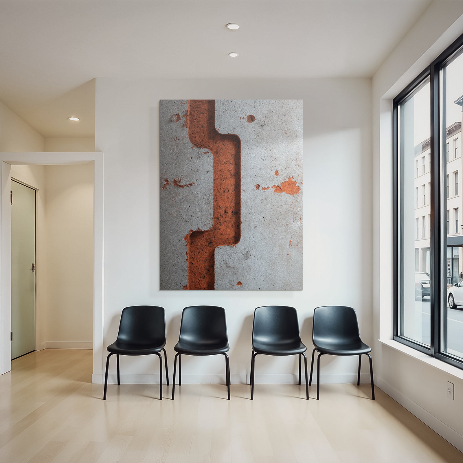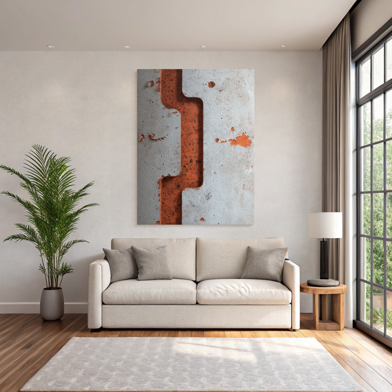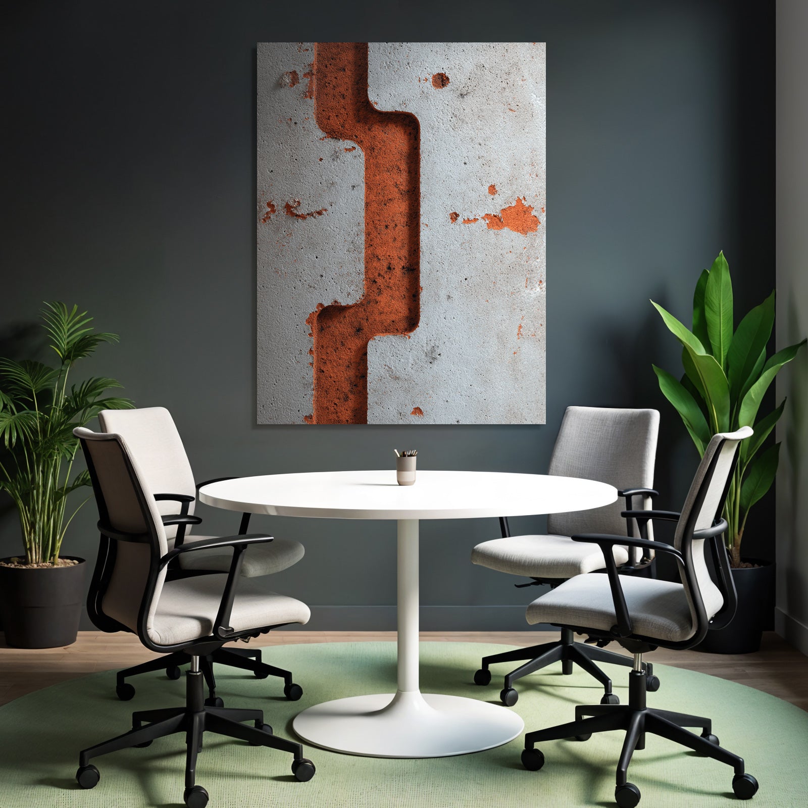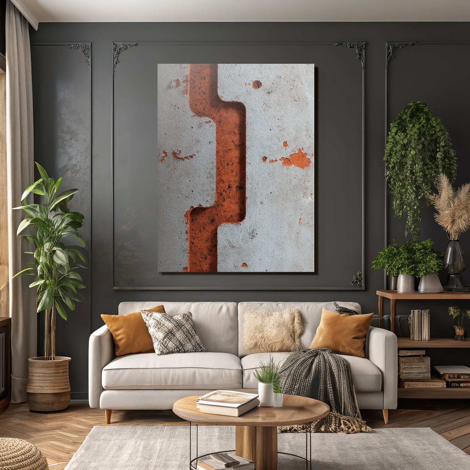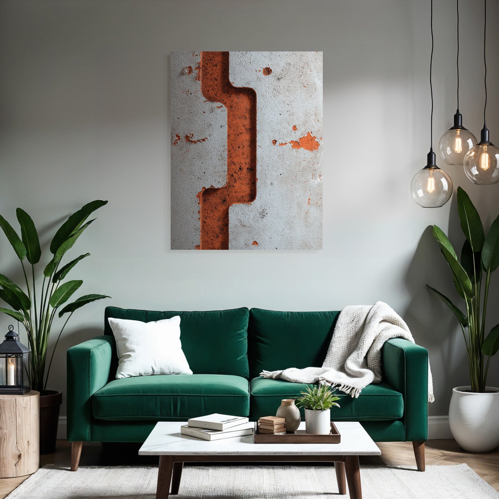 Kunst trifft Design: „„ Betonstruktur Rot““ im Stil Industrial entfaltet im FameFrame seine volle Ausdruckskraft.