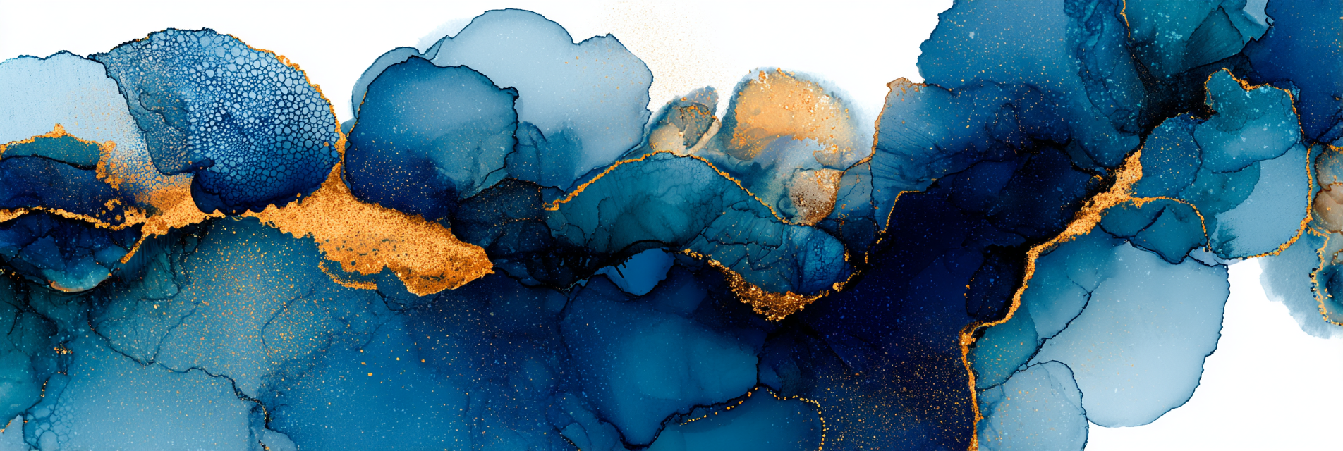 Blaü Und Goldene Farbflusskunst