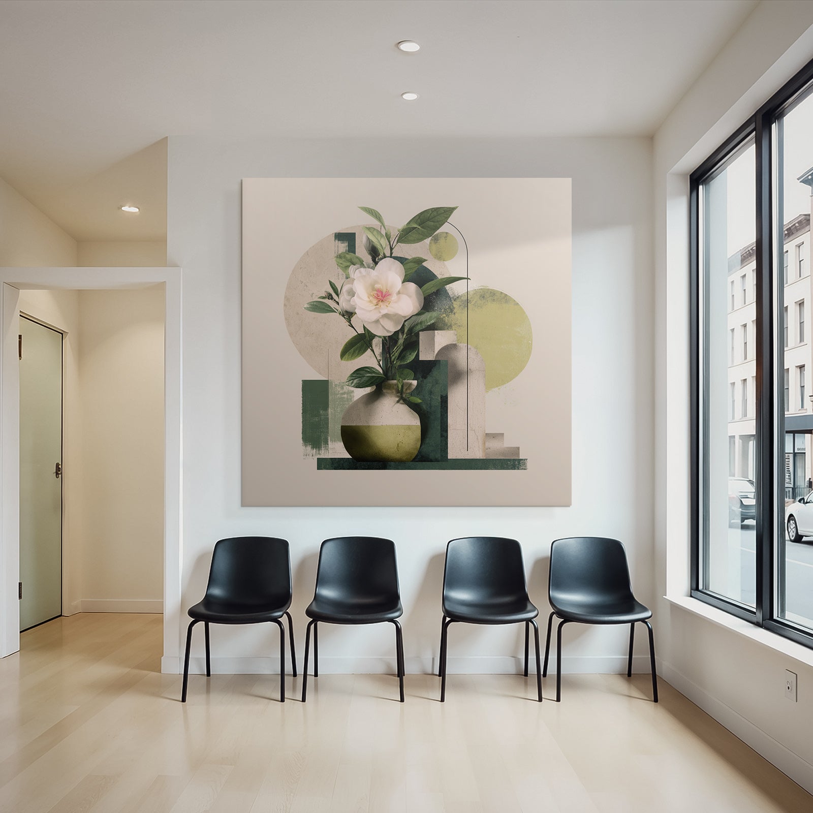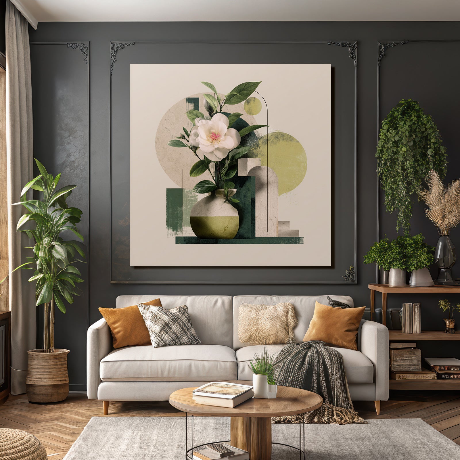Das Motiv „„Blumenvase Geometrische Formen Organische Elemente““ ist ein Highlight der Kollektion Collagen und wird auf Deinem FameFrame brillant in Szene gesetzt.