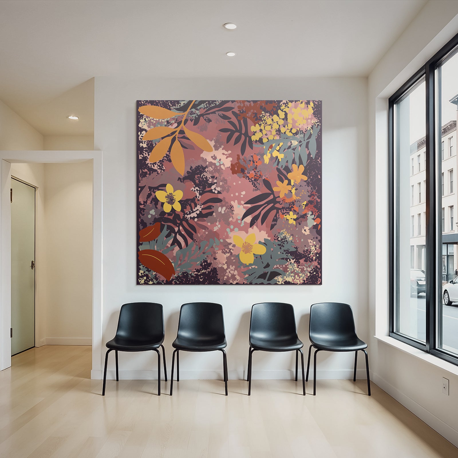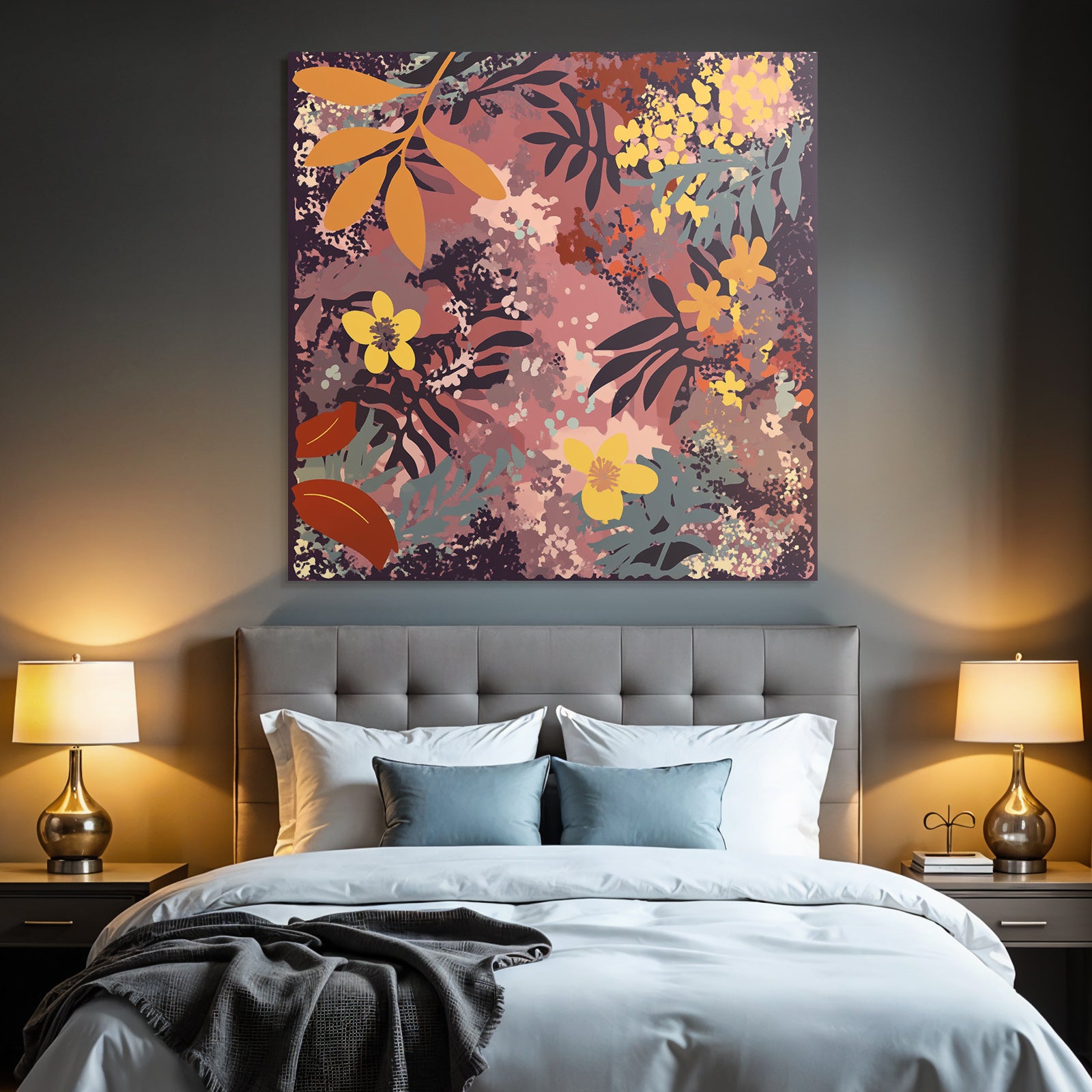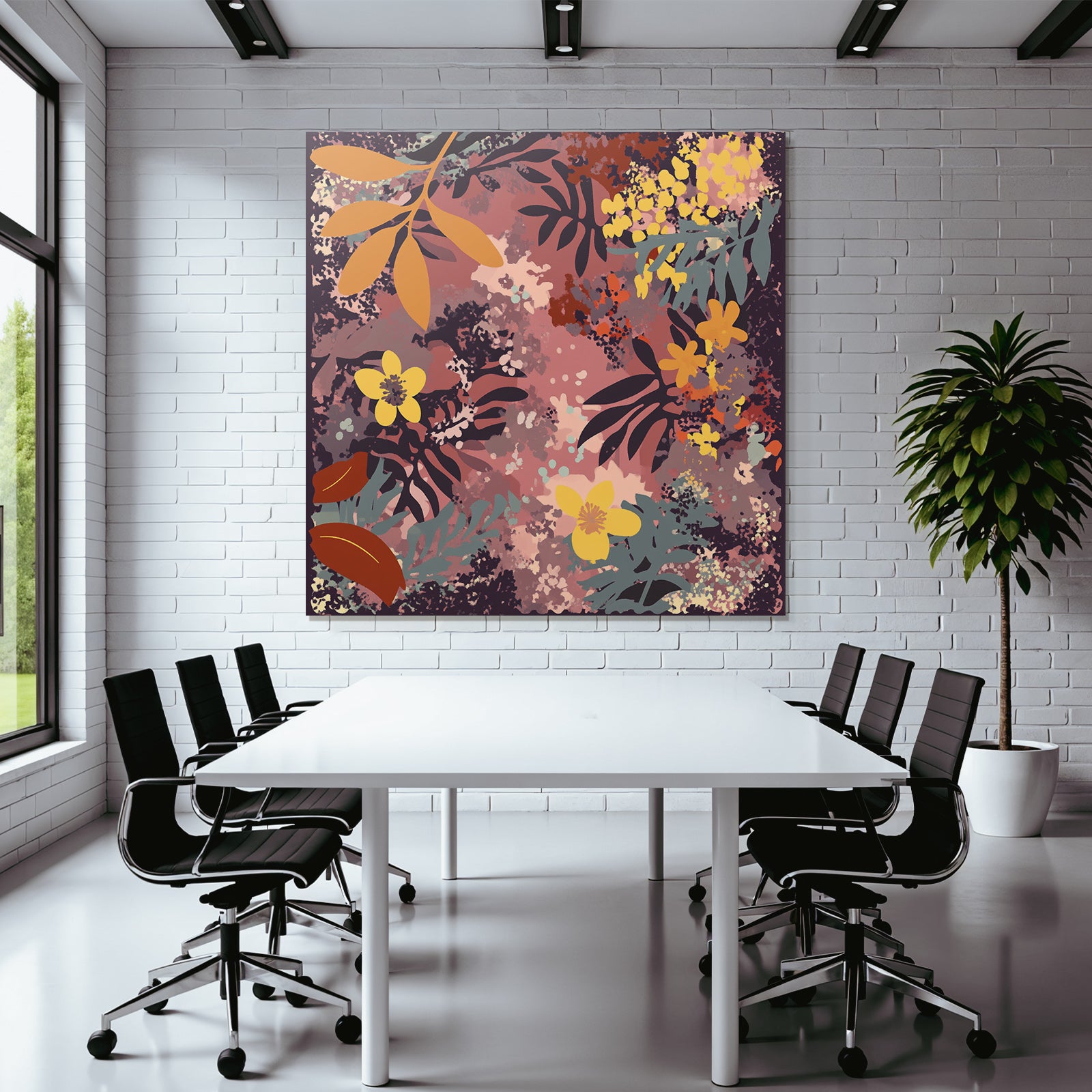 Ob im Wohnzimmer oder Essbereich – das Werk „„Blumige Muster Mit Blatter Und Blumen““ im Stil Boho Eklektisch wird im FameFrame zum stilvollen Blickfang.