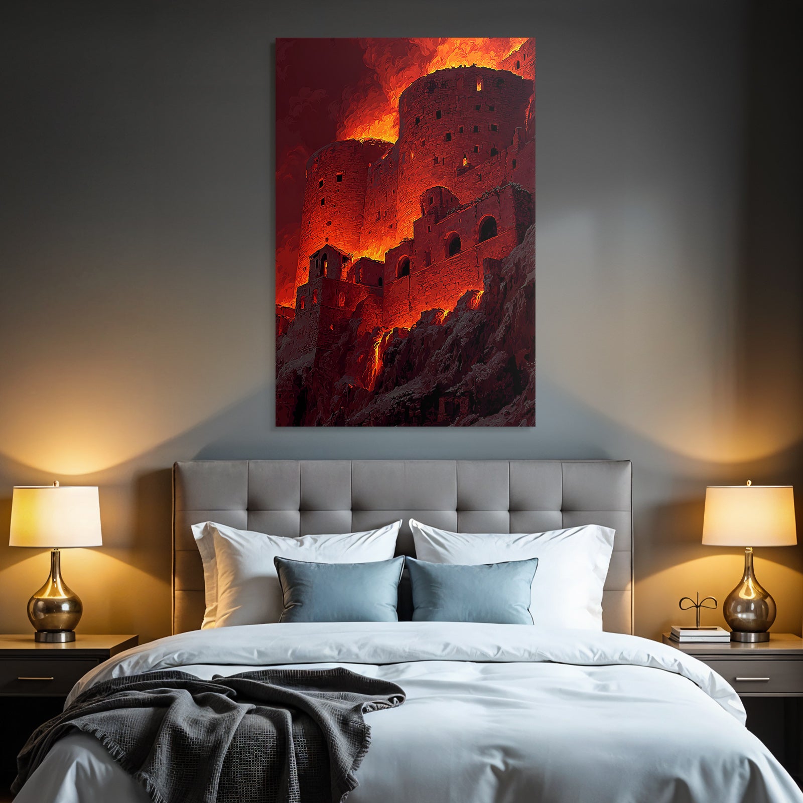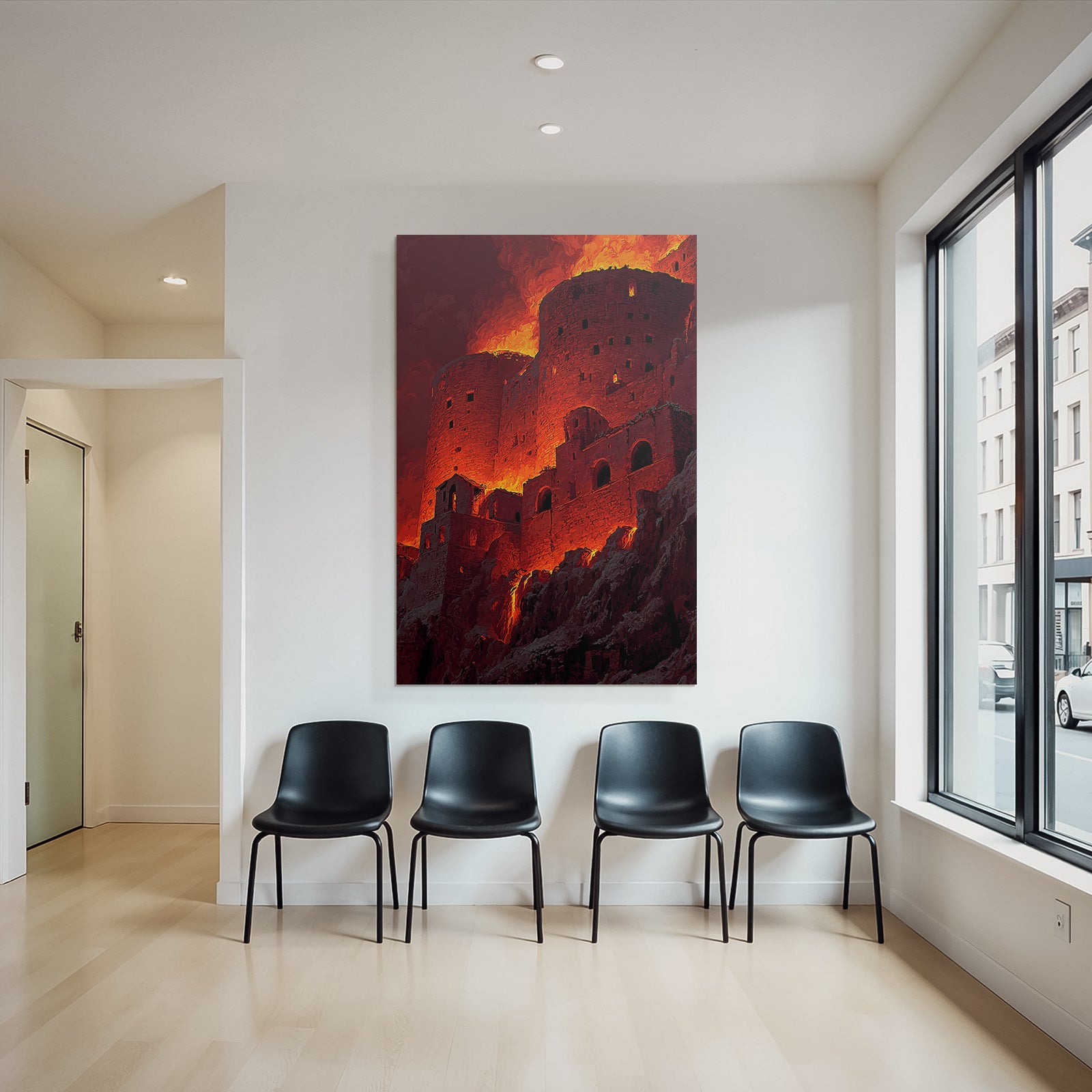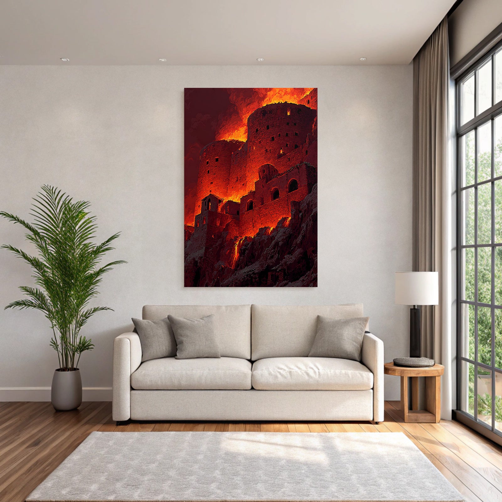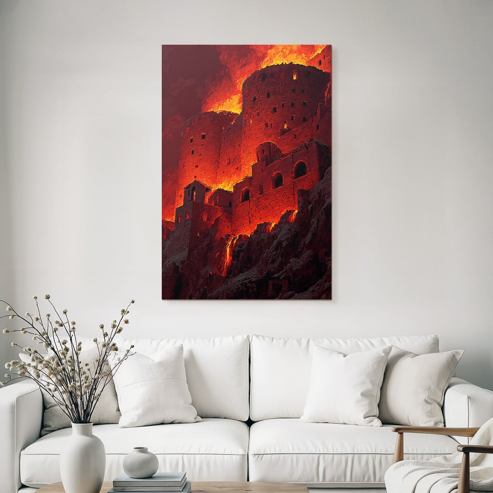 „Brennende Burg Am Vulkan“ – ein Motiv, das begeistert. Inspiriert vom Stil Feuer und Vulkane, setzt dieses Werk im edlen FameFrame einen unverwechselbaren Akzent in Ihren Räumen.