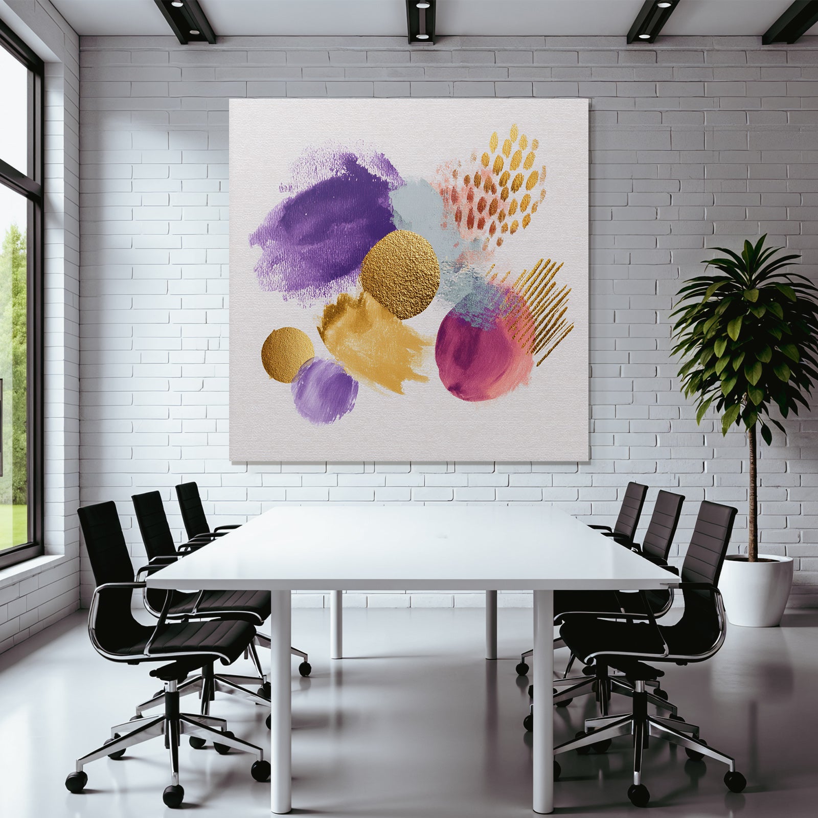 Mit dem Werk „Bunte Abstrakte Kunst Moderner Ästhetik“ im Stil Kunstdrucke gestaltest Du Dein Wartezimmer oder Deine Hotel-Lobby eindrucksvoll und modern – auf Stoff im FameFrame.