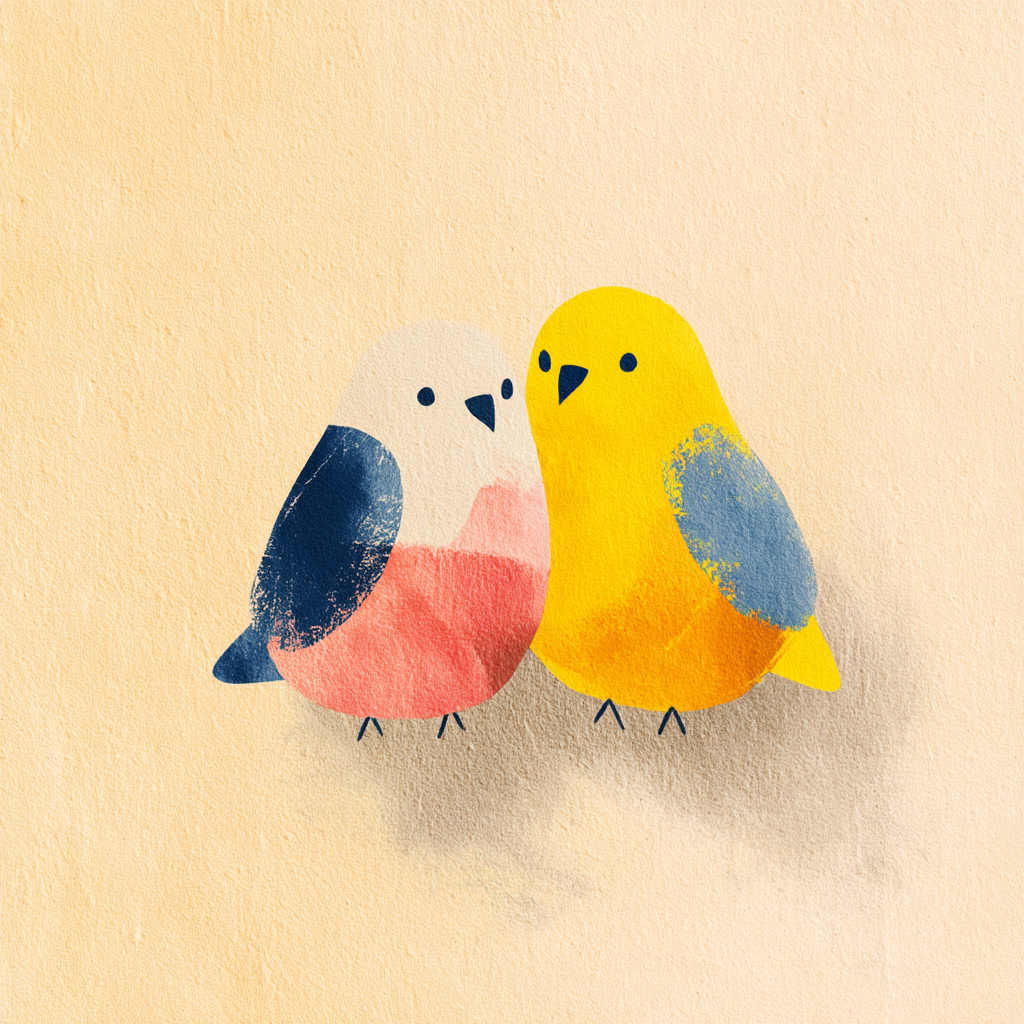 Ein Stück Skandinavisch für Deine vier Wände: Das Werk „„Bunte Voegel Auf Strukturiertem Hintergrund““ im hochwertigen FameFrame bringt kreative Energie in jeden Raum.