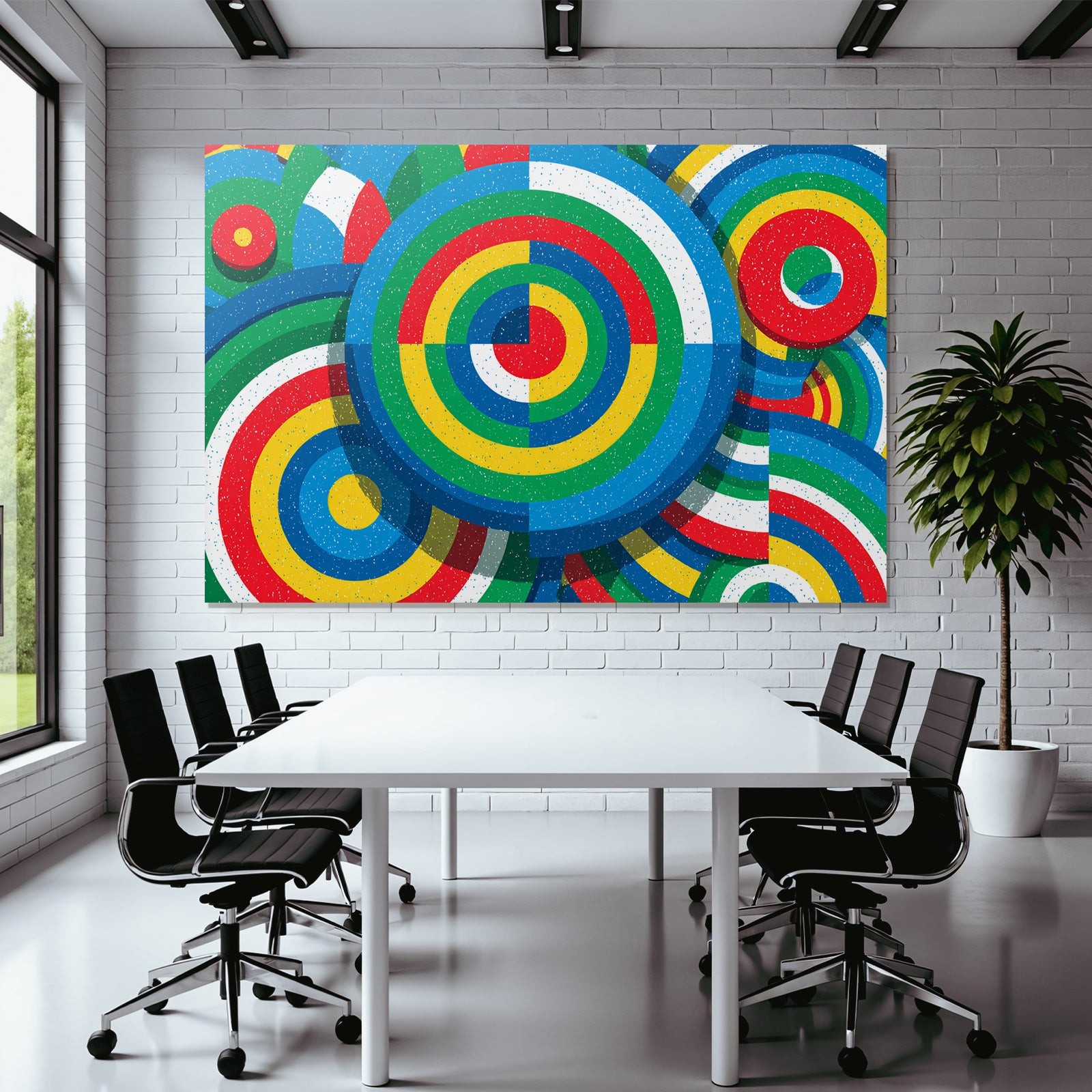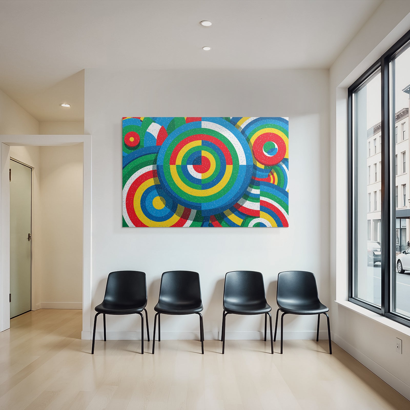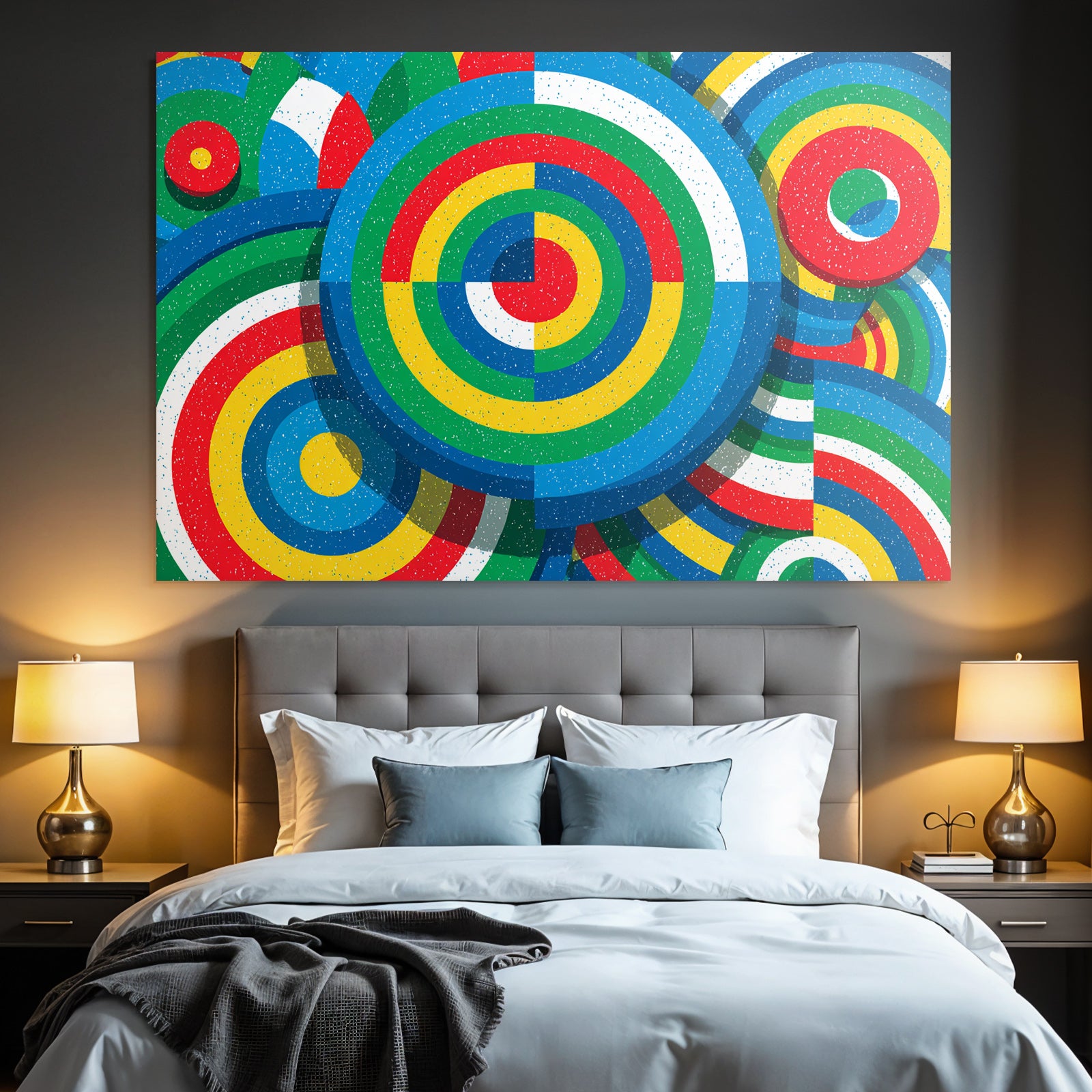 „Bunter Abstrakter Hintergrund Mit Kreisförmigen Mustern“ ist das Highlight für jede Wand. Als brillanter Textildruck im Stil Bauhaus wird es im FameFrame™ zu einem dynamischen und wandelbaren Kunstobjekt.