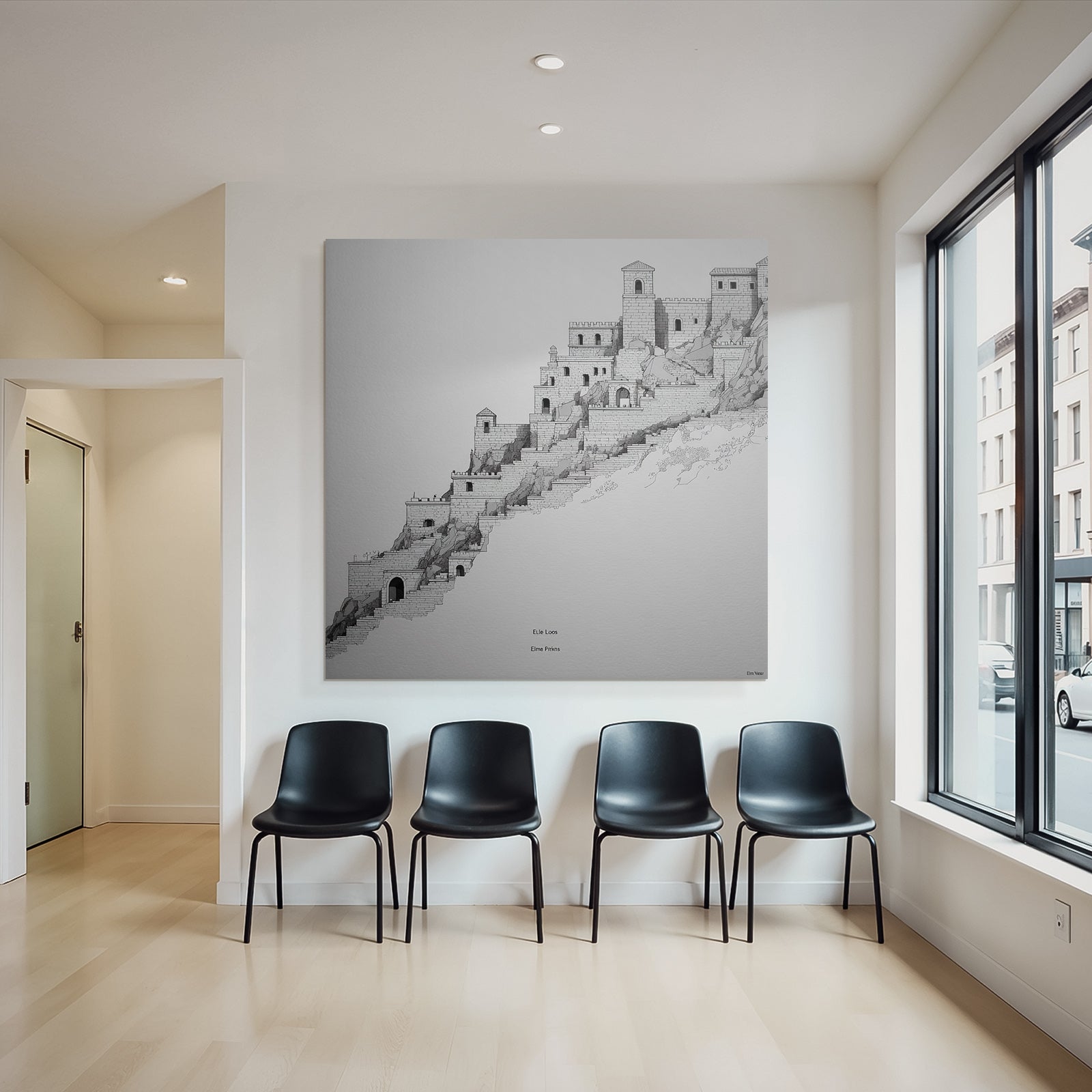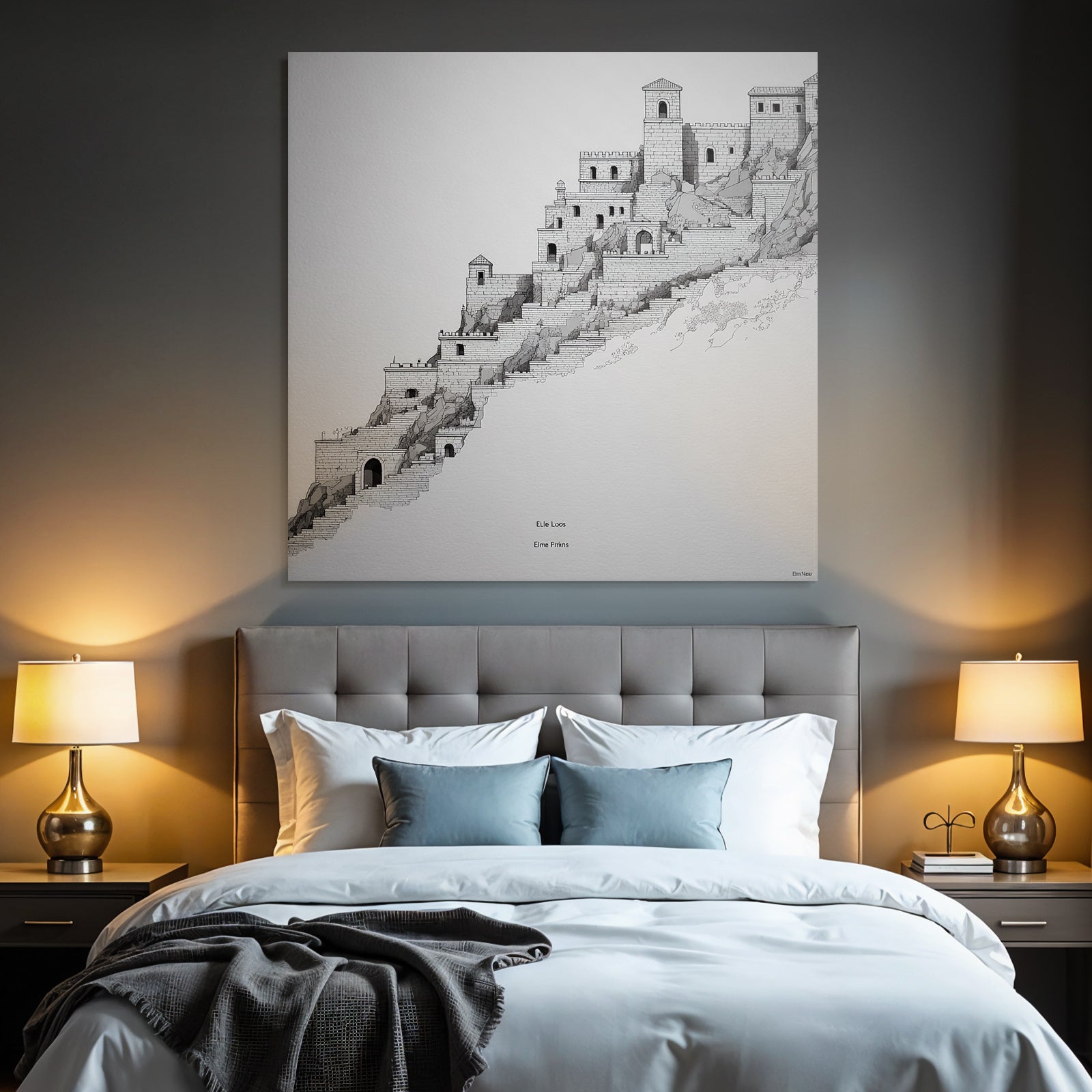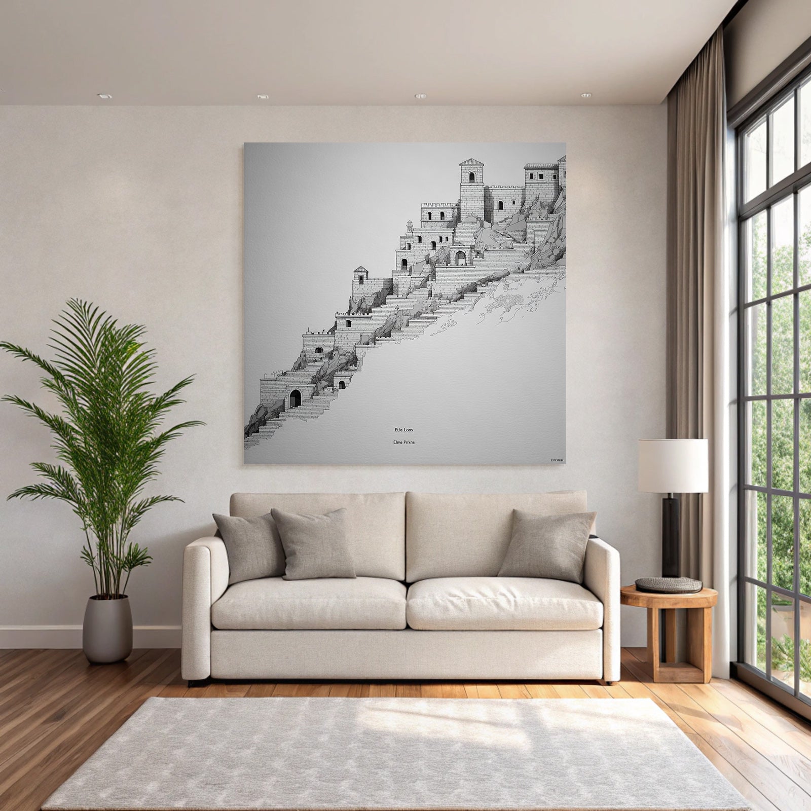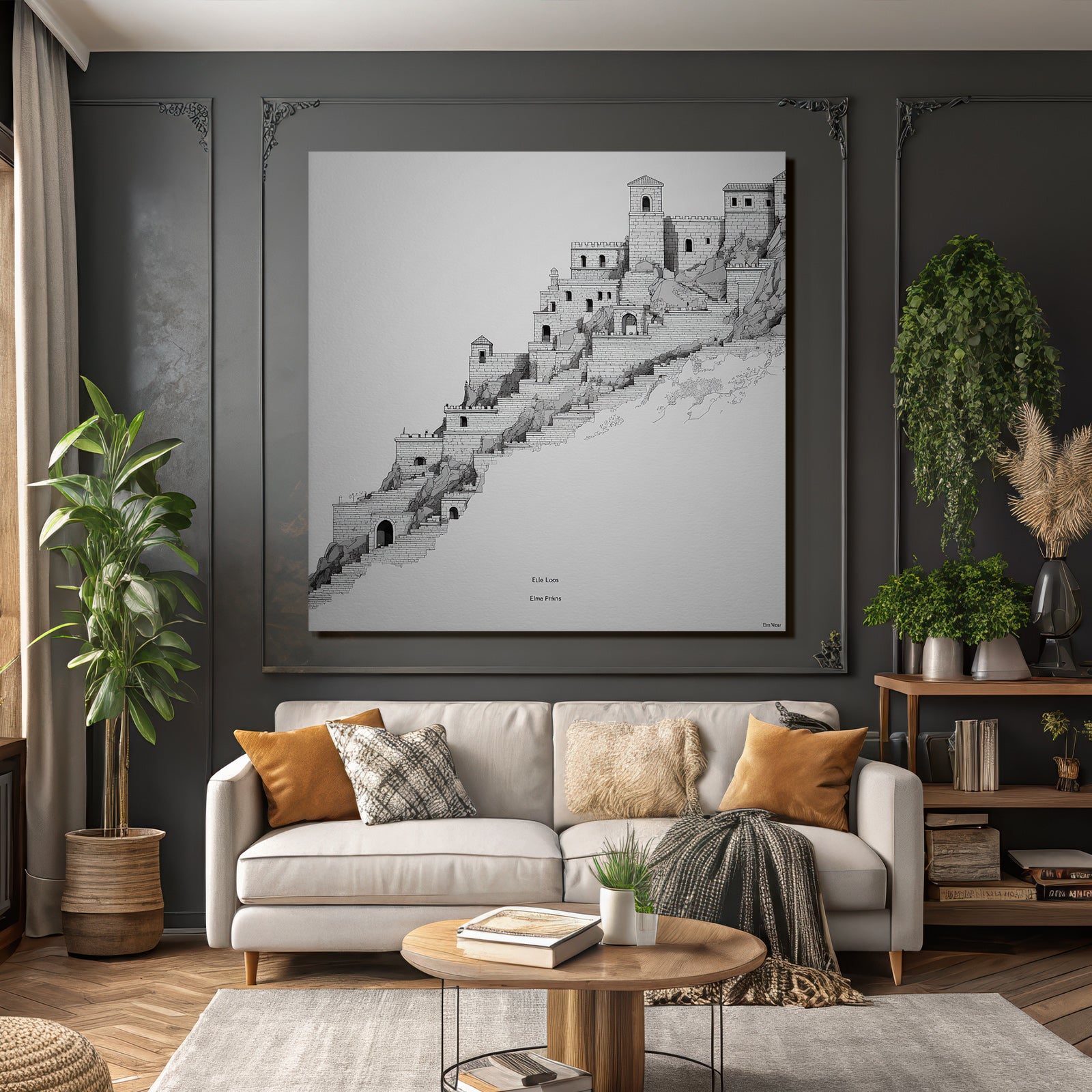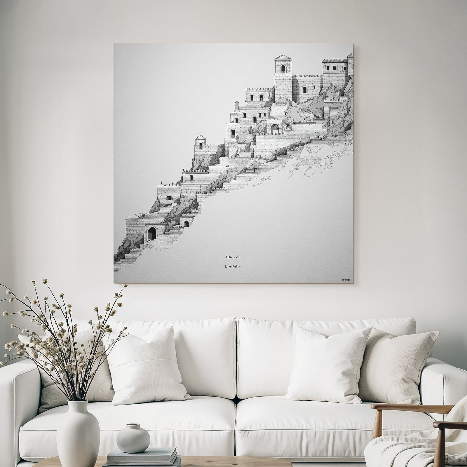 Erlebe Kunst im Stil Minimalistisch neu: „Burg Auf Steinigem Hang“ wird durch den eleganten FameFrame™ zum Blickfang in jedem Raum.