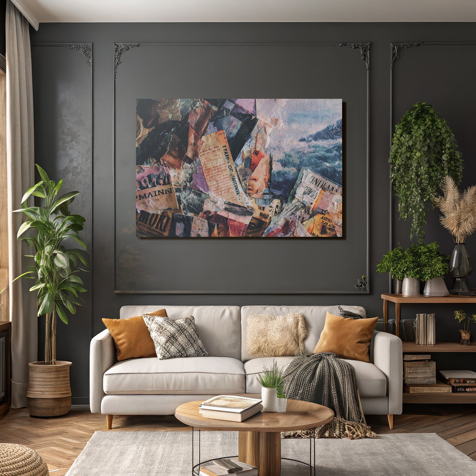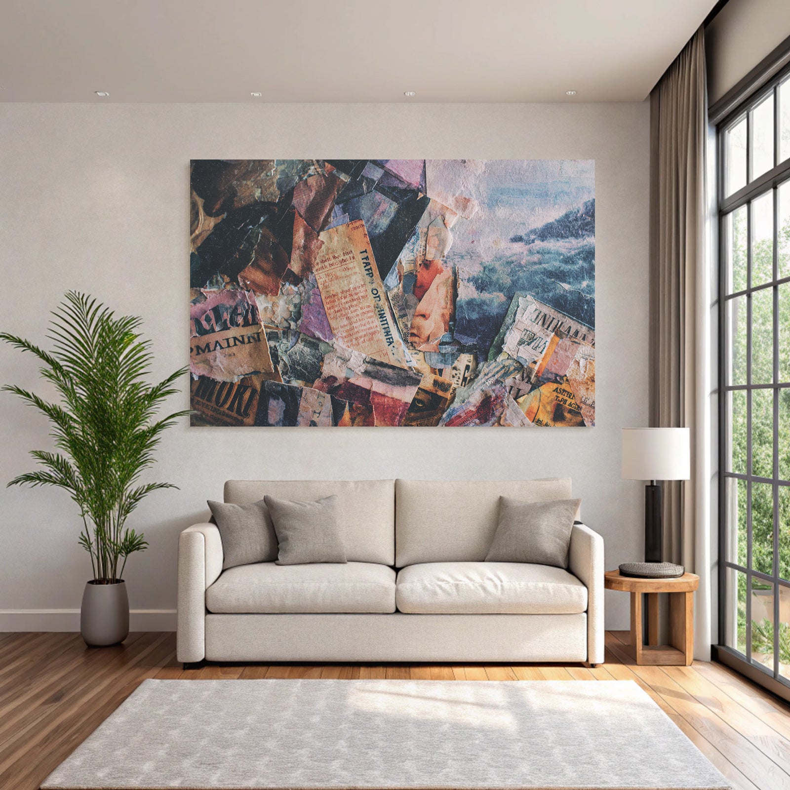 Kunst trifft Design: „Collage Aus Papiertexturen Und Magazinausschnitten“ im Stil Dadaismus entfaltet im FameFrame™ seine volle Ausdruckskraft.