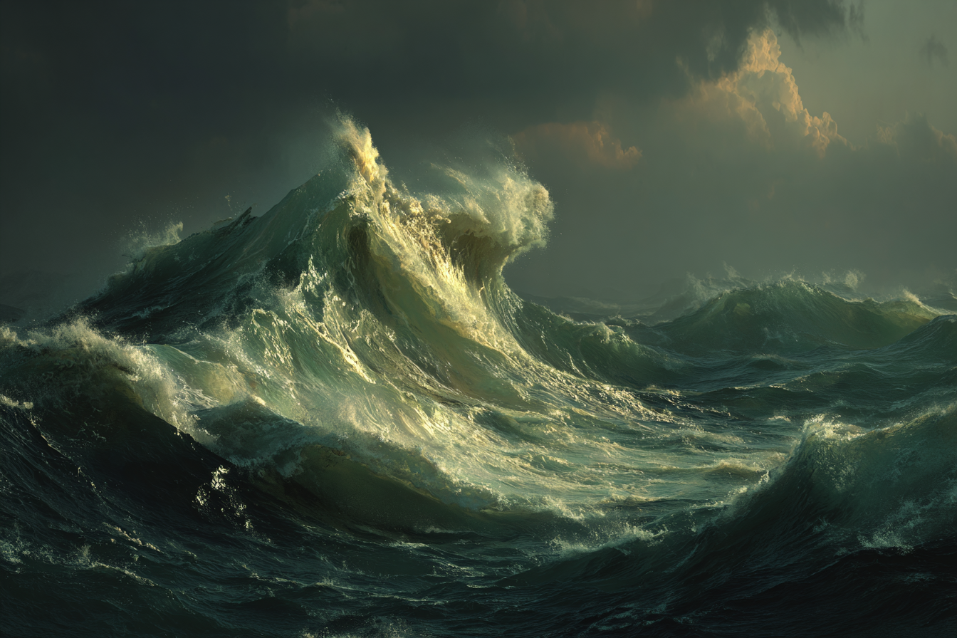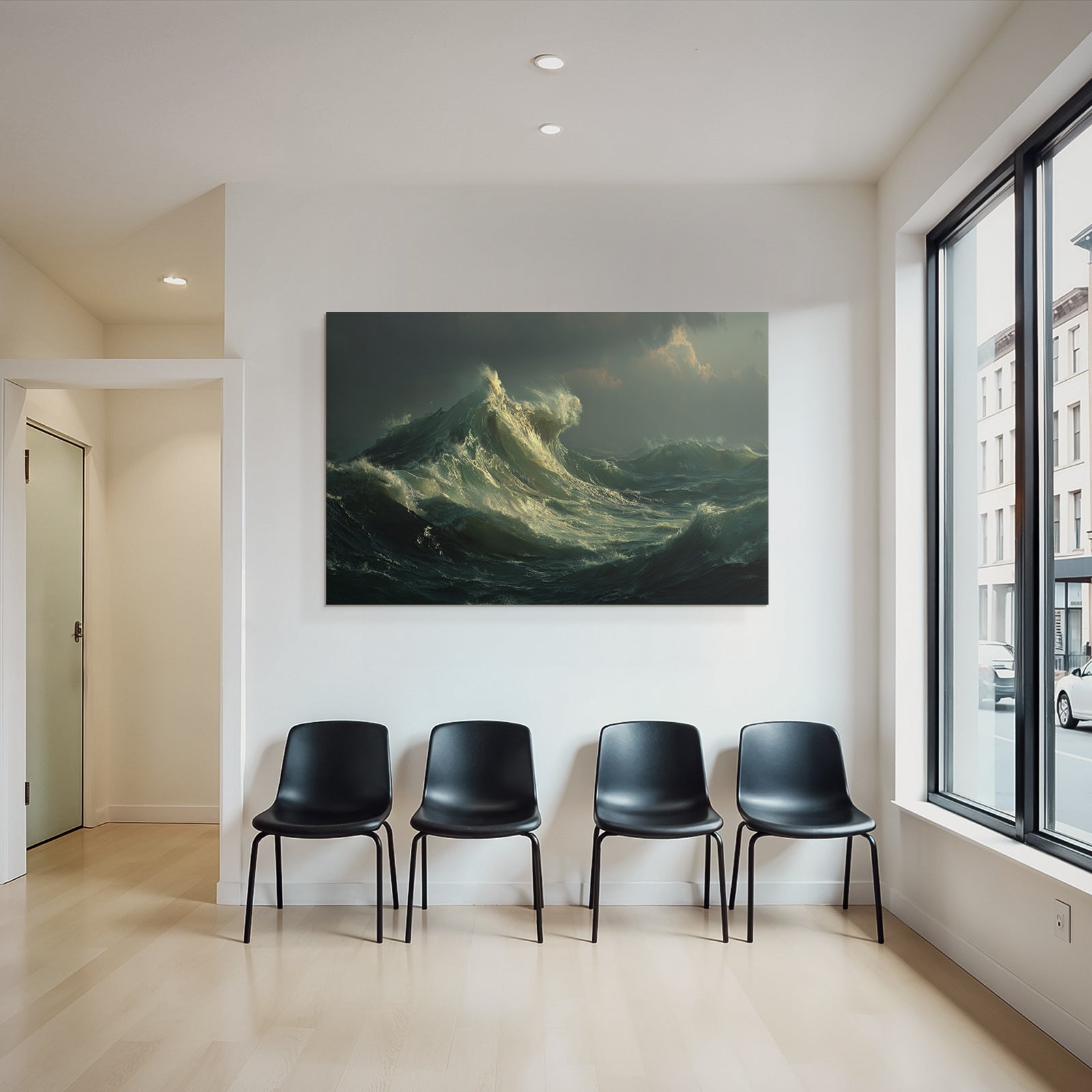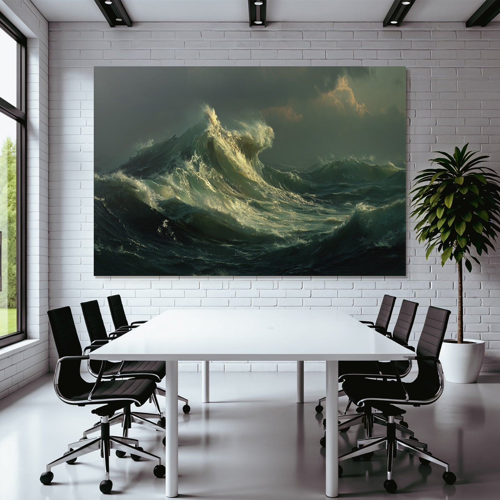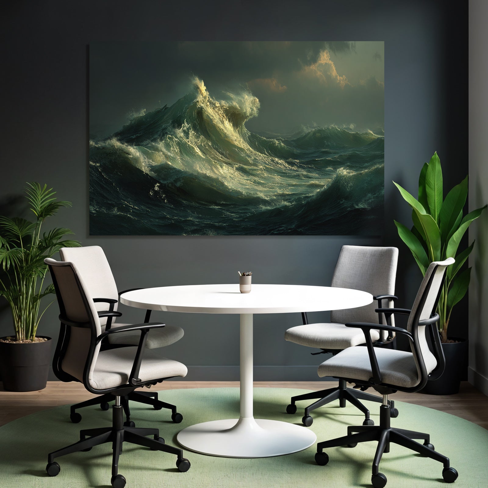 Kunst trifft Design: „Dramatische Ozeanwellen Im Sturm“ im Stil Nahaufnahmen entfaltet im FameFrame seine volle Ausdruckskraft.