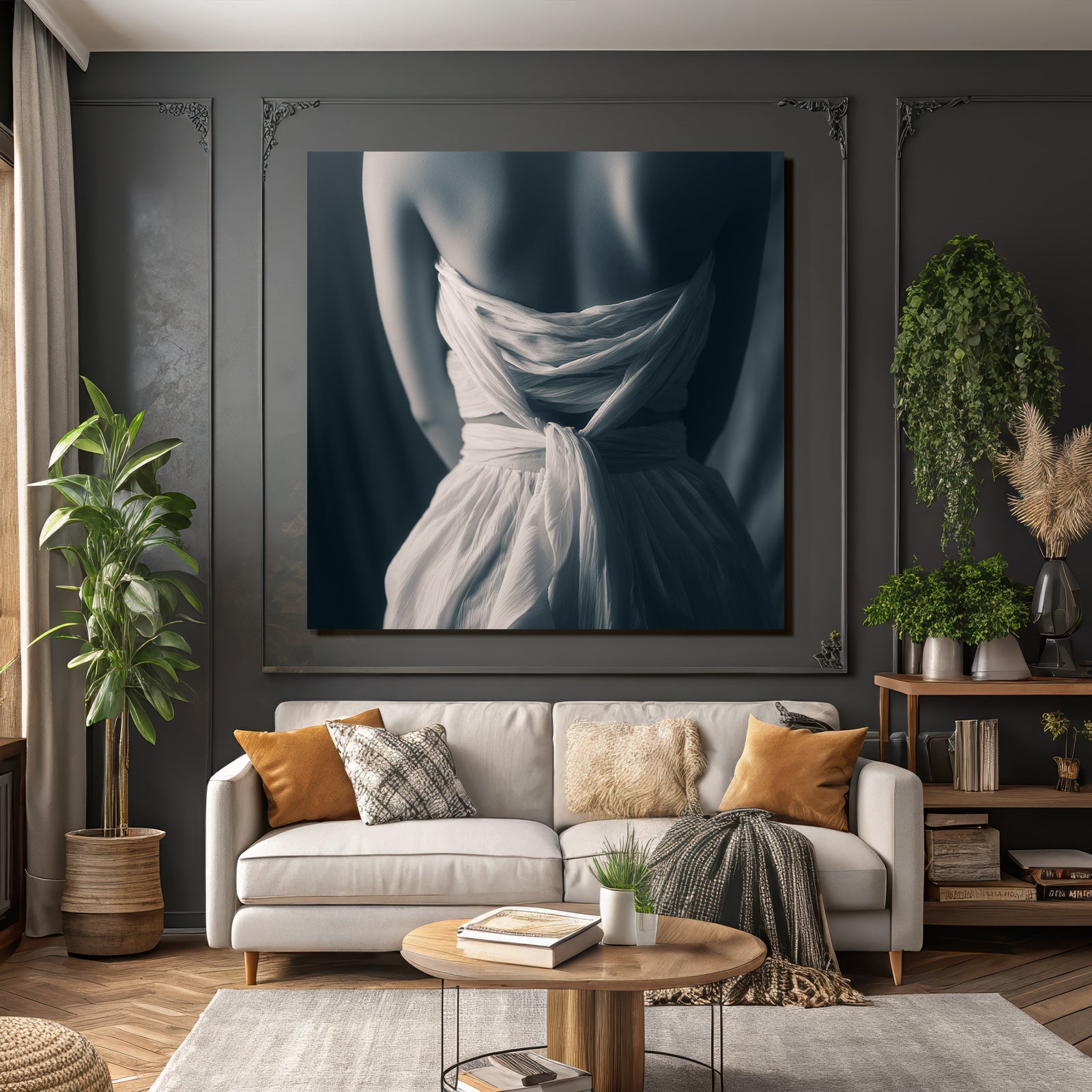Der Stil Aktkunst und Sinnlichkeit, neu interpretiert. Mit „Fliessendes Gewebtes Gemälde Eleganz Und Schlichtheit“ holen Sie sich ein Kunstwerk nach Hause, das im eleganten FameFrame™ seine volle ästhetische Kraft entfaltet.