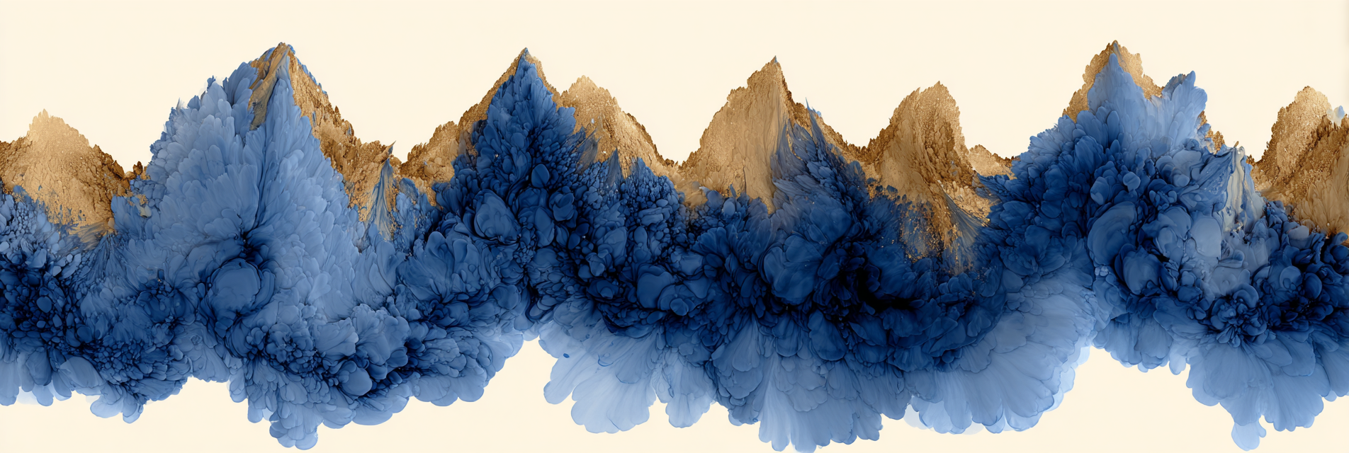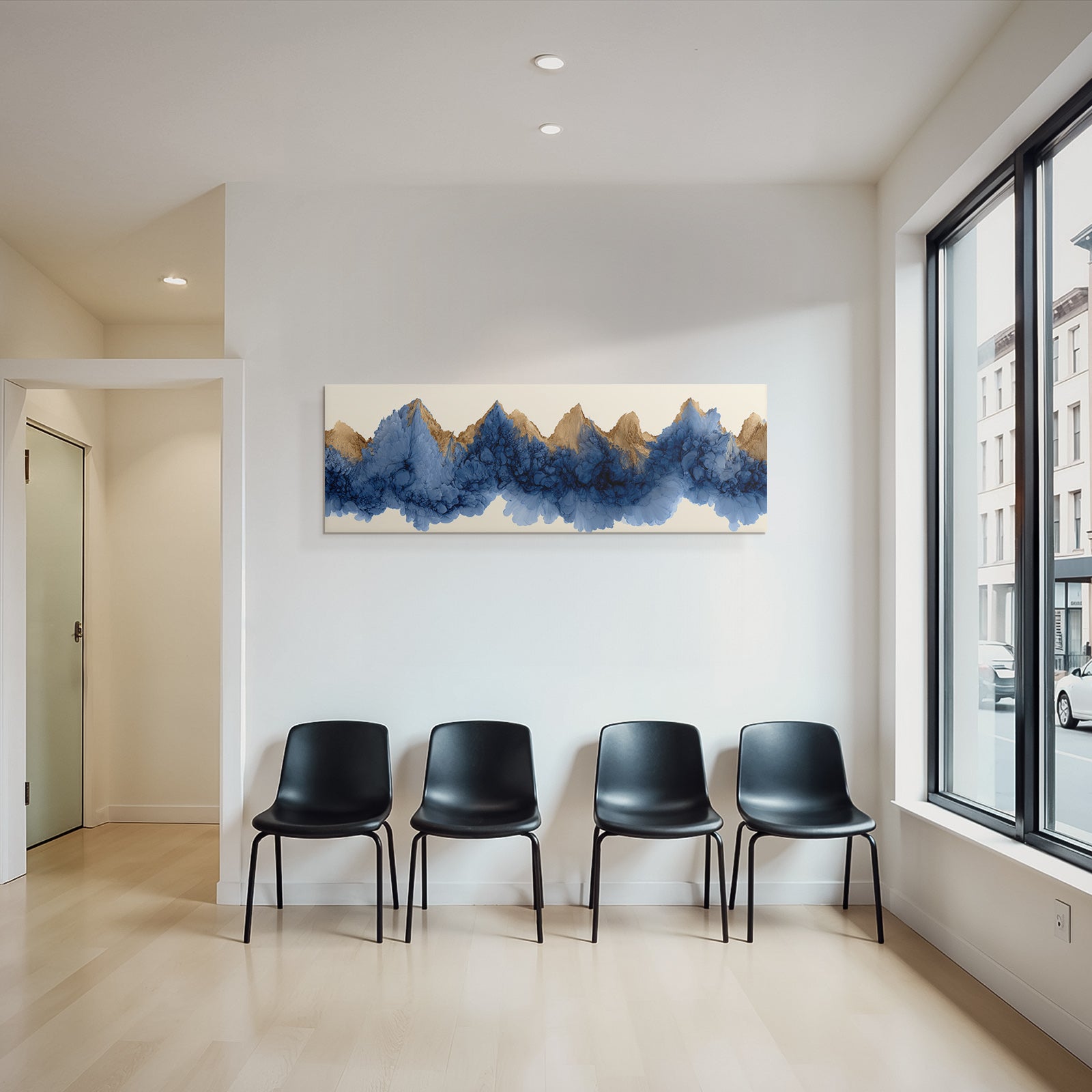 Gestalten Sie Ihr Homeoffice oder Büro inspirierend und modern. „Fluiddynamik Und Berglandschaft“ im Abstrakt-Look sorgt im FameFrame für eine kreative Arbeitsatmosphäre.