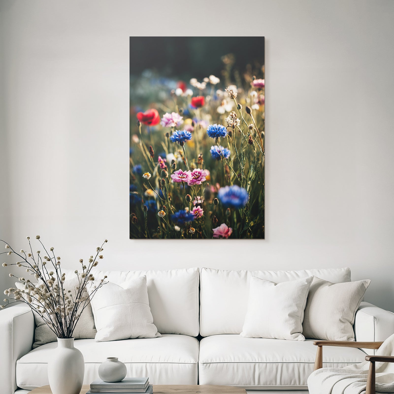 Der Stil Mohn Pusteblume Kornblume, neu interpretiert. Mit „Frühlingswiese Mit Bunten Wilden Blüten“ holen Sie sich ein Kunstwerk nach Hause, das im eleganten FameFrame seine volle ästhetische Kraft entfaltet.