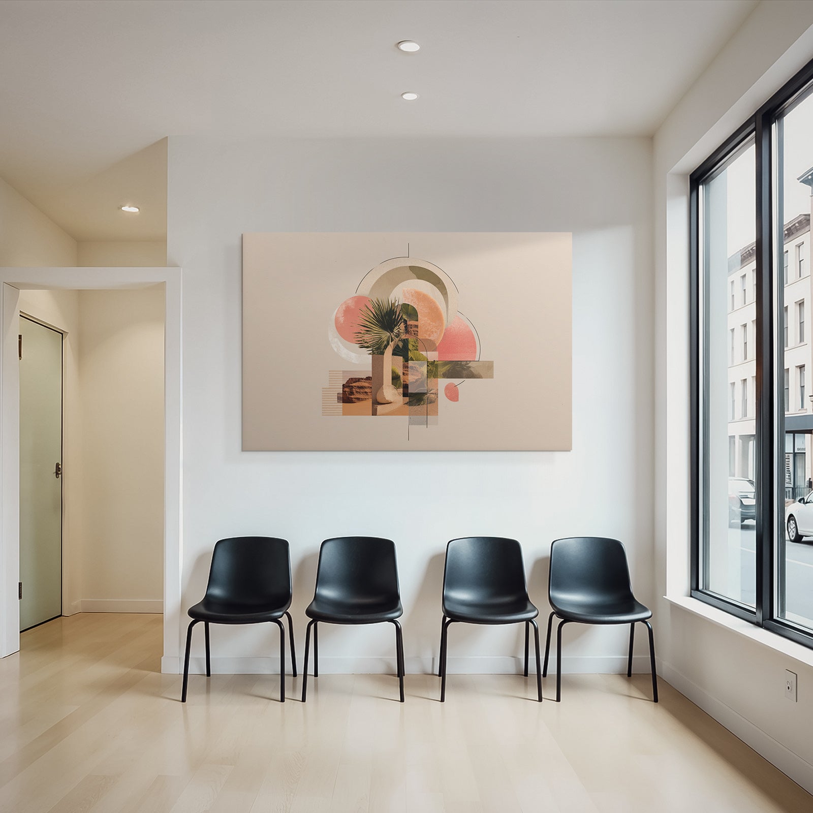 Erlebe Kunst im Stil Collagen neu: „„Geometrische Muster Natur Elemente Digitales Kunstwerk““ wird durch den eleganten FameFrame zum Blickfang in jedem Raum.