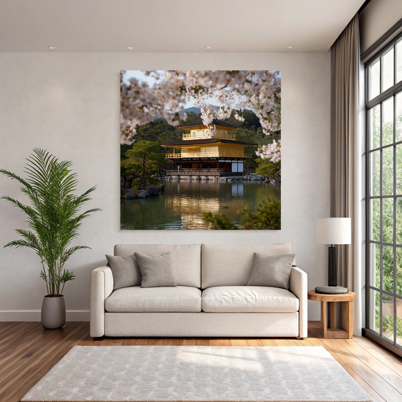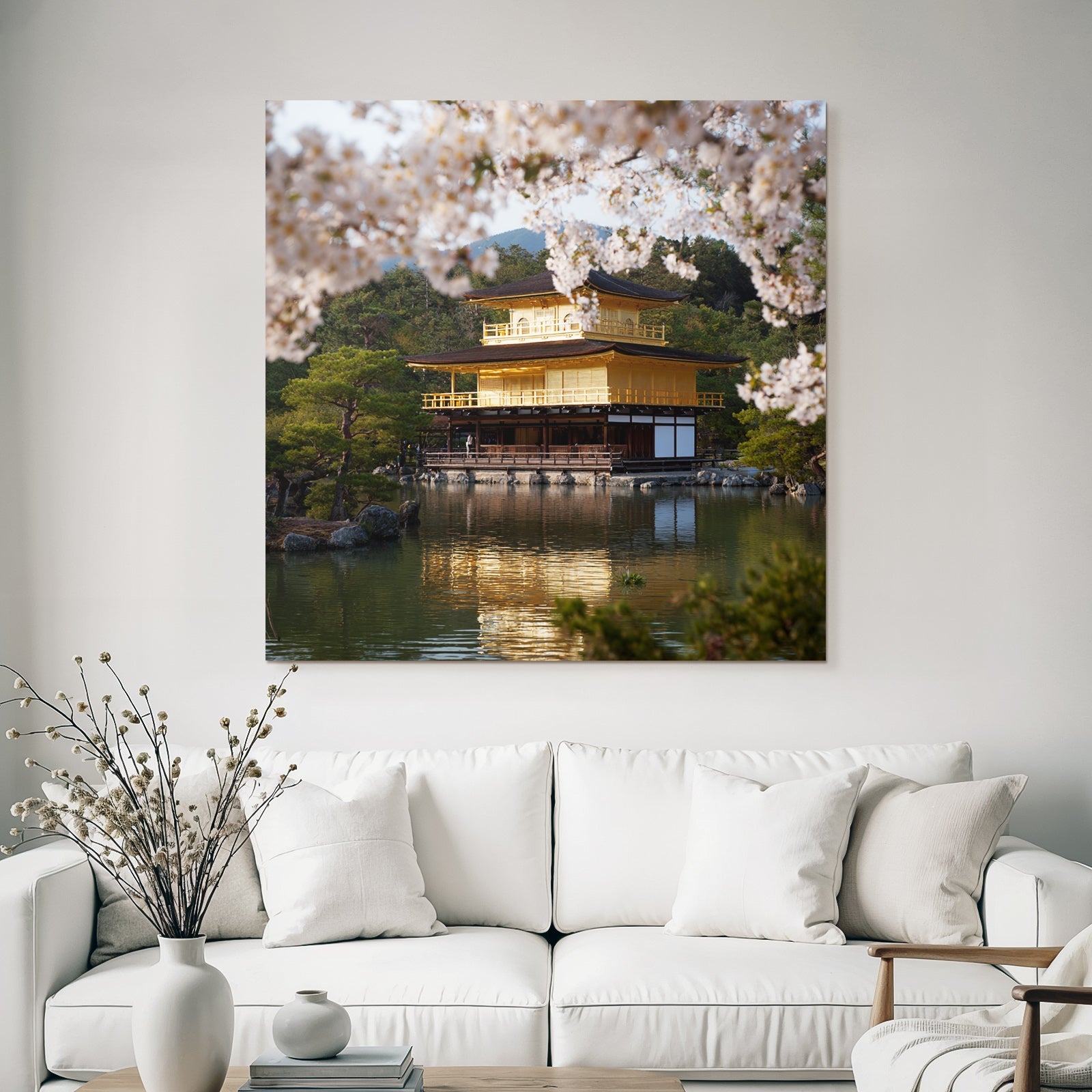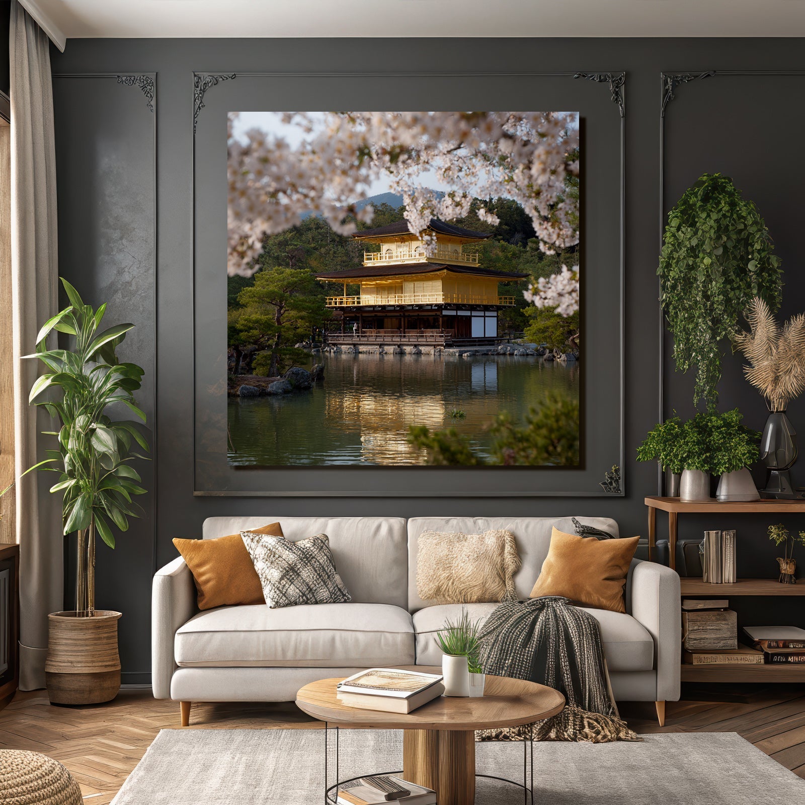 „Goldener Pavillon Im Frühling“ – ein Motiv, das begeistert. Inspiriert vom Stil Asien, setzt dieses Werk im edlen FameFrame einen unverwechselbaren Akzent in Ihren Räumen.