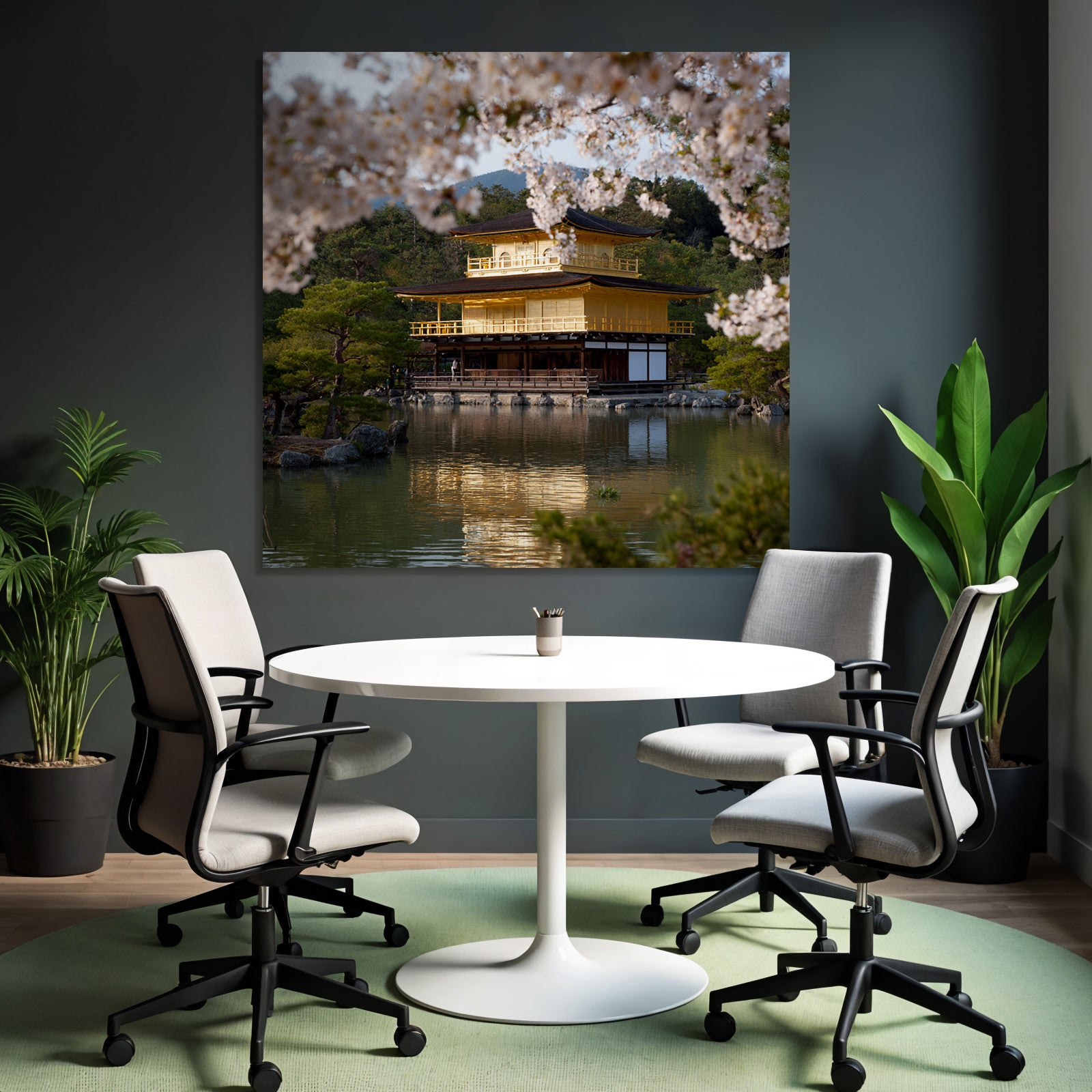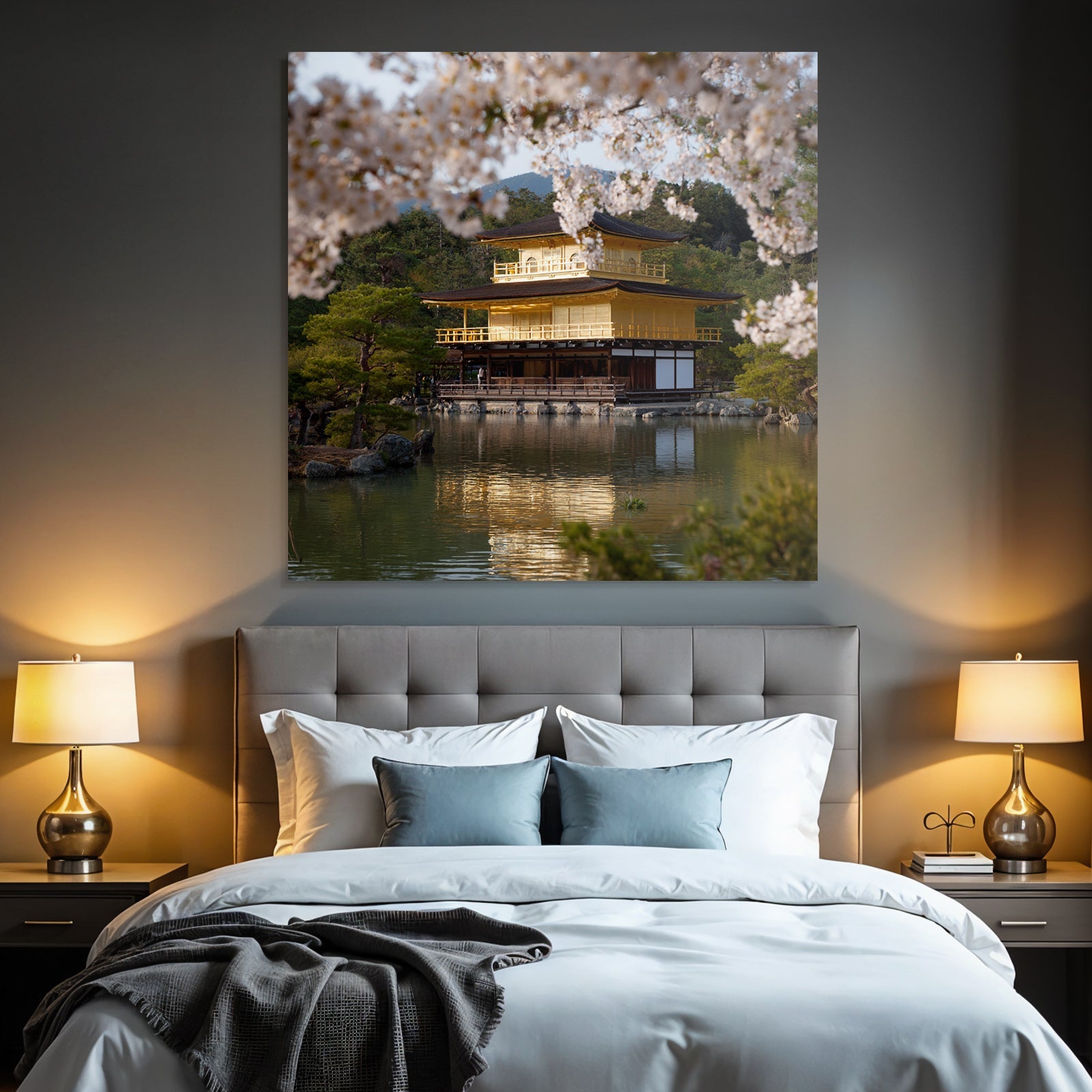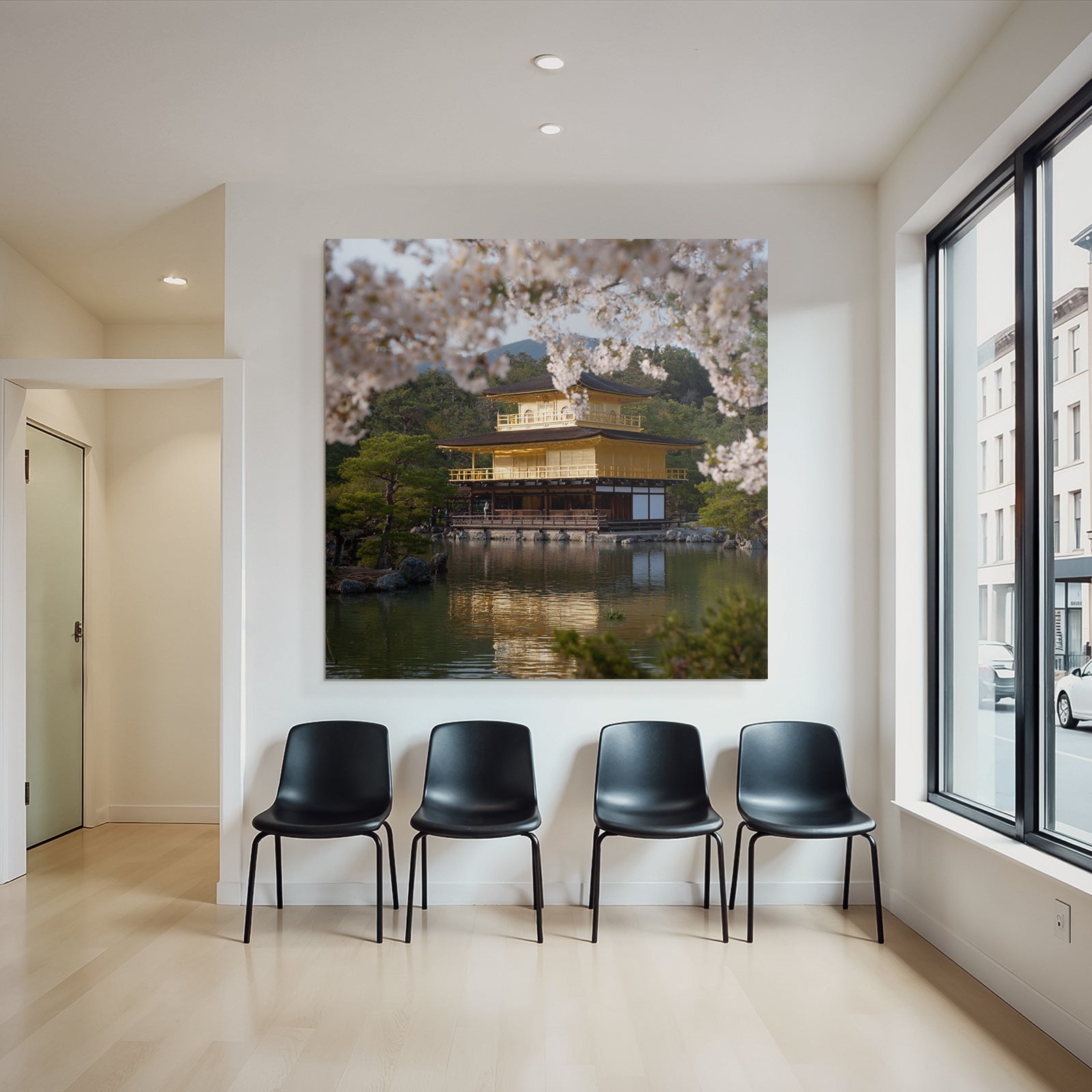 „Goldener Pavillon Im Frühling“ – ein Motiv, das begeistert. Inspiriert vom Stil Asien, setzt dieses Werk im edlen FameFrame einen unverwechselbaren Akzent in Ihren Räumen.