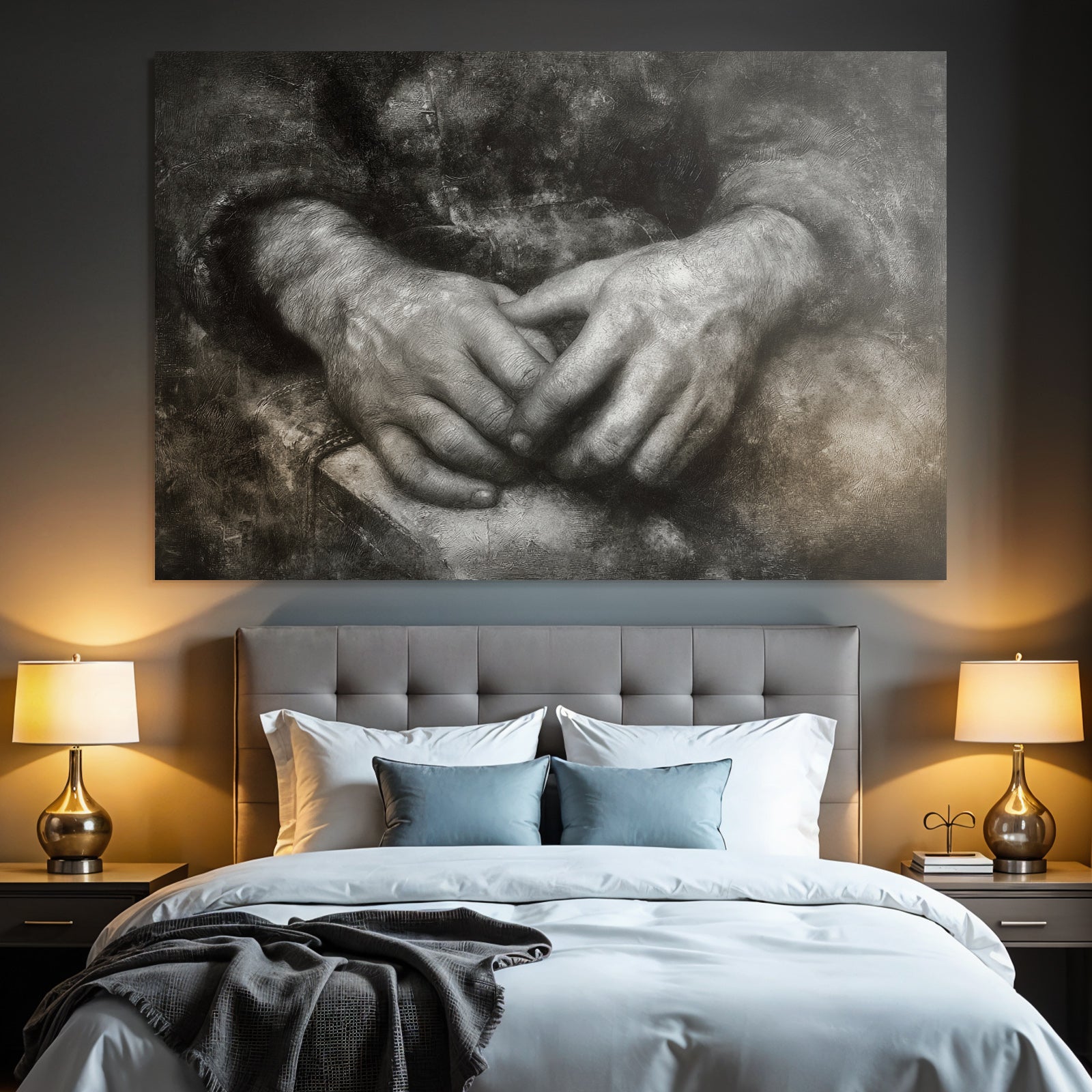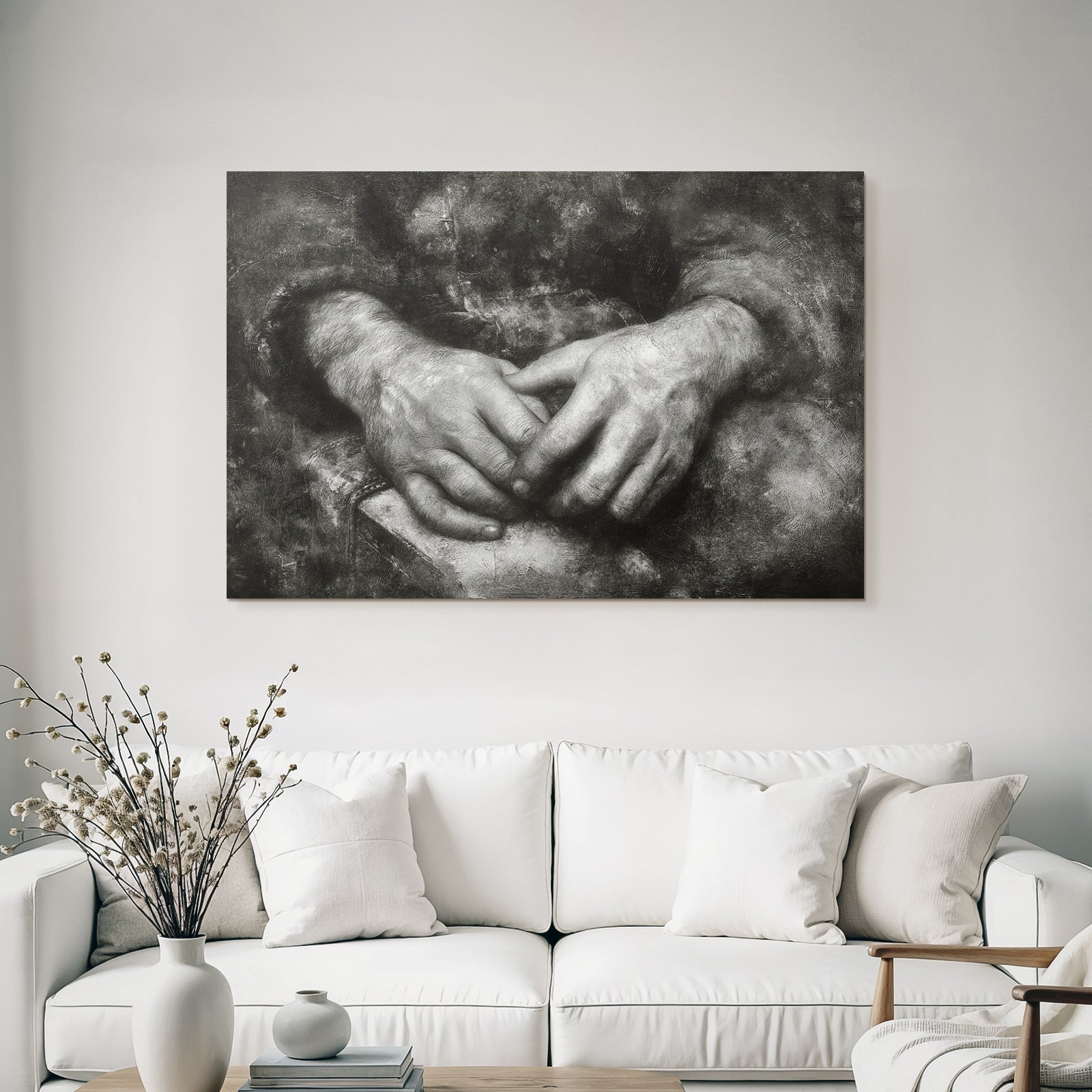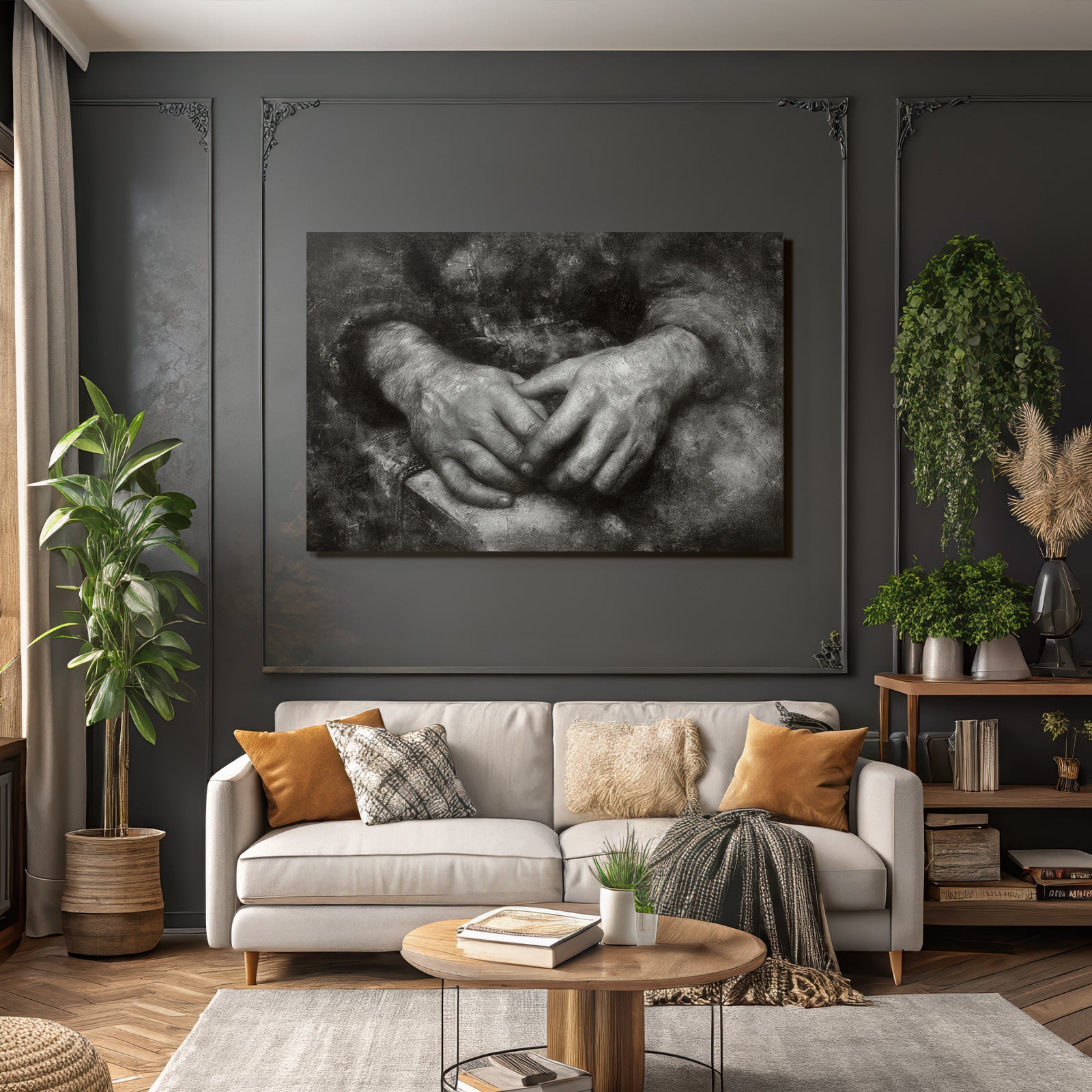 Kunst trifft Design: „Hände In Natürlicher Position Mit Dunklem Hintergrund“ im Stil Hände und Gestik entfaltet im FameFrame™ seine volle Ausdruckskraft.