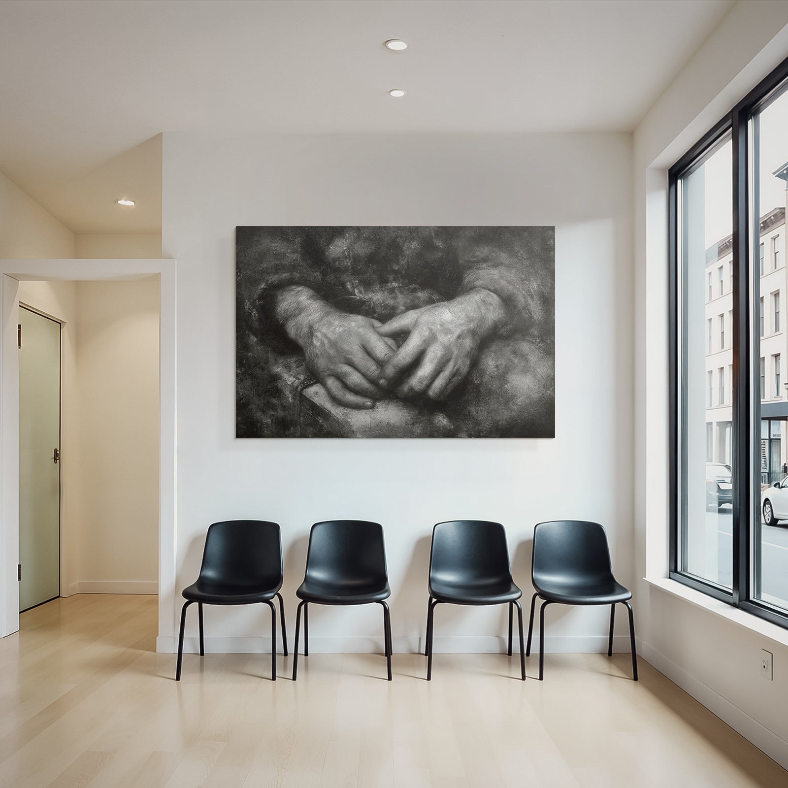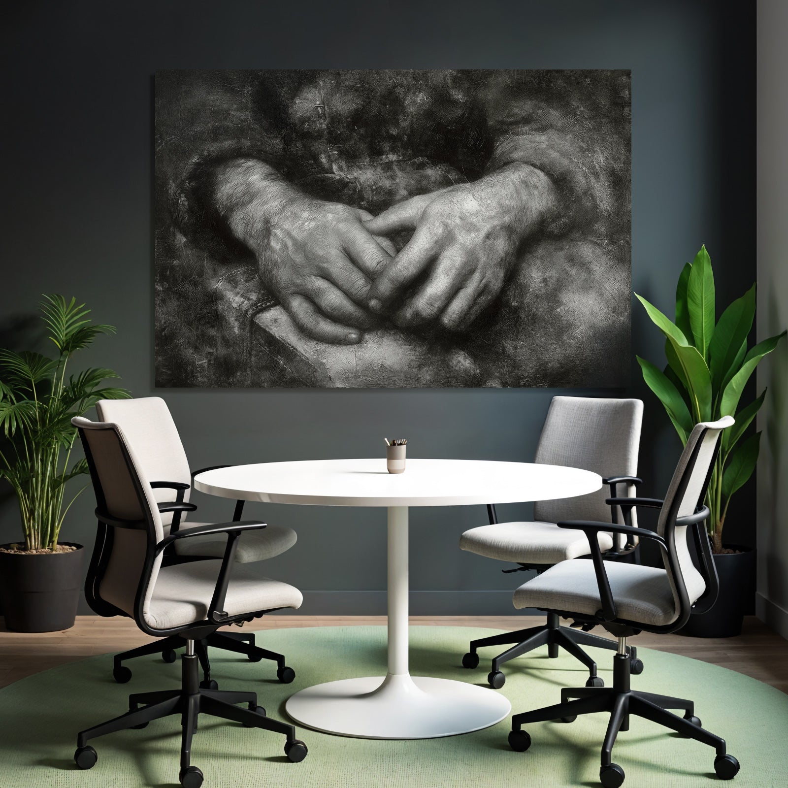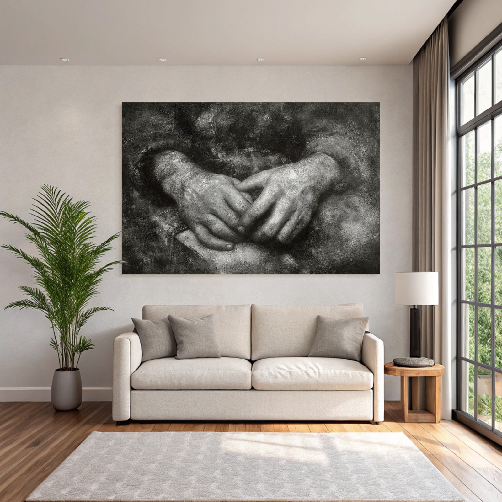 Kunst trifft Design: „Hände In Natürlicher Position Mit Dunklem Hintergrund“ im Stil Hände und Gestik entfaltet im FameFrame™ seine volle Ausdruckskraft.