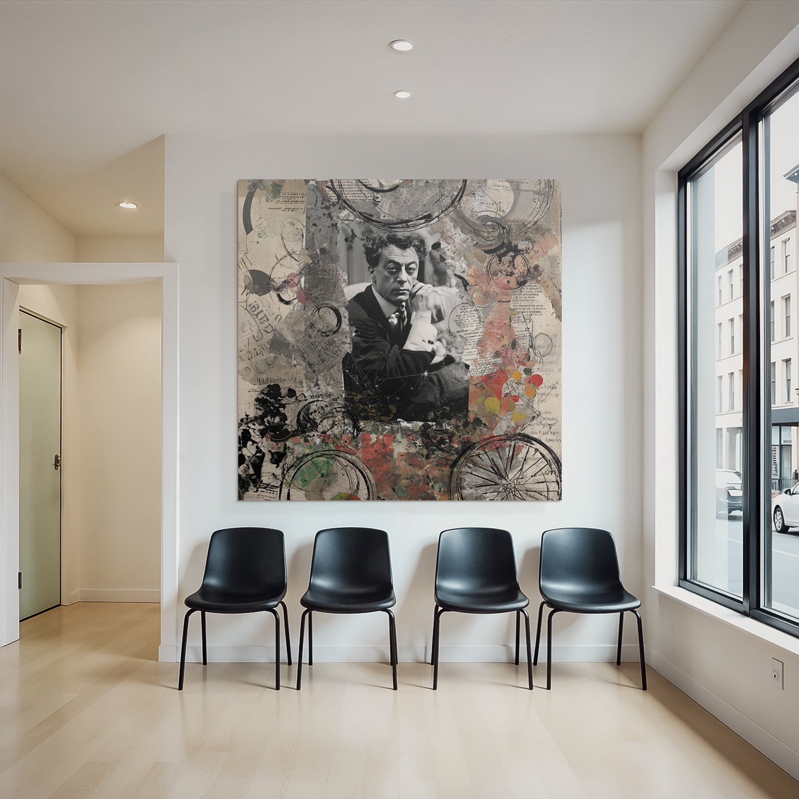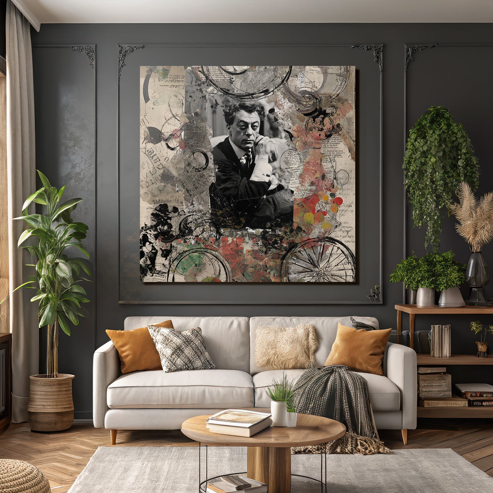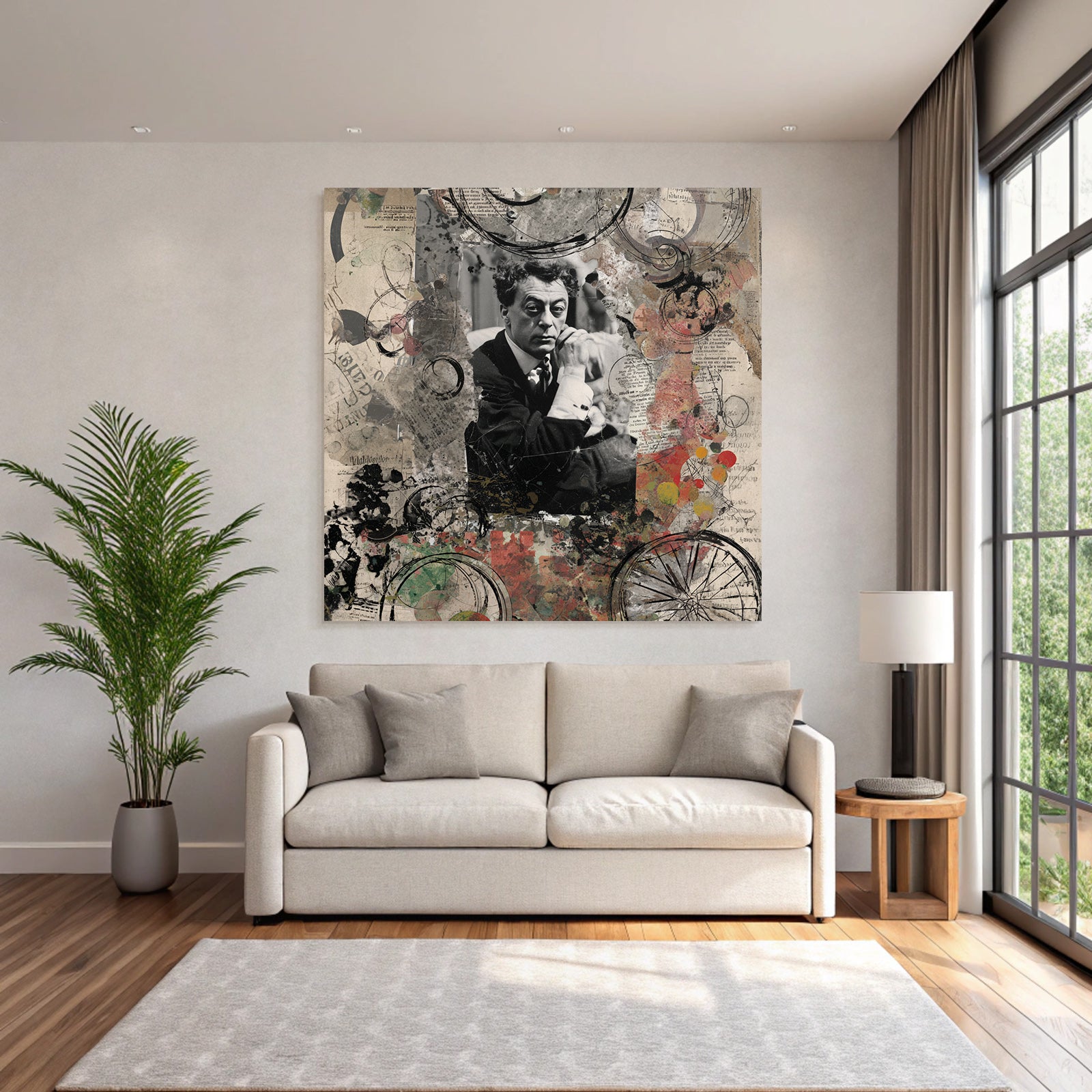 Erleben Sie die pure Essenz von Dadaismus. Das Werk „Historische Fotocollage Mit Abstrakten Grafischen Elementen“ wird durch den hochwertigen Textildruck im FameFrame™ zu einem Statement-Piece.