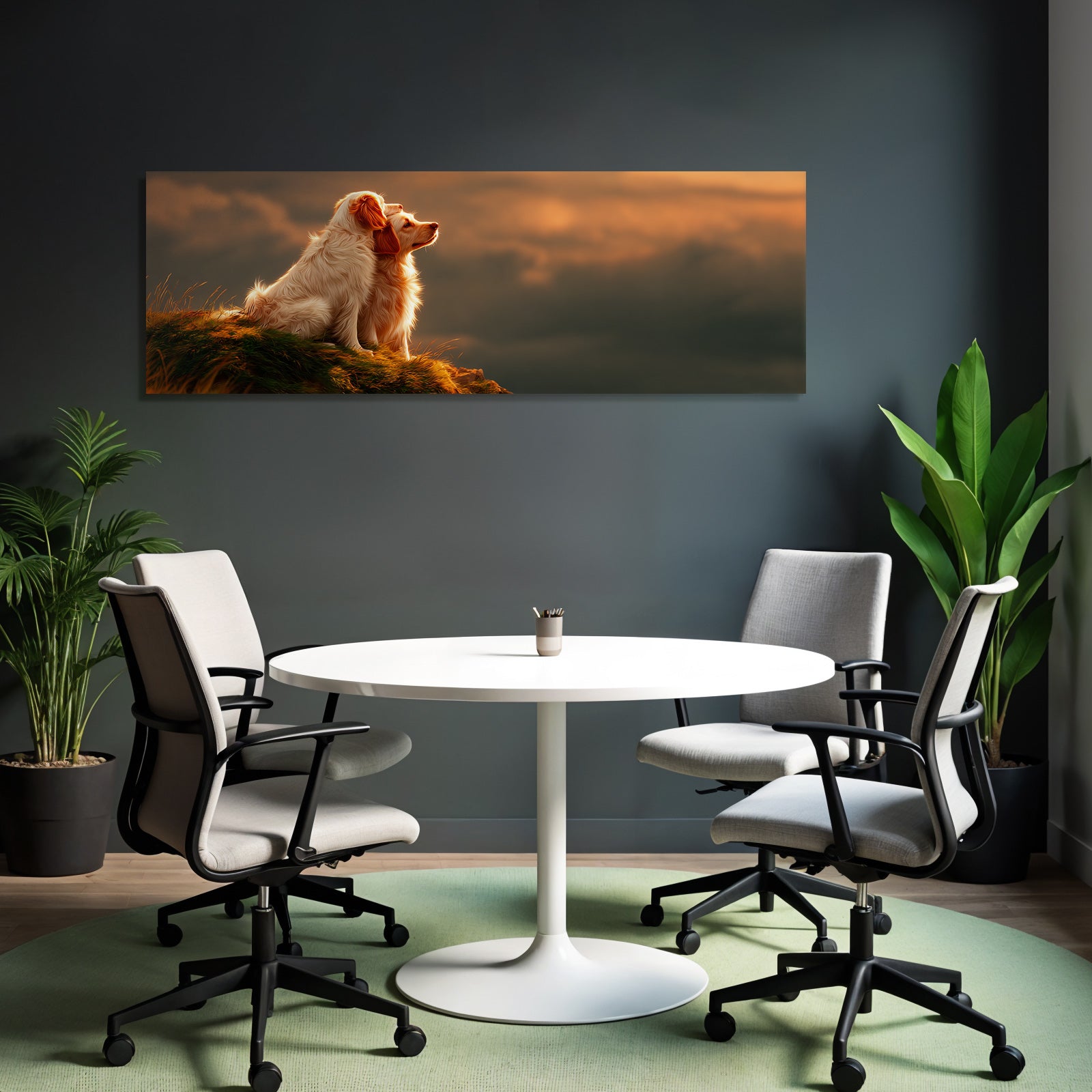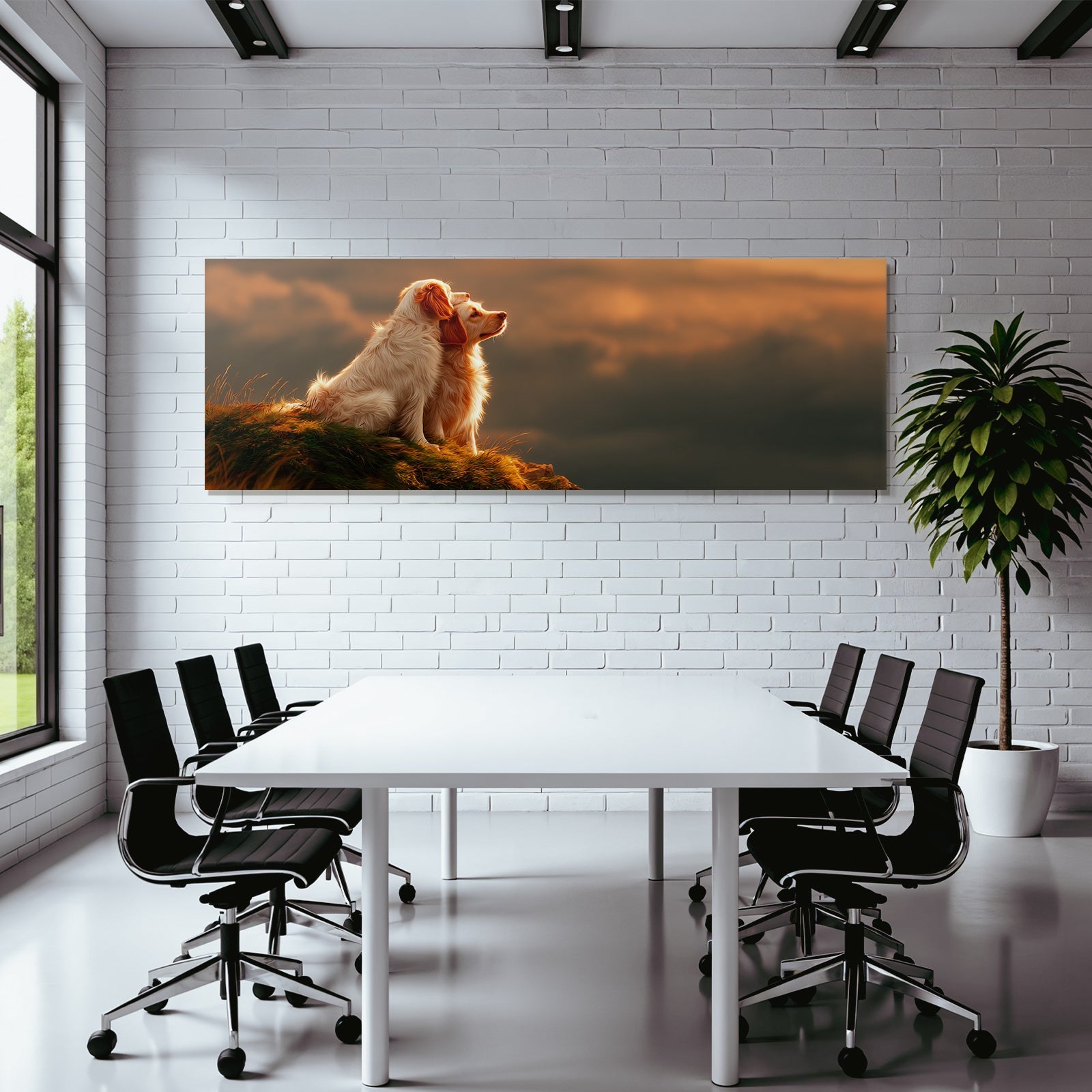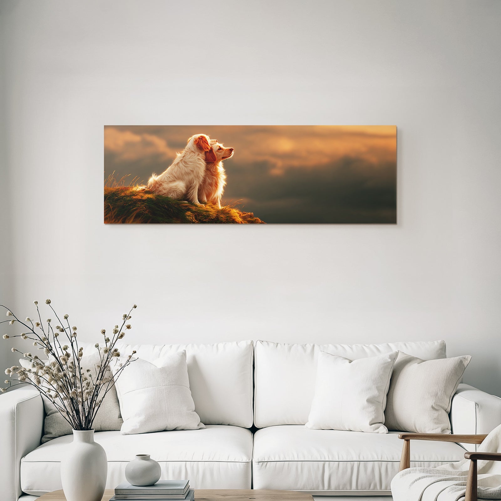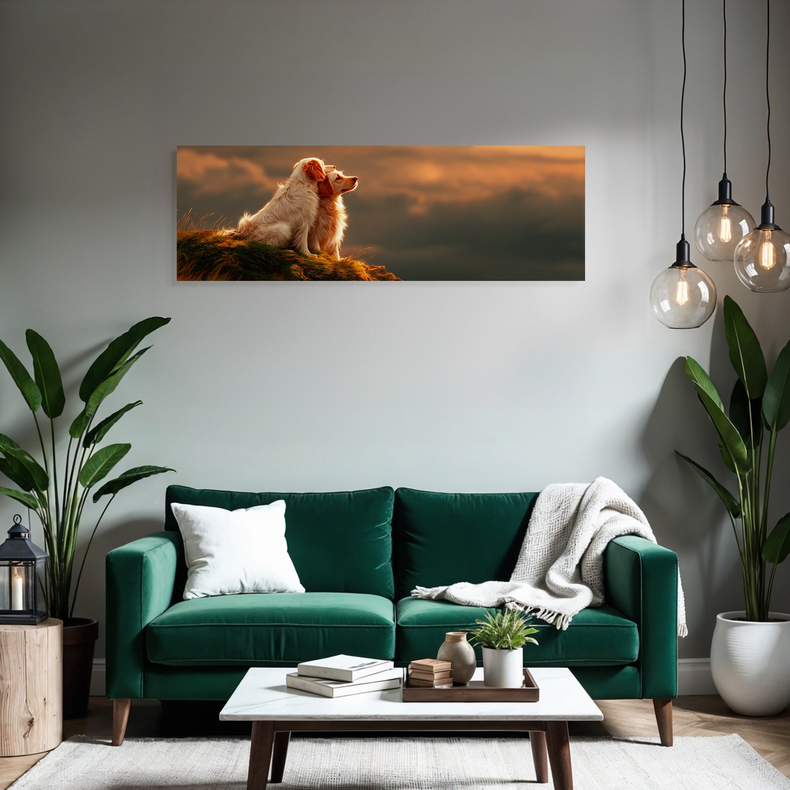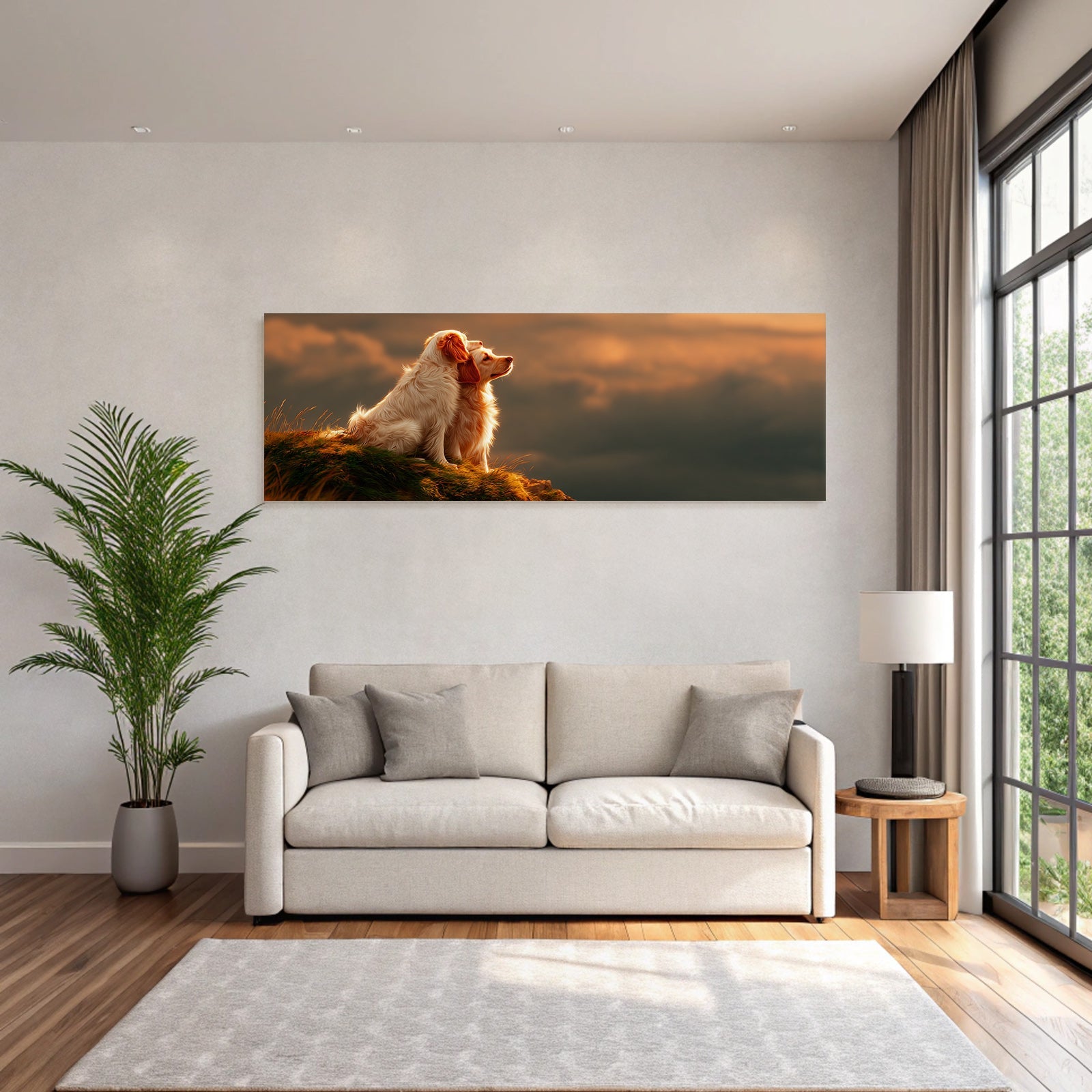 Ein Statement für Individualität: „Im Sonnenuntergang Wiesenlandschaft“ fängt den Geist von Katzen und Hunde ein und wird im FameFrame zu Ihrem ganz persönlichen Kunst-Highlight.