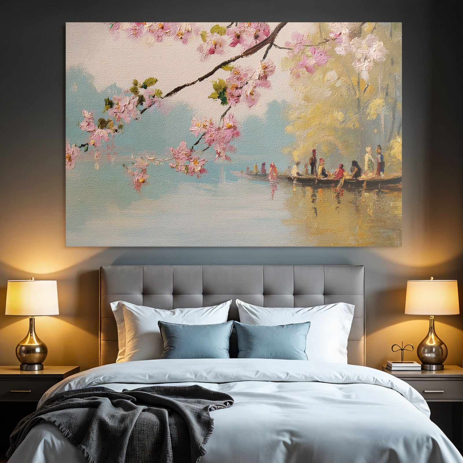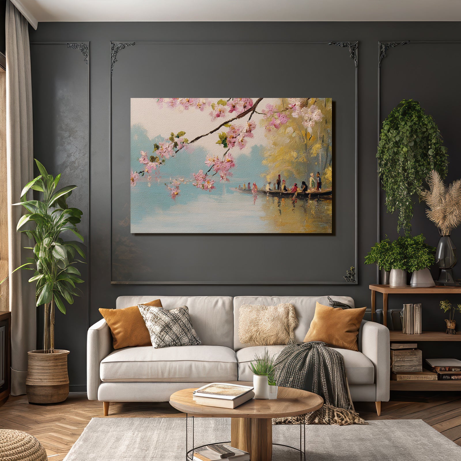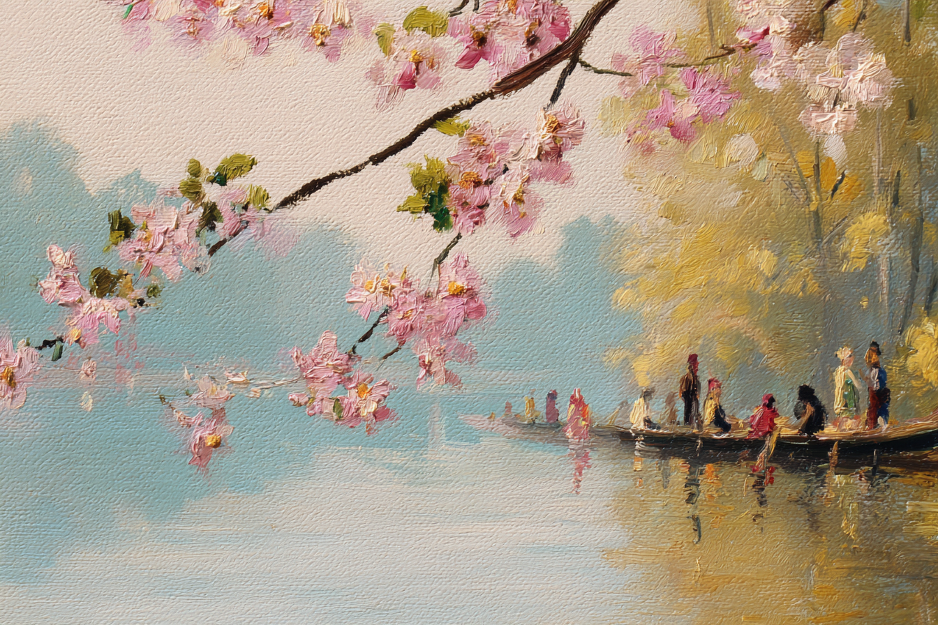 Ein Statement für Individualität: „Kirschblütenlandschaft Am Wasser“ fängt den Geist von Impressionismus ein und wird im FameFrame™ zu Ihrem ganz persönlichen Kunst-Highlight.