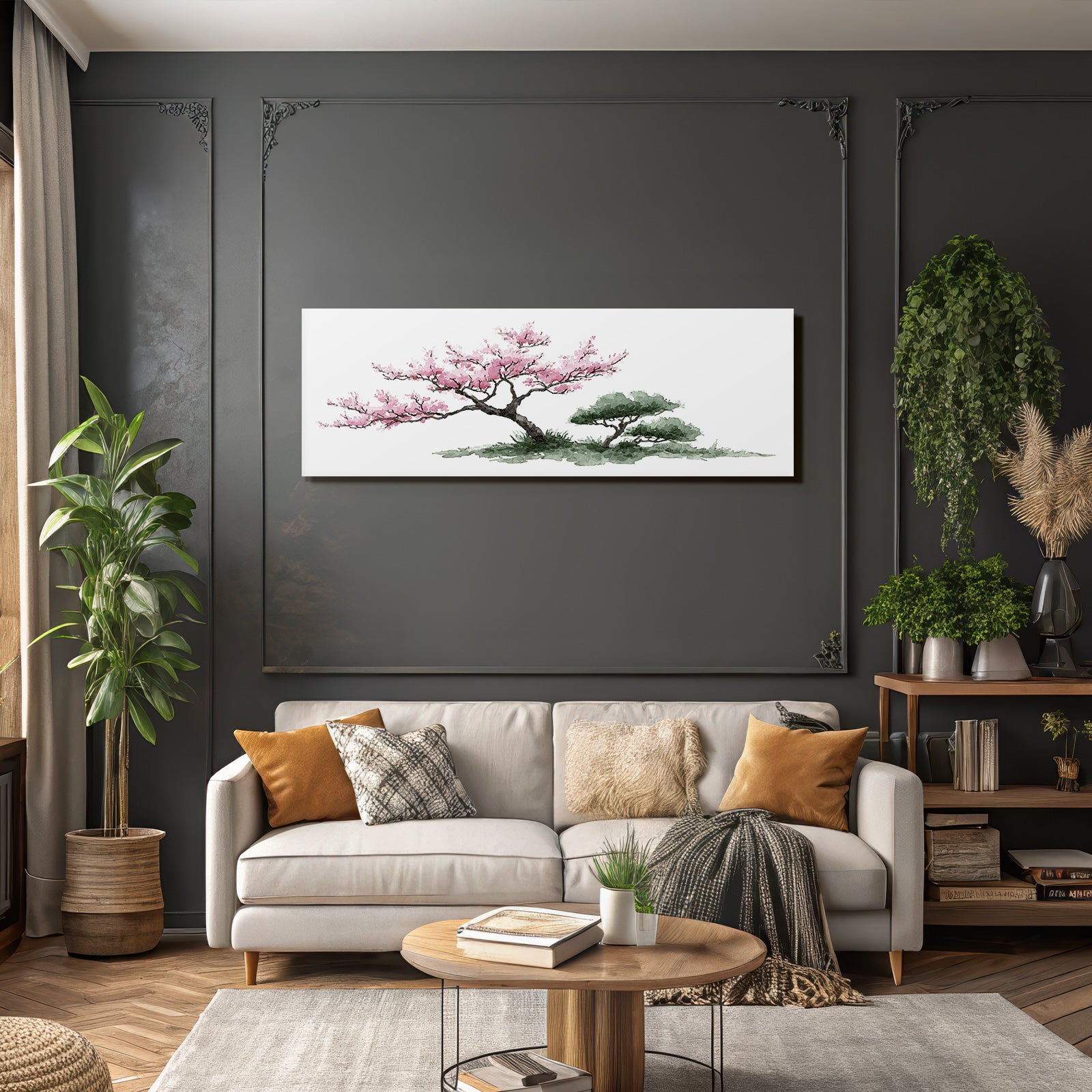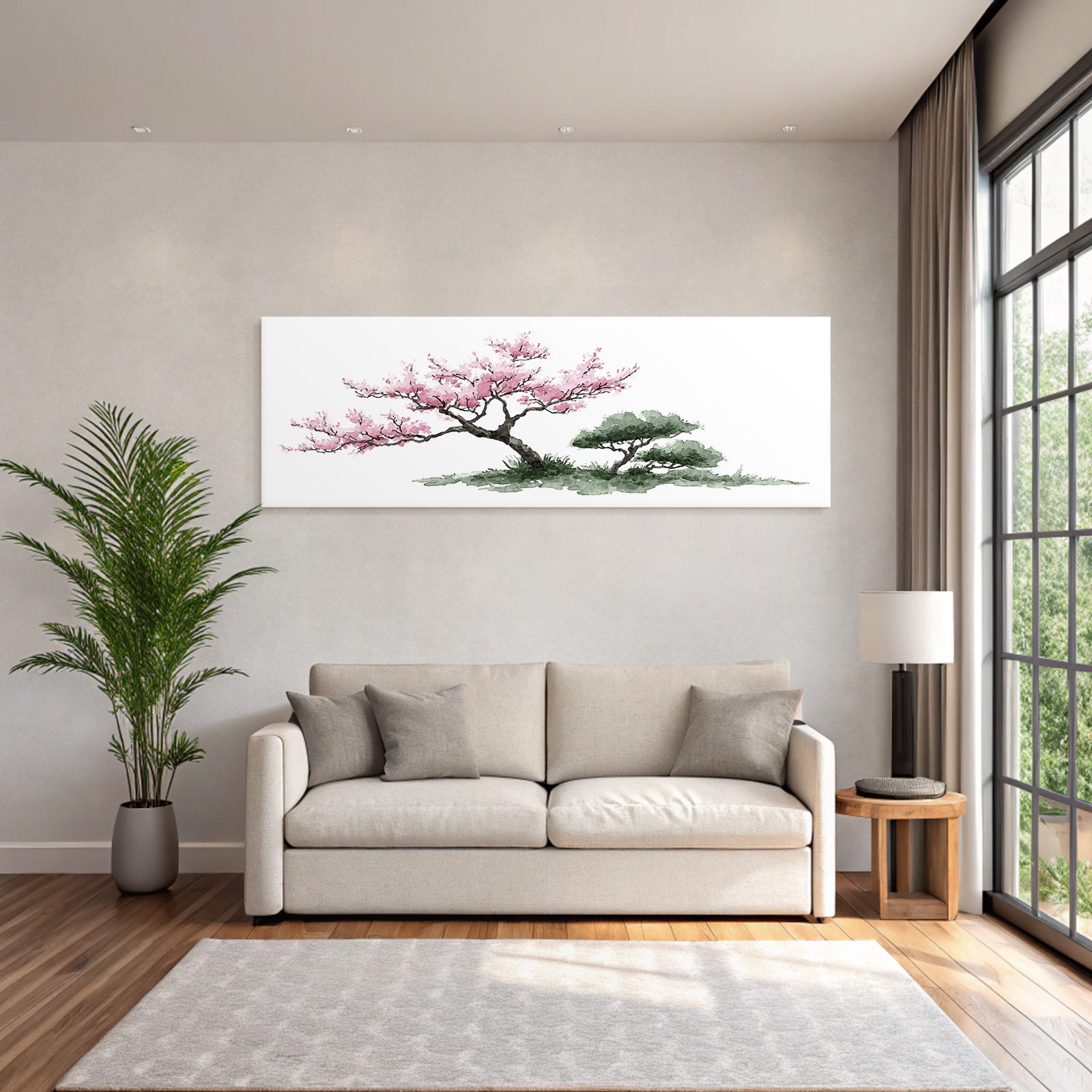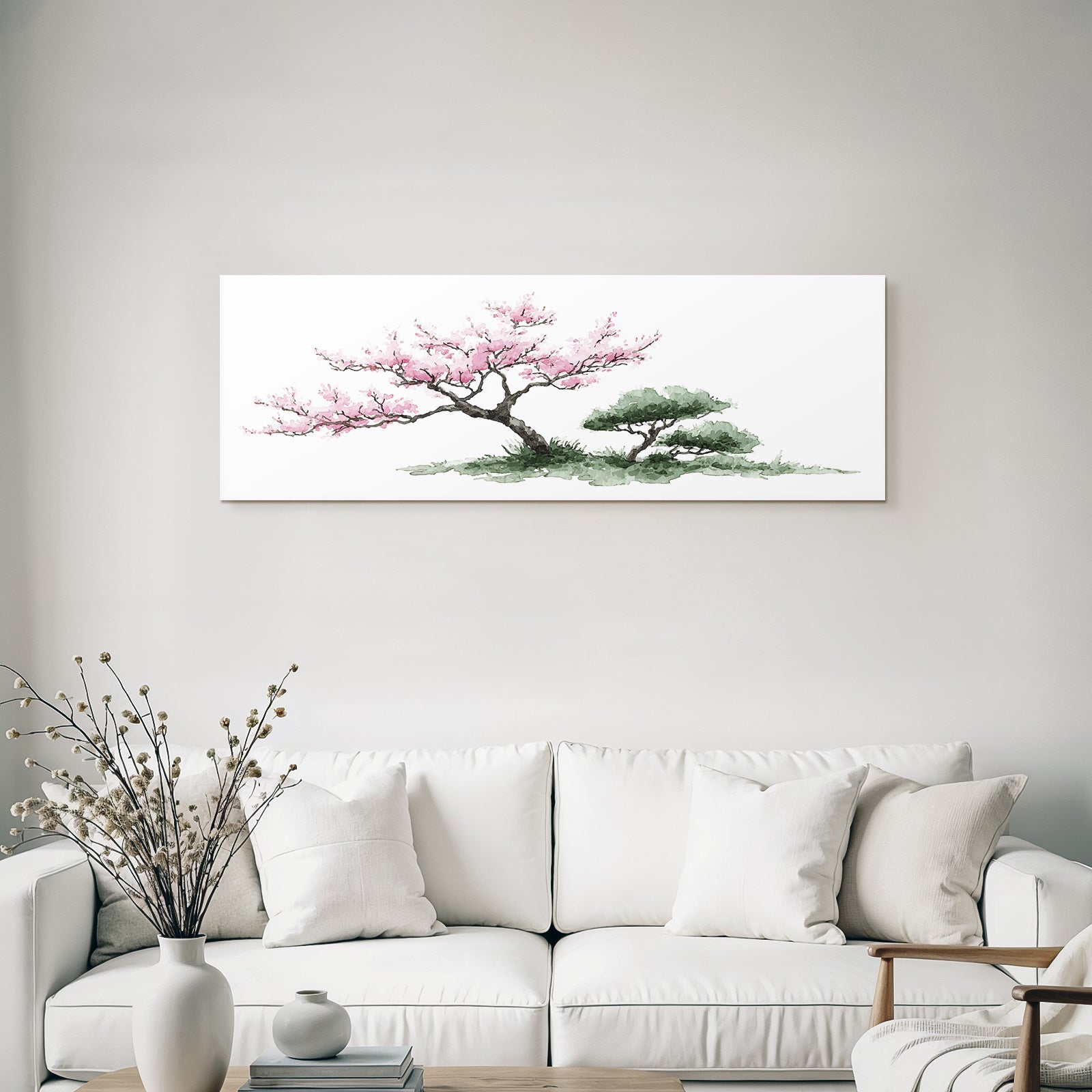 Das Kunstwerk „Kirschbluten Und Kiefer In Aquarell“ ist eine Hommage an den Stil Japanische Zierkirsche. Im FameFrame kommt die Farbbrillanz und Detailtiefe des Motivs perfekt zur Geltung.