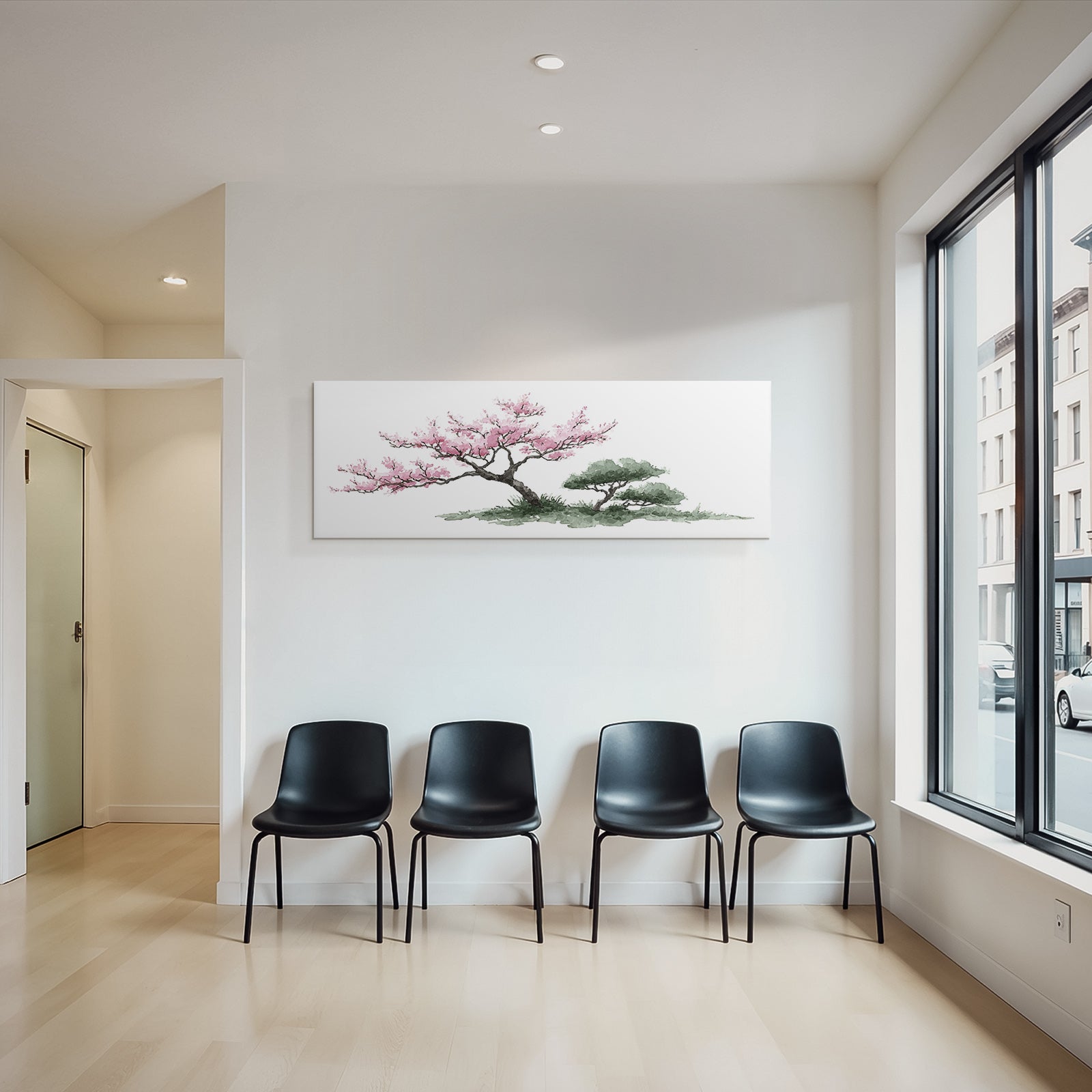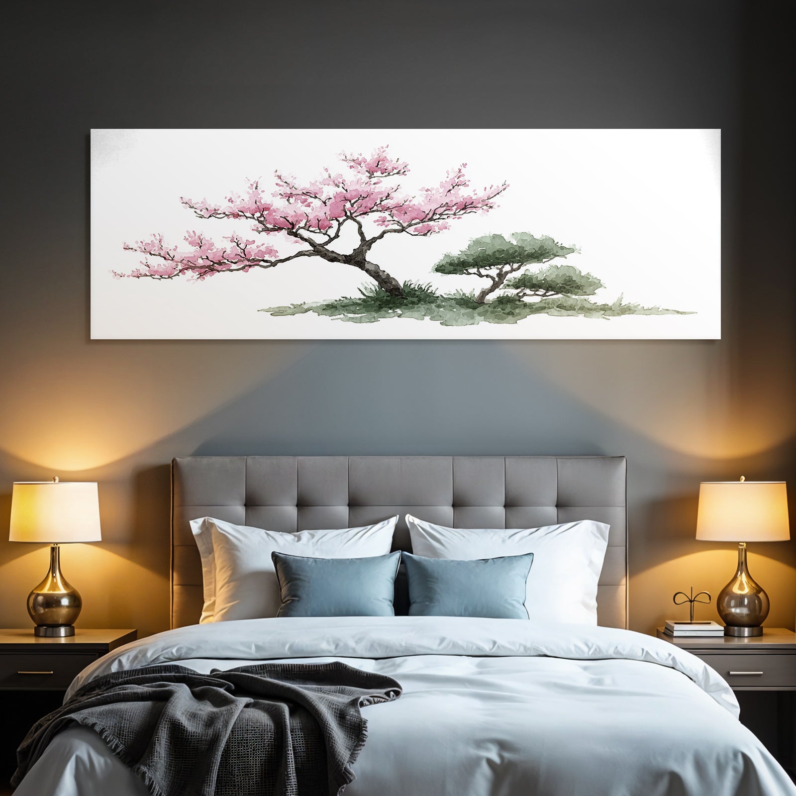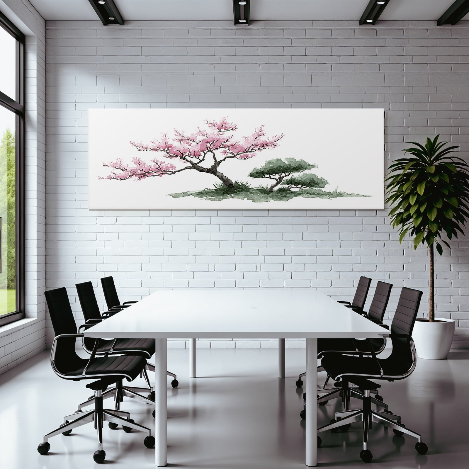 Das Kunstwerk „Kirschbluten Und Kiefer In Aquarell“ ist eine Hommage an den Stil Japanische Zierkirsche. Im FameFrame kommt die Farbbrillanz und Detailtiefe des Motivs perfekt zur Geltung.