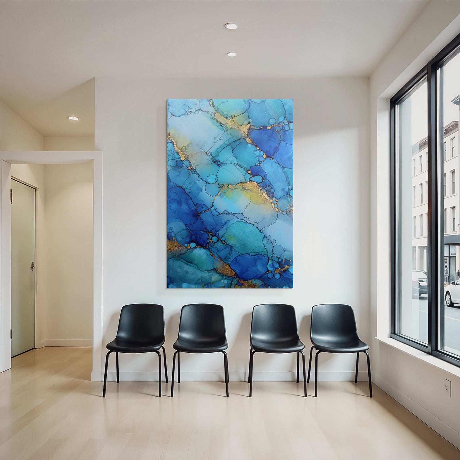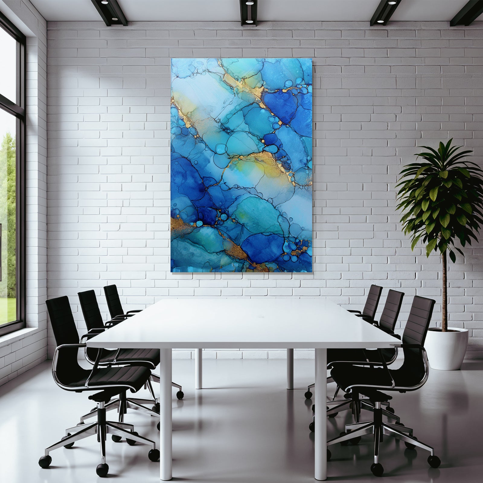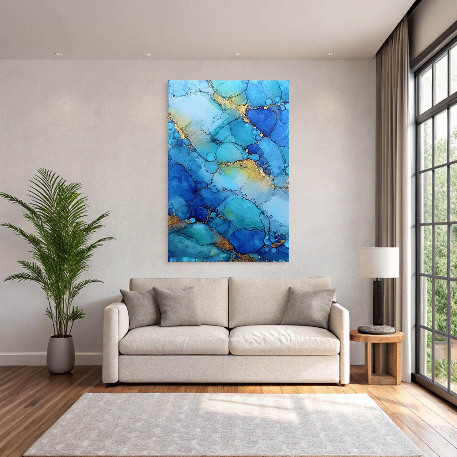 Kunstwerk In Blautürkis Mit Goldakzenten