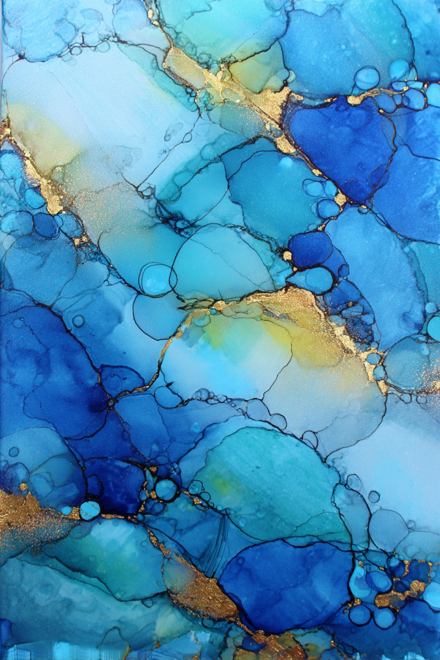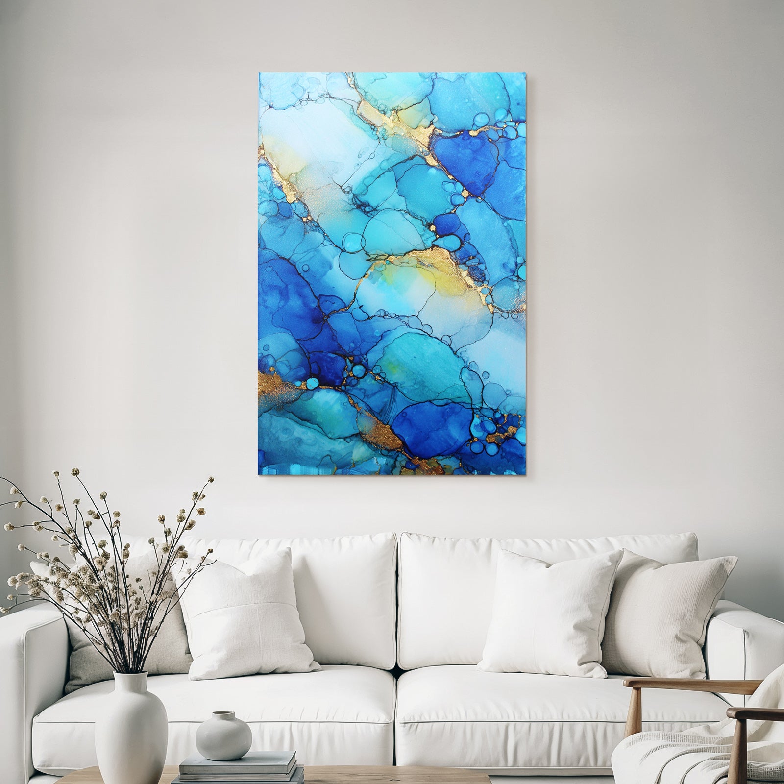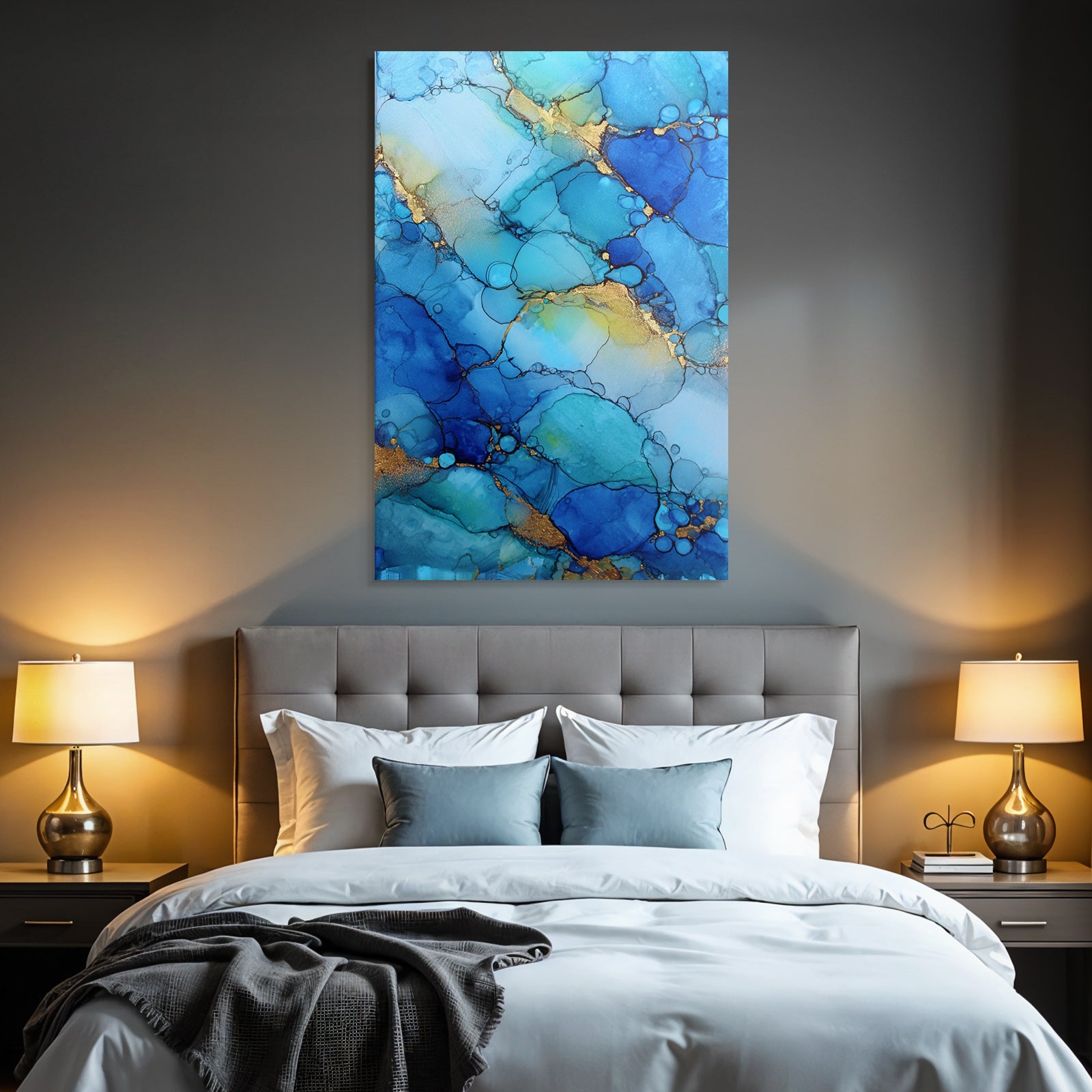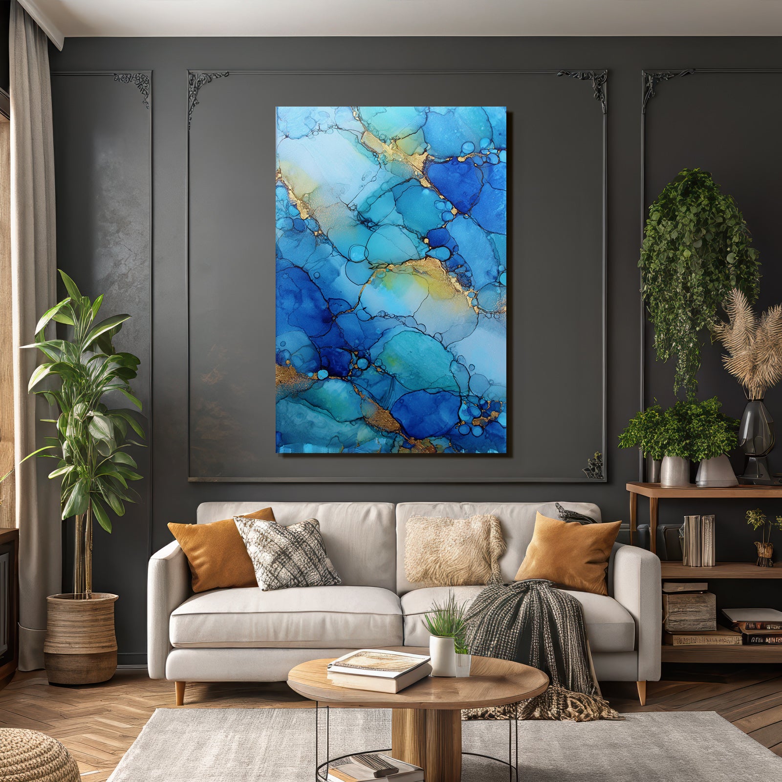 Kunstwerk In Blautürkis Mit Goldakzenten
