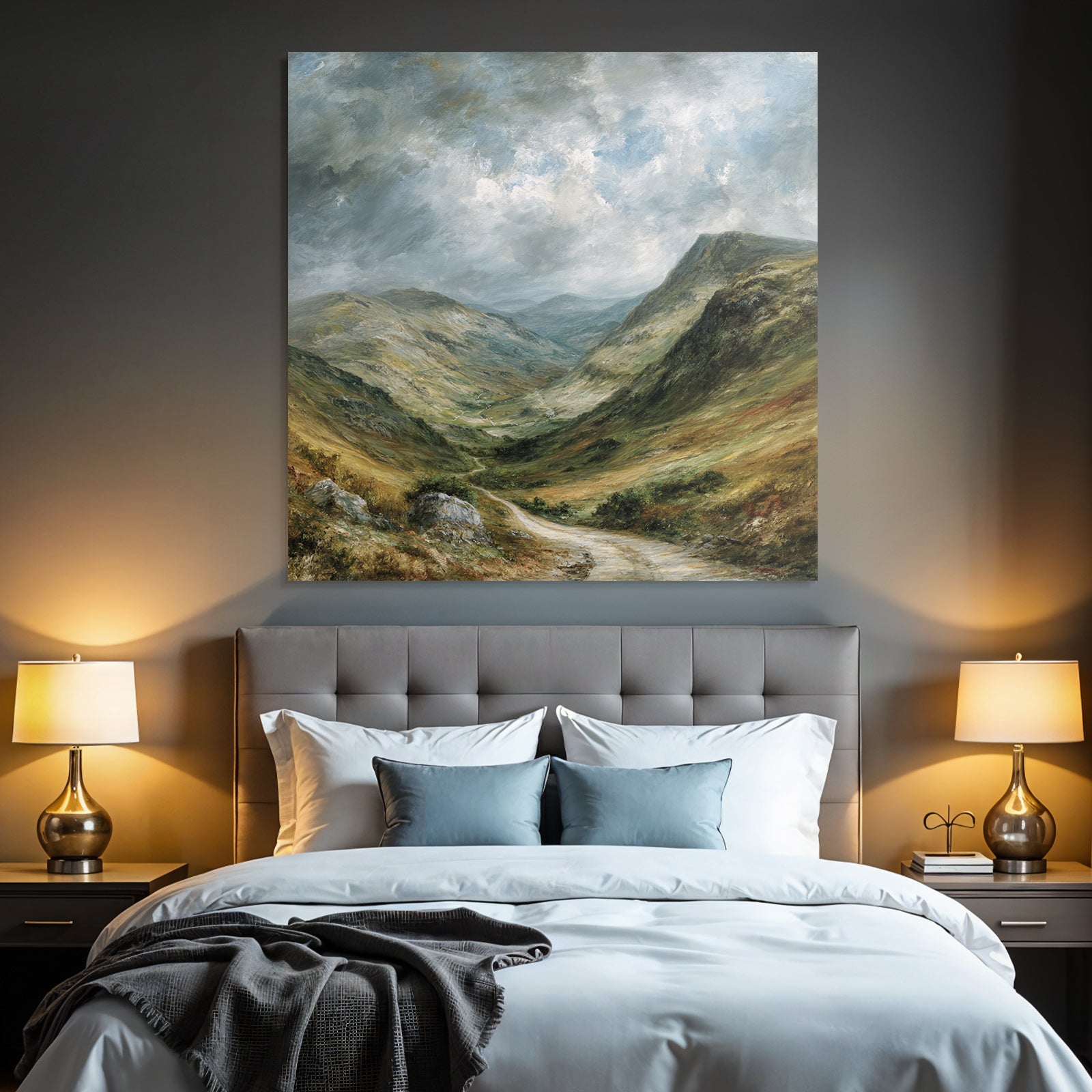 Entdecken Sie die Facetten von „Landschaftstal Mit Bergen Und Wolken“. Dieses Motiv im Look von Himmel und Wolken ist eine Zierde für jeden Raum und wird im FameFrame elegant inszeniert.