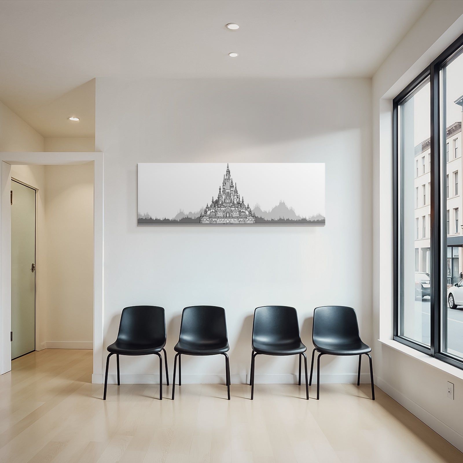 Ein Statement für Individualität: „Märchenburg Monochromatisch Magie Abenteür“ fängt den Geist von Minimalistisch ein und wird im FameFrame™ zu Ihrem ganz persönlichen Kunst-Highlight.